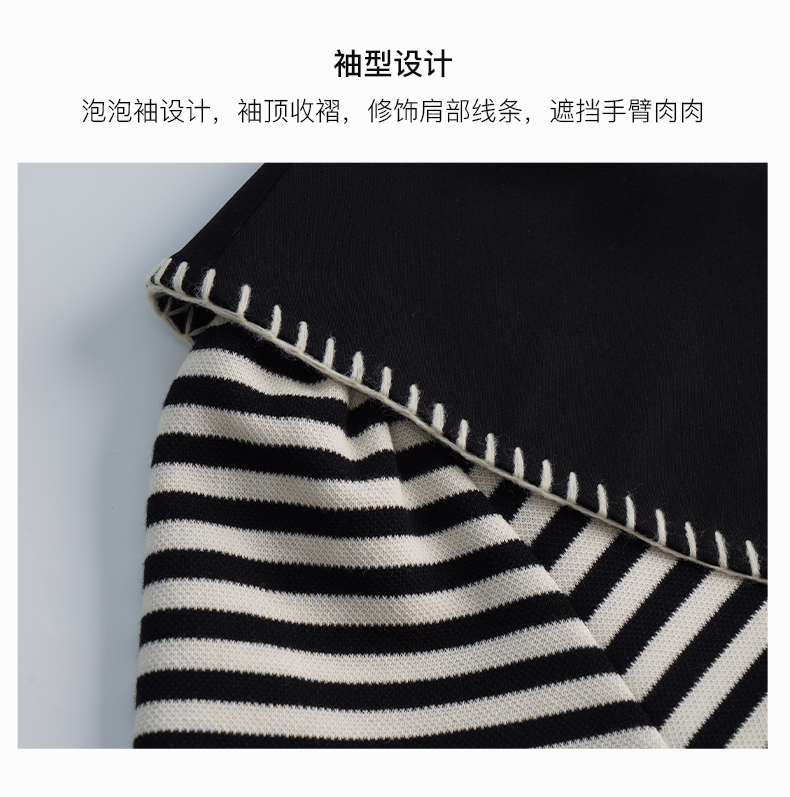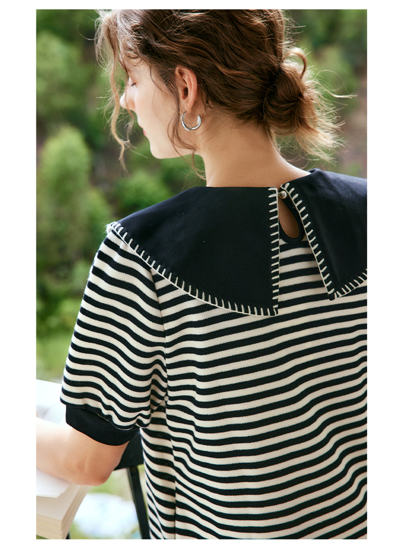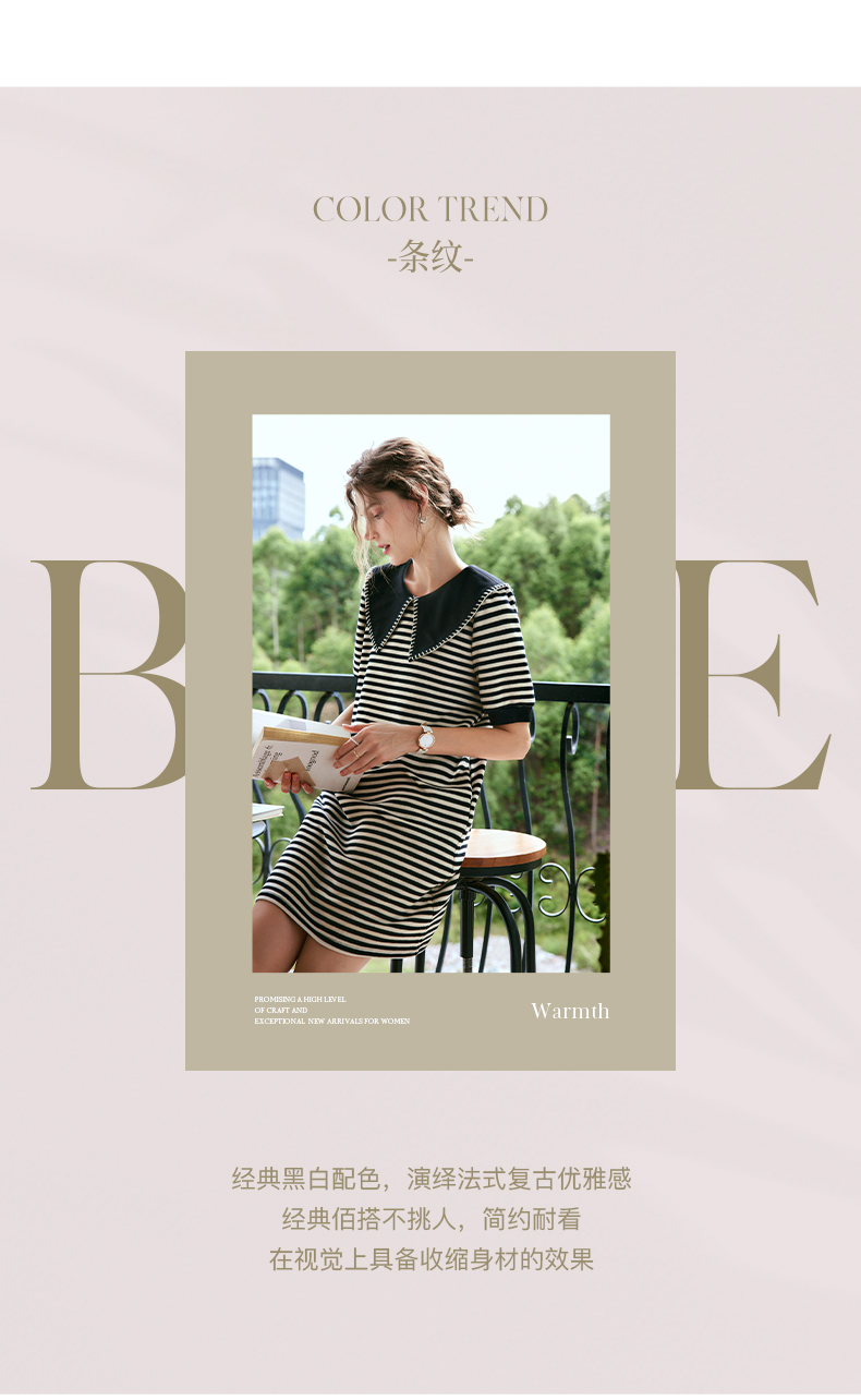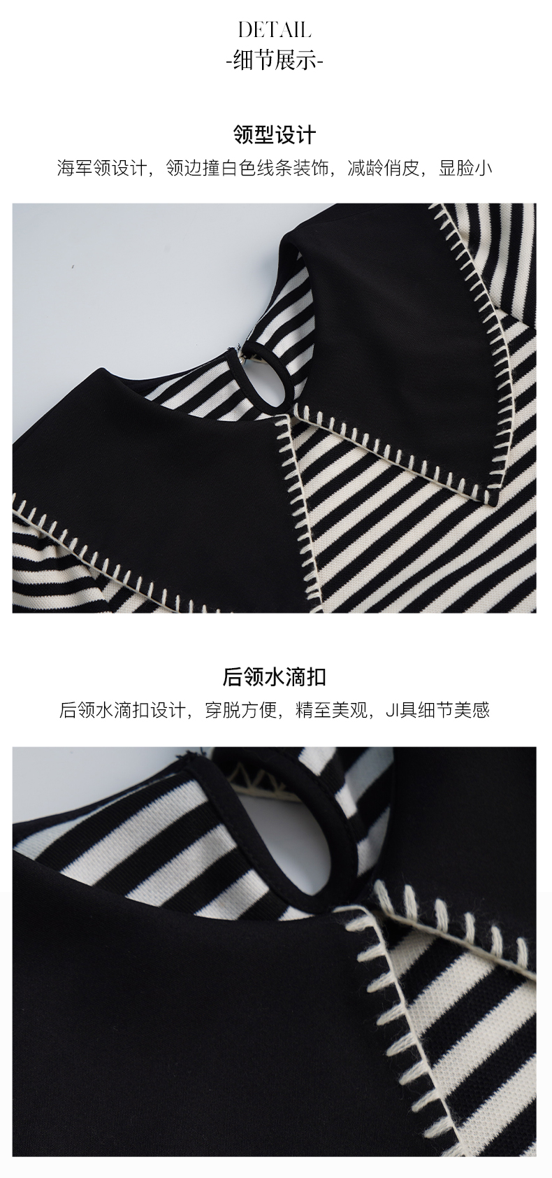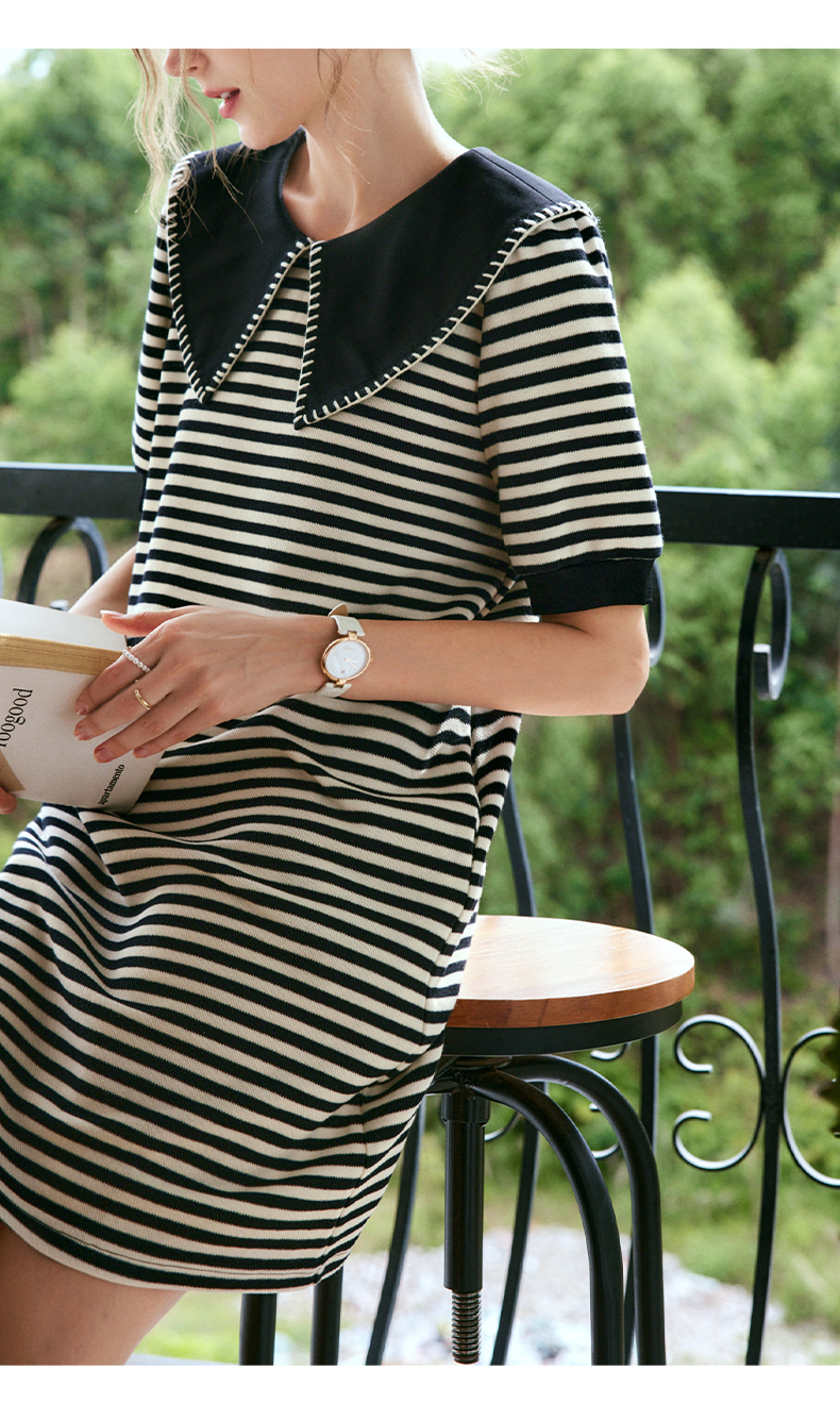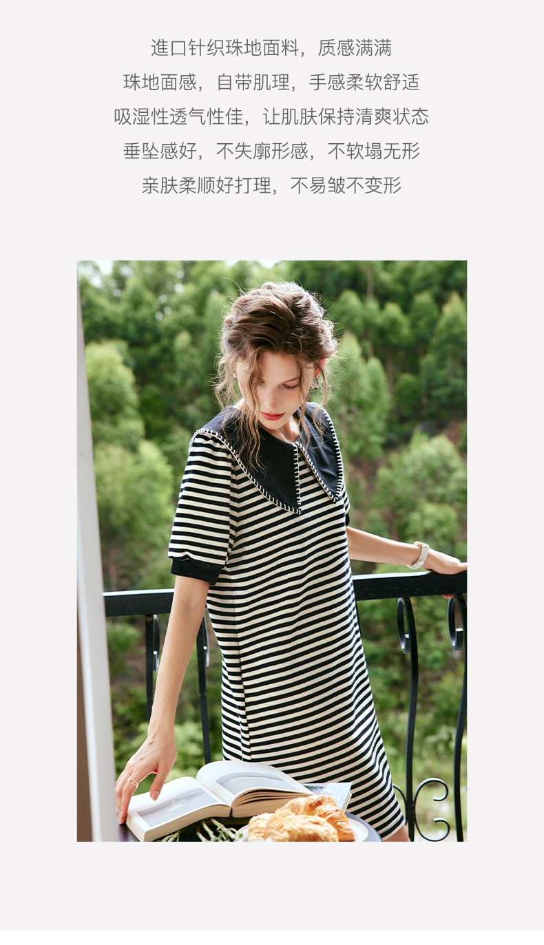 OLrain法式条纹短袖连衣裙女夏季2022新款气质显瘦减龄海军领裙子undefined