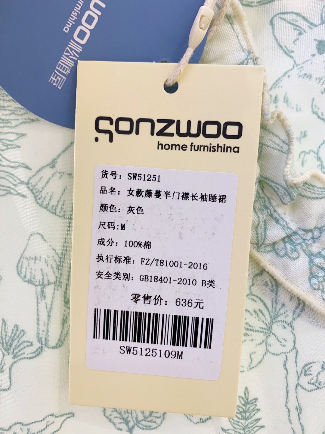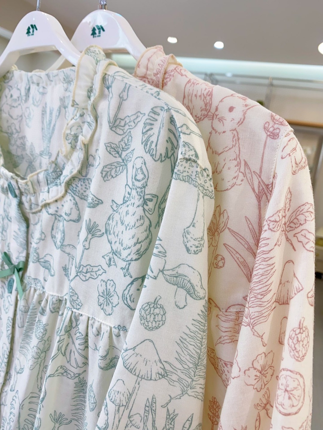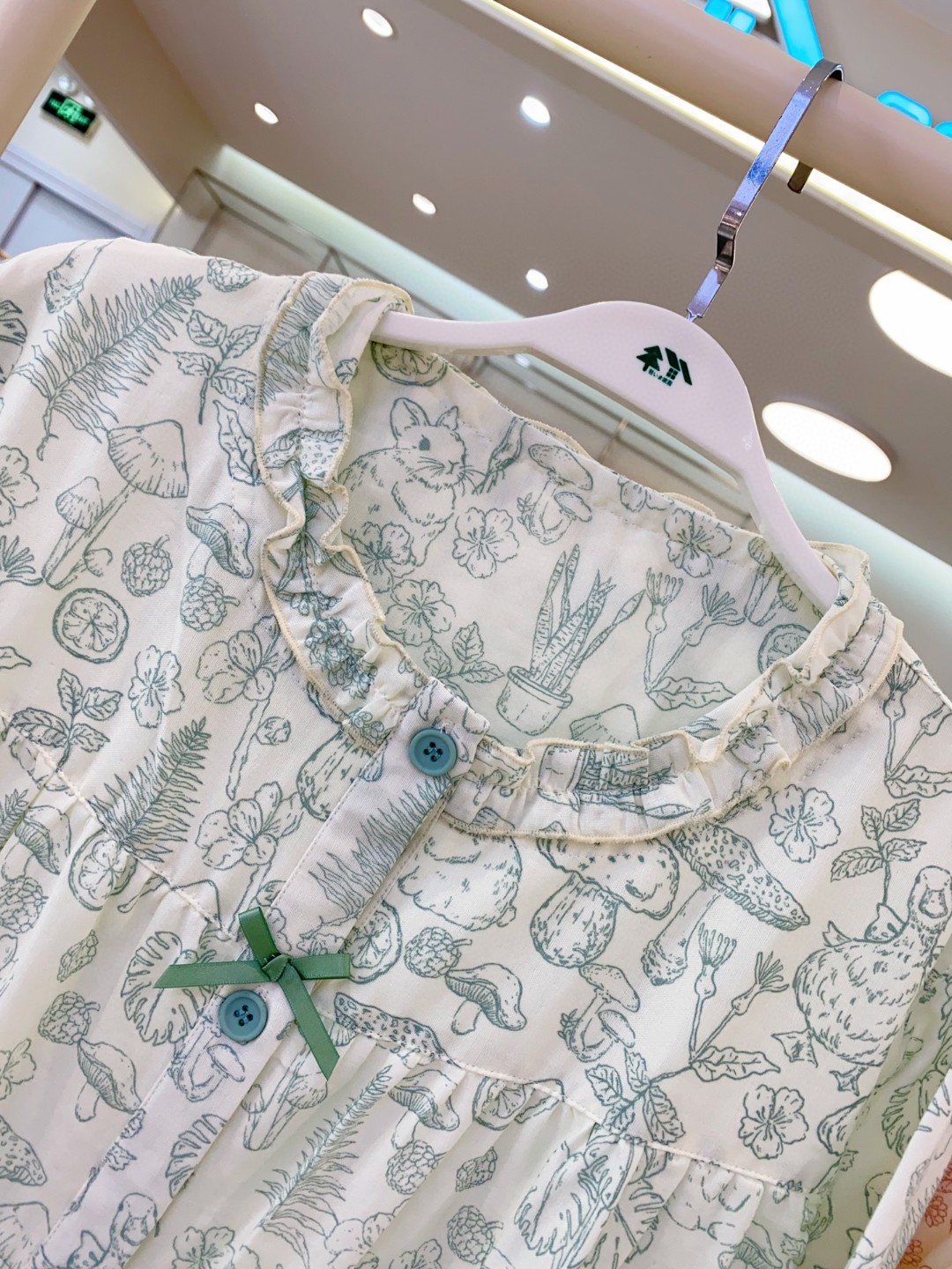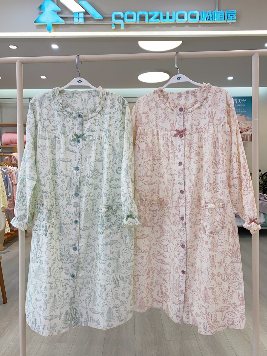 -松植屋女款藤蔓长袖纱布睡裙100%棉,双层柔纱软亲肤,越洗越软,夏季吸汗透气,长度过膝