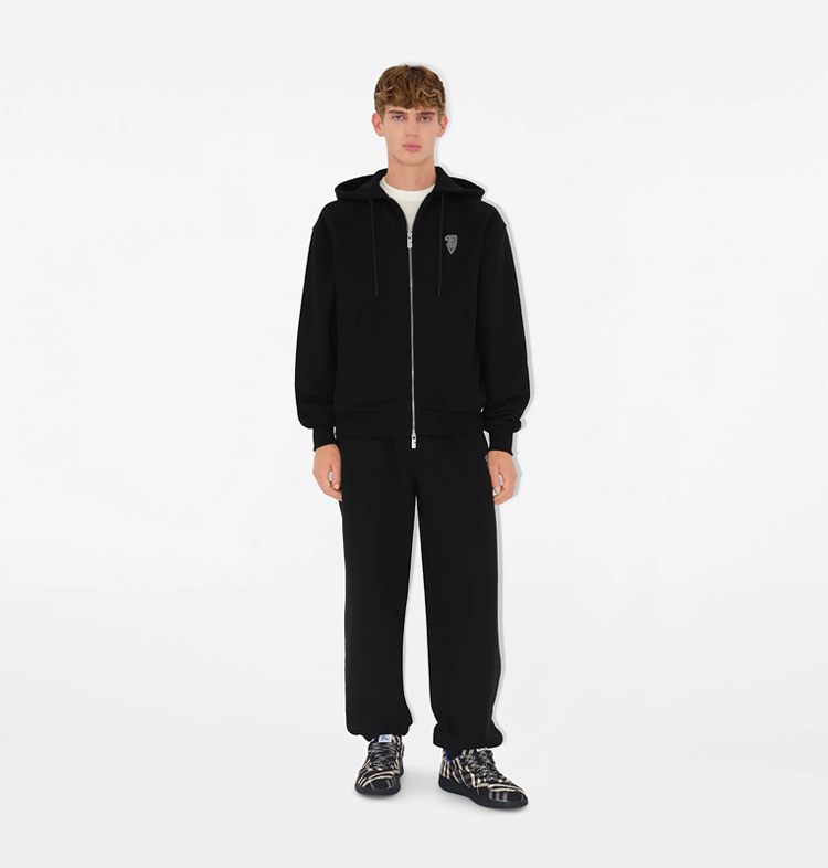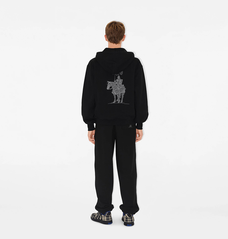 BURBERRY 巴宝莉 男士马术骑士徽标 棉质拉链连帽卫衣 黑色 8104905 A1189