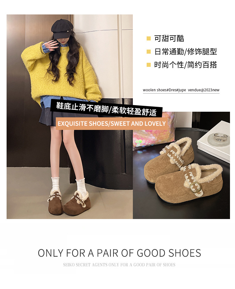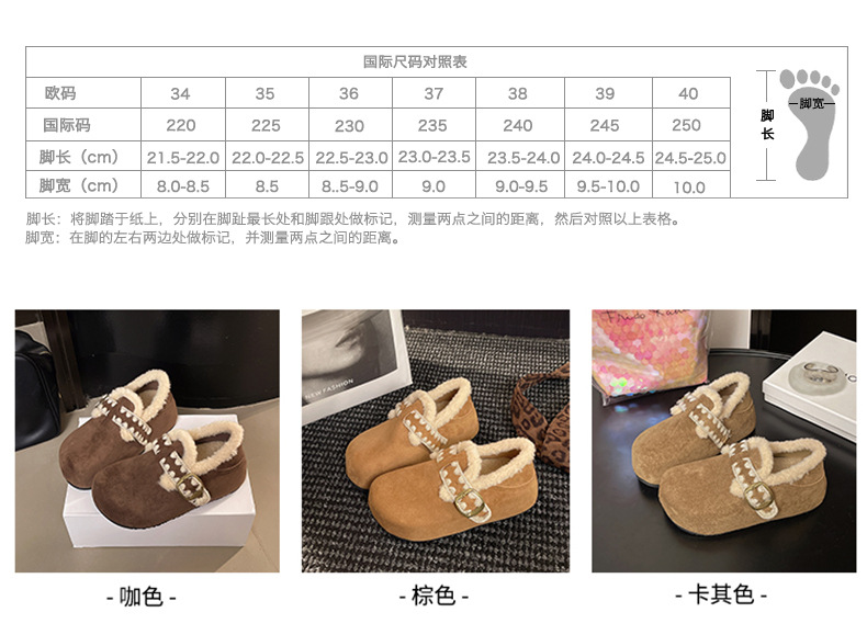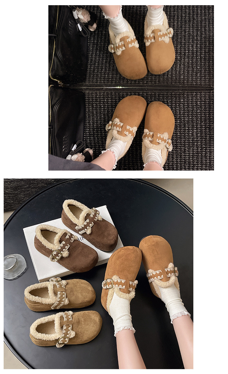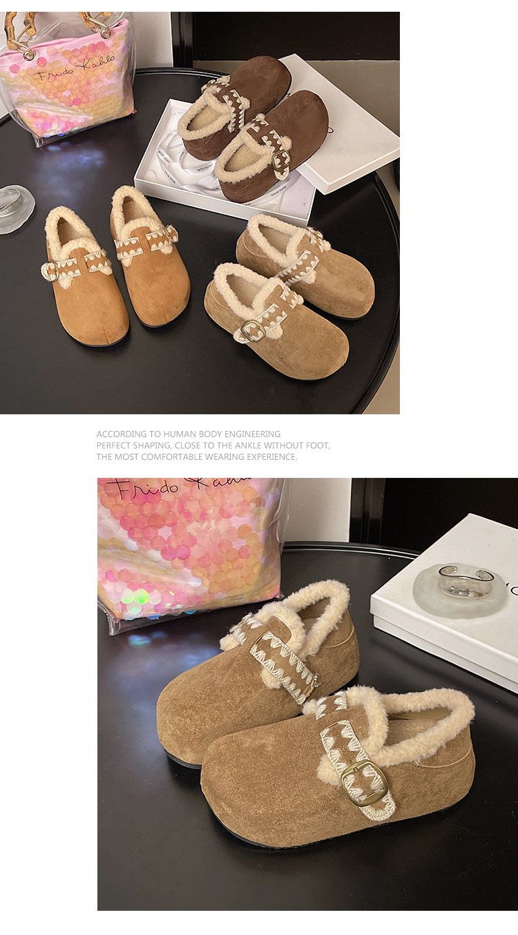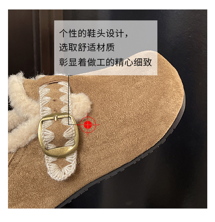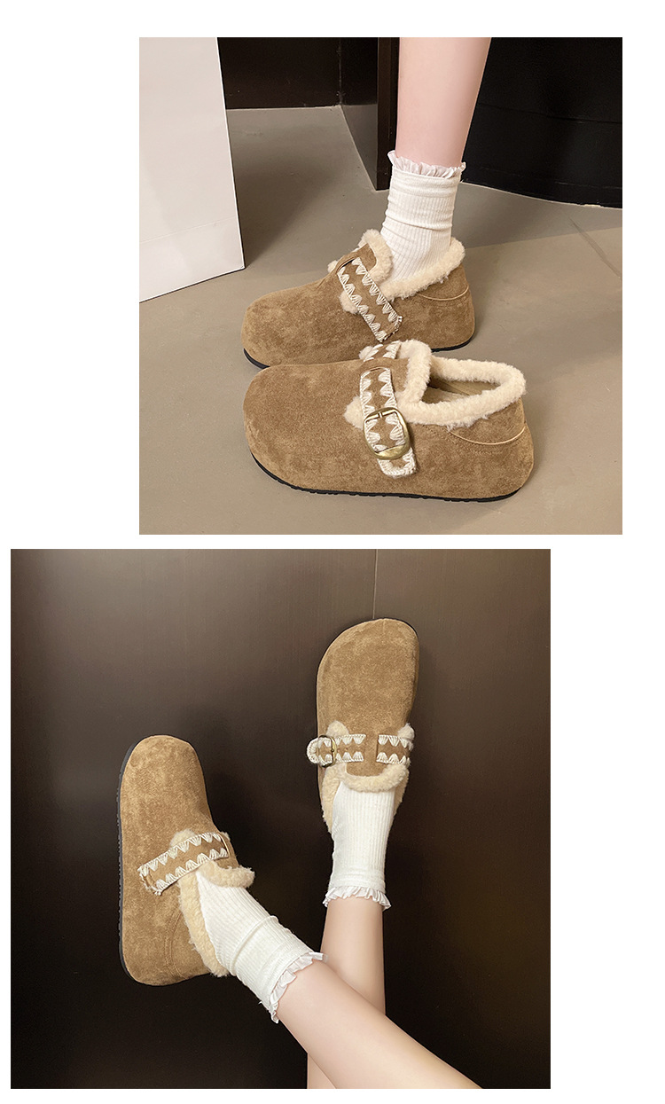 冬季加绒【复古刺绣花边勃肯鞋】一字扣雪地靴加绒保暖棉鞋