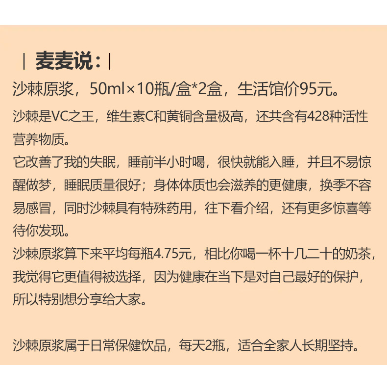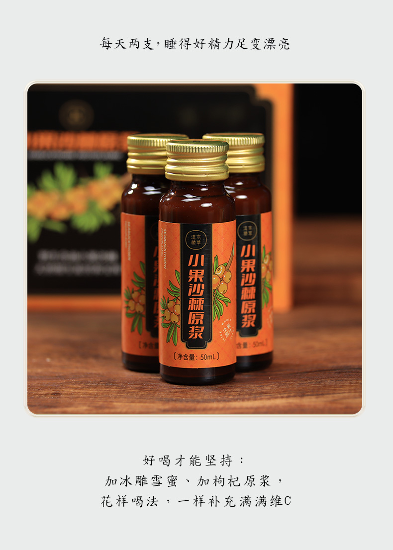 【小果沙棘原浆】富含维生素C等428种活性营养物质,对身体有滋养效果(具体详见麦麦群内介绍)!一份50ml*10支*2盒!【DZ-J仓】!