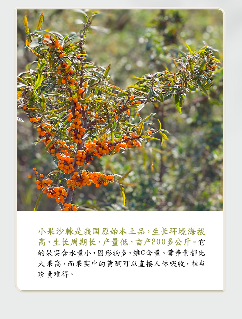 含有四百多种活性营养物质,无论是新鲜度,维生素C和黄酮等营养价值,都高于大果沙棘。