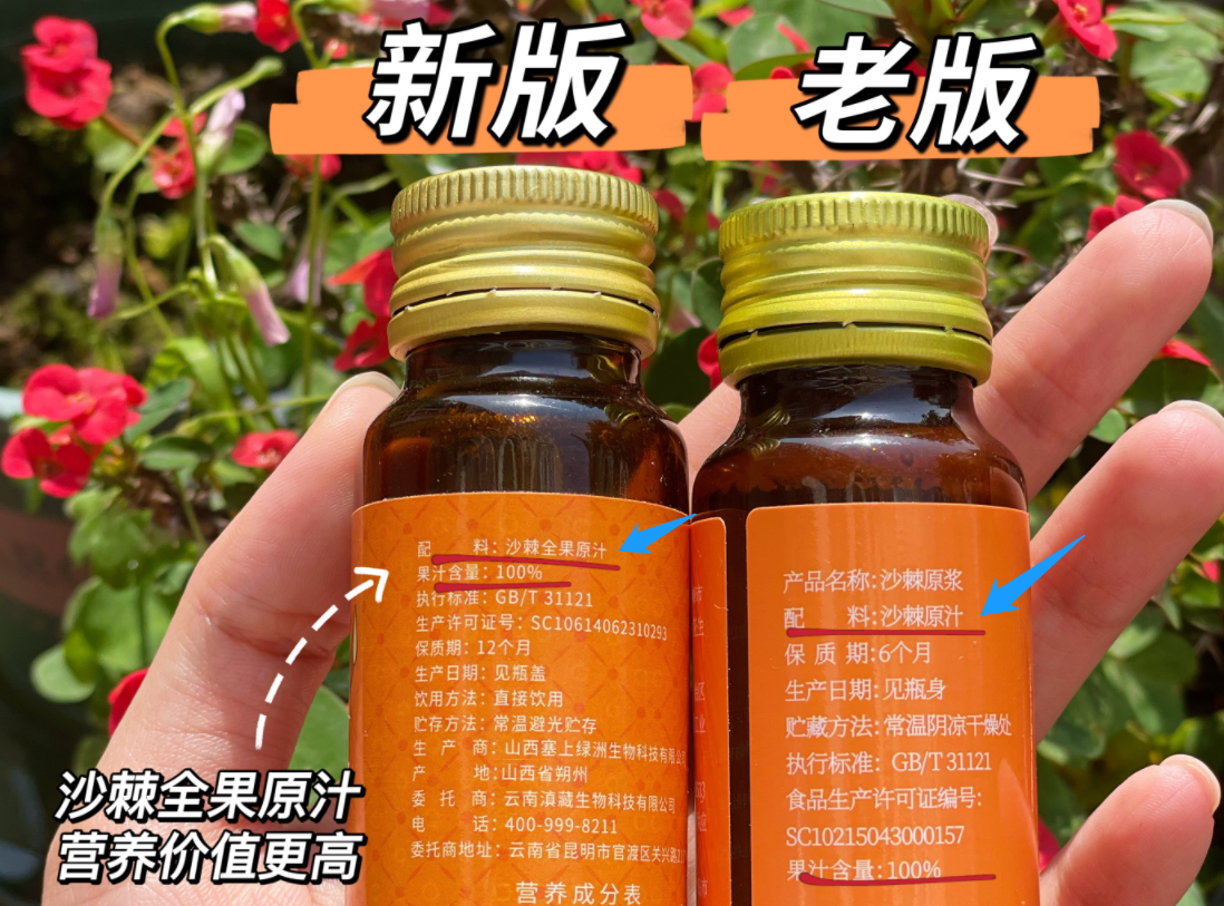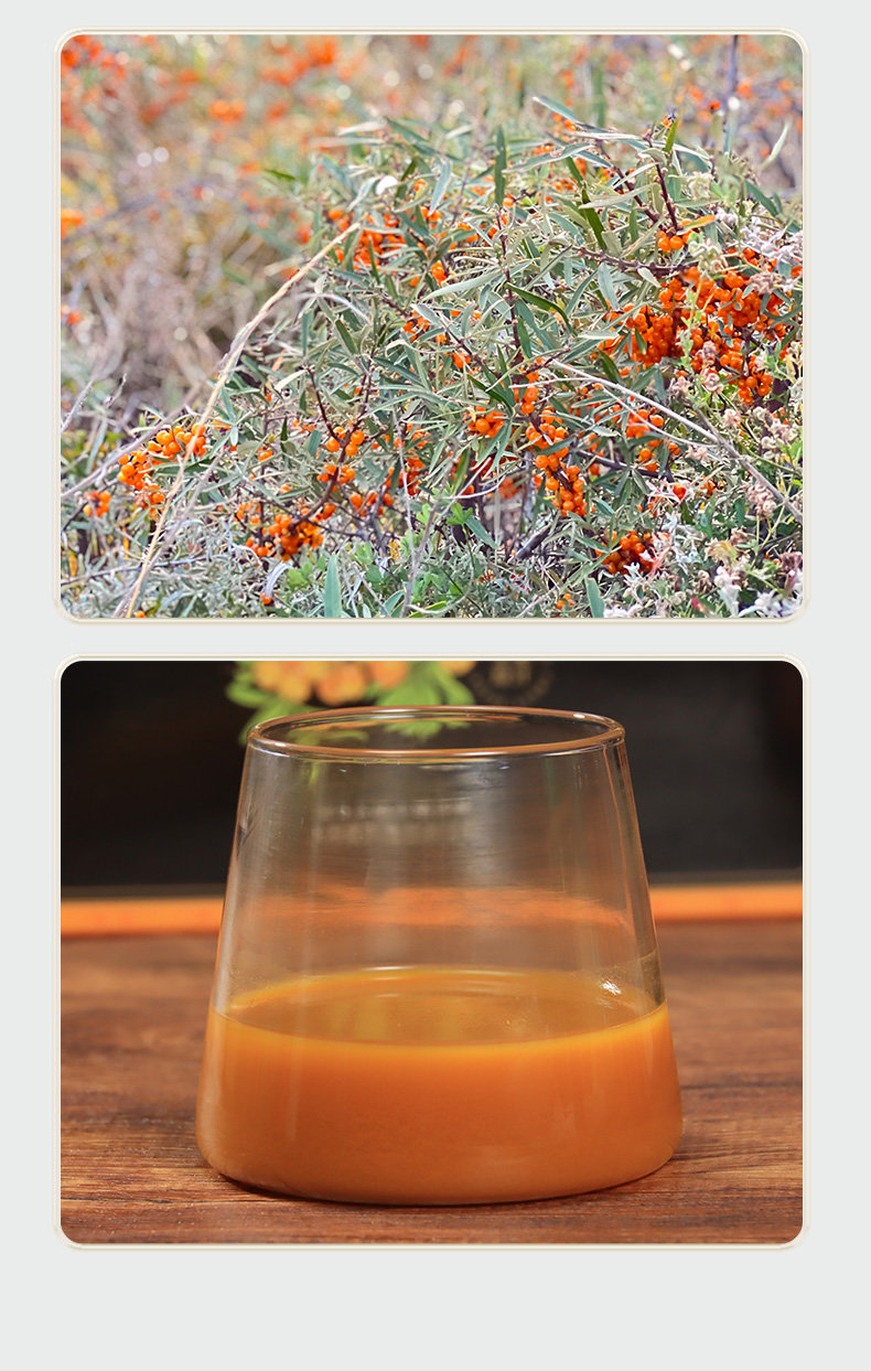 (一般沙棘原浆厂商是会把沙棘油,单独提炼出来卖, 因为沙棘油累积成一小瓶也要卖出三百多高价了)