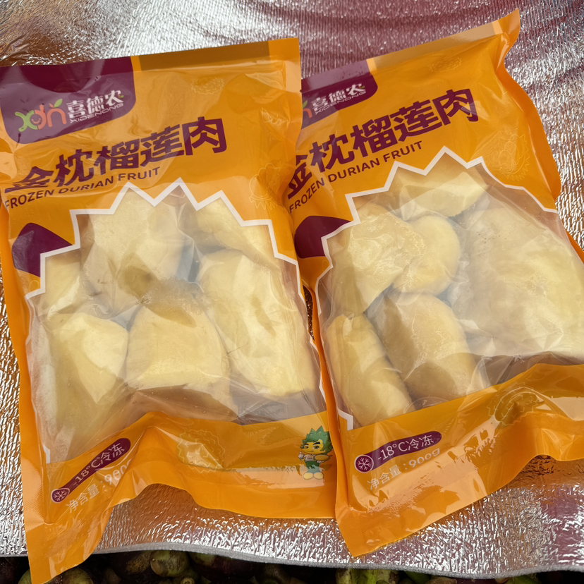 泰国AA级金枕榴莲肉!3小时内急冻,新鲜得仿佛置身泰国一般,软糯香甜,带着冰镇后的丝丝凉爽,完美的在舌尖跳舞,每袋900g纯果肉~