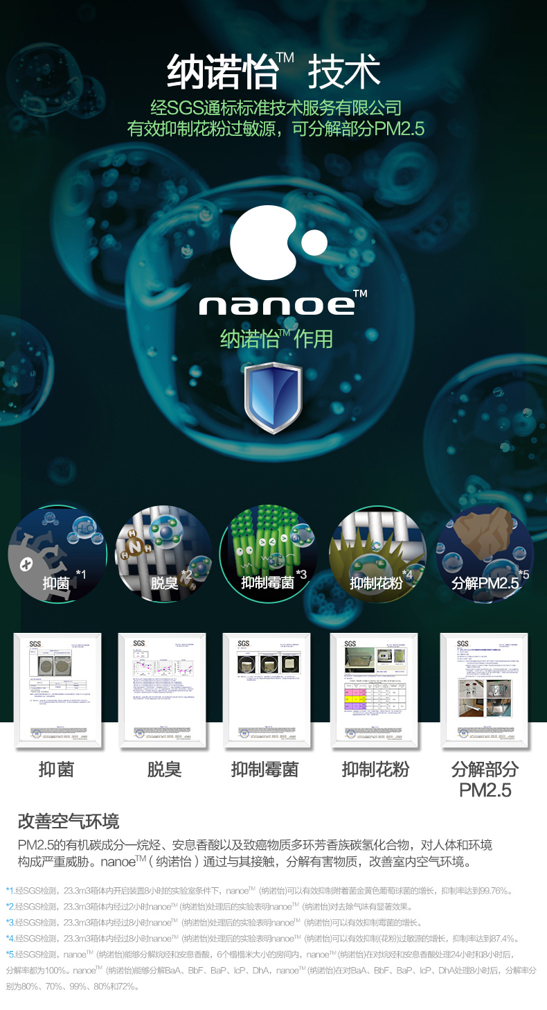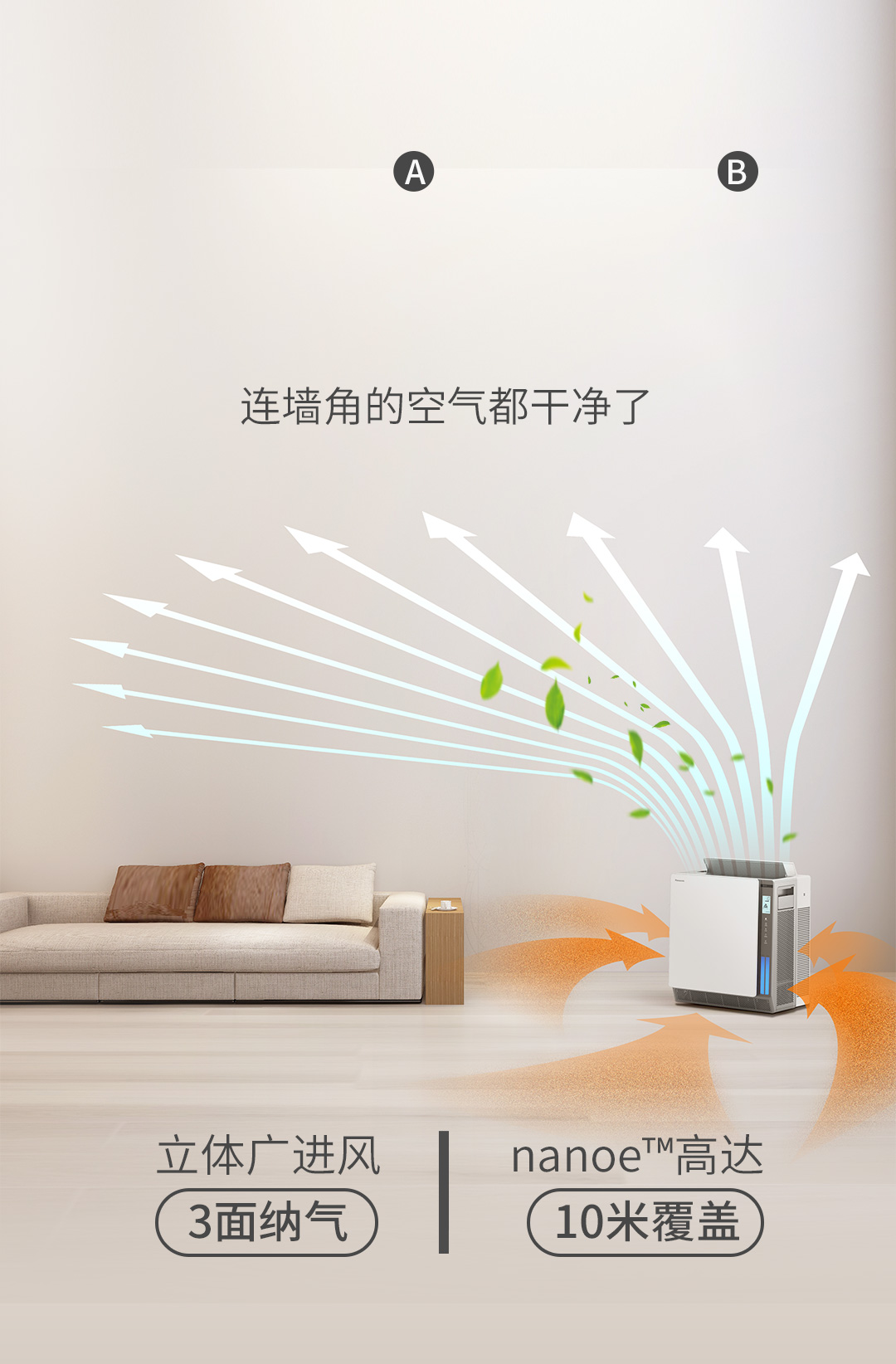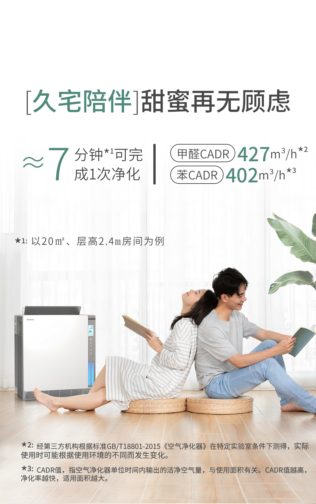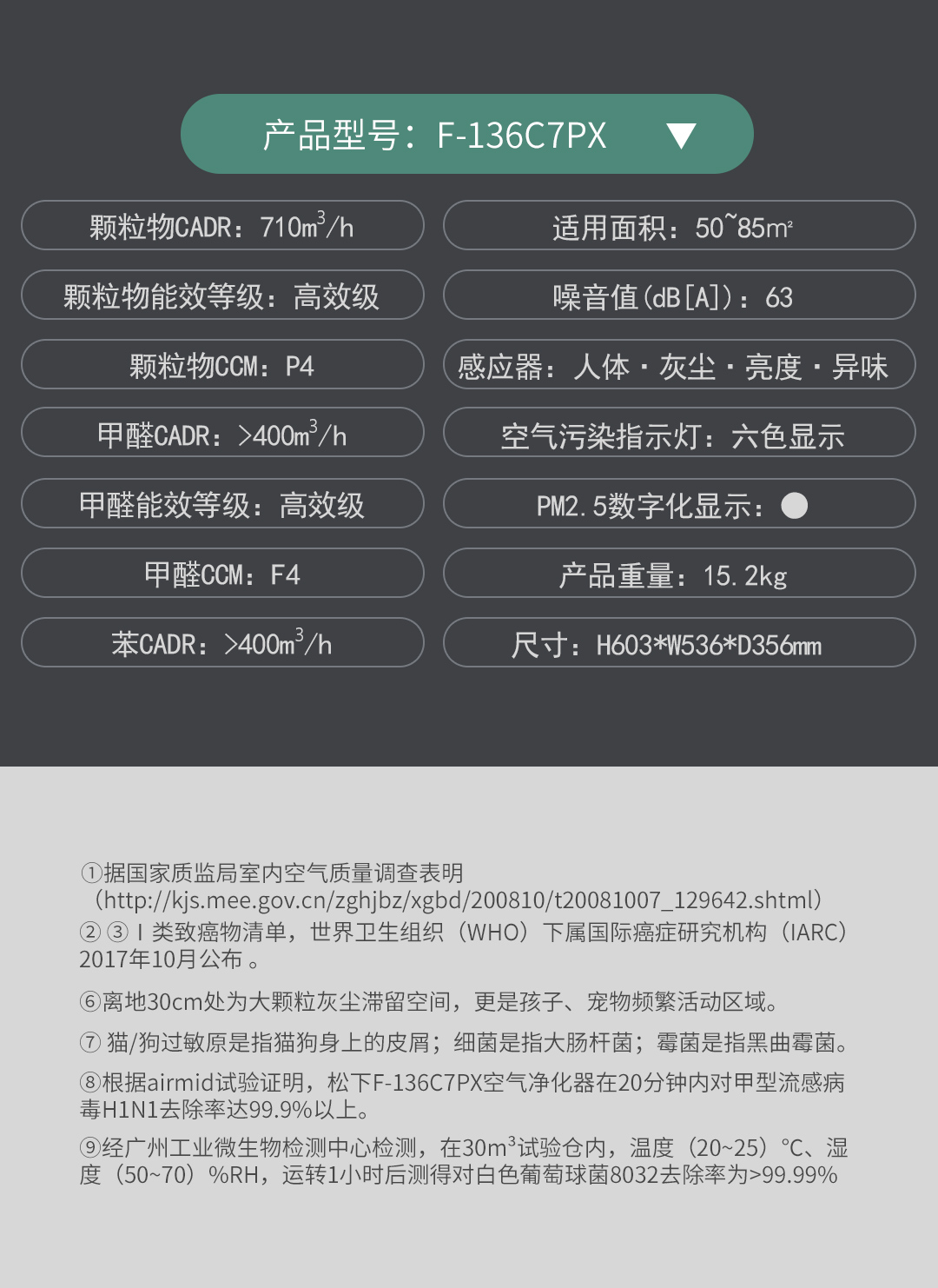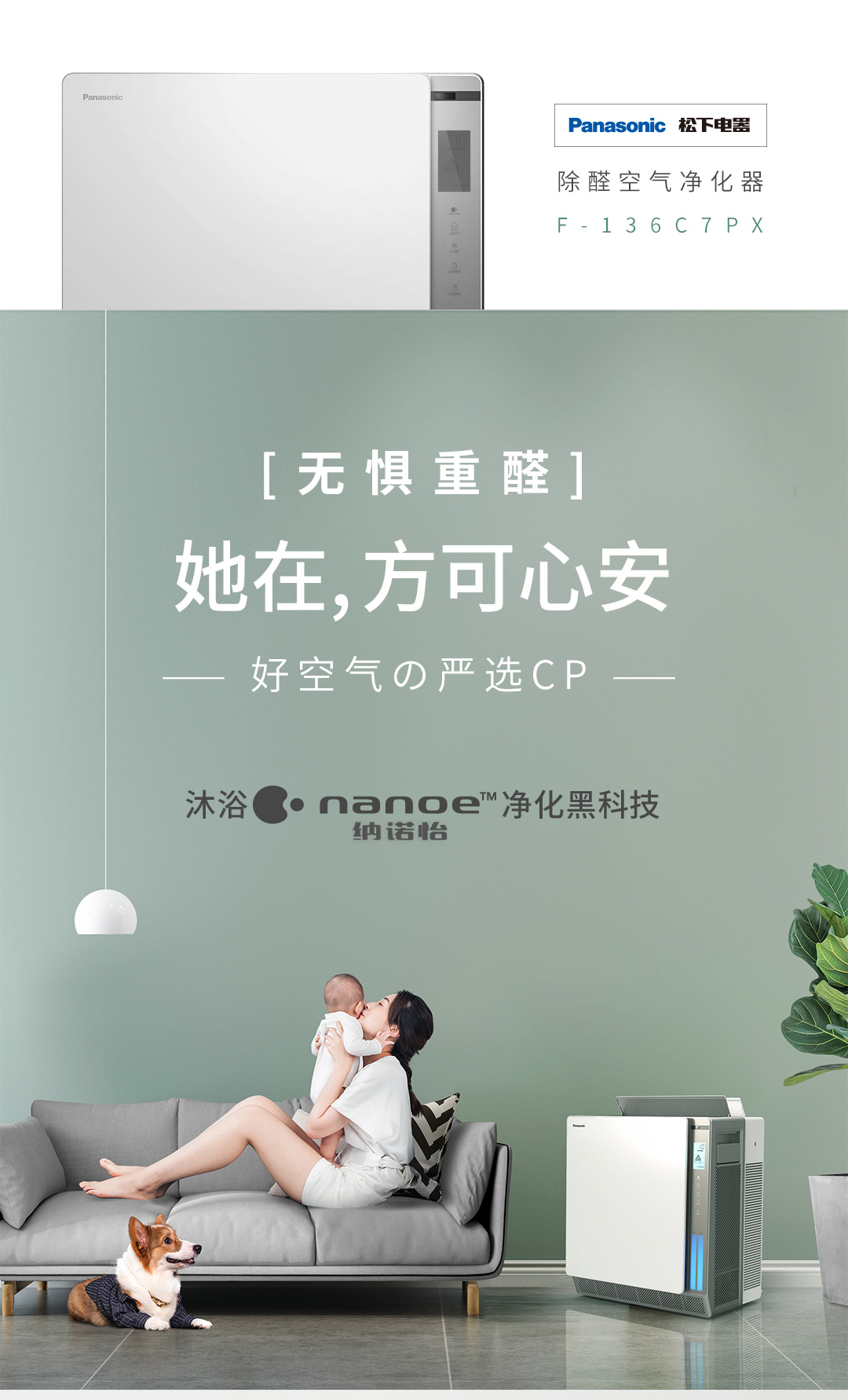 松下 (Panasonic)除甲醛空气净化器家用 除细菌 除过敏原雾霾二手烟苯 纳米水离子PM2.5数显F-136C7PX
