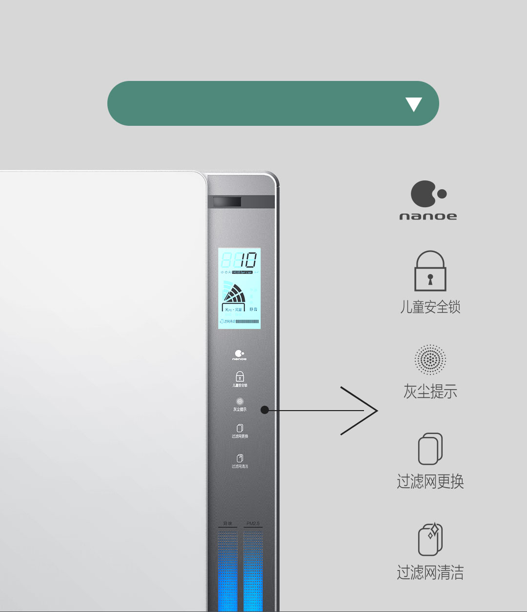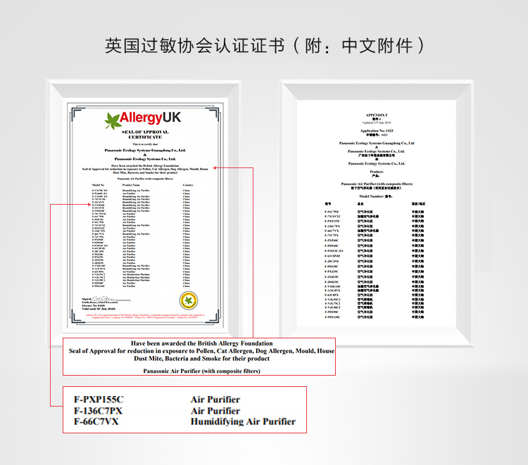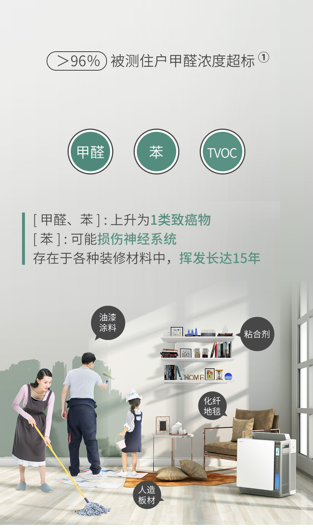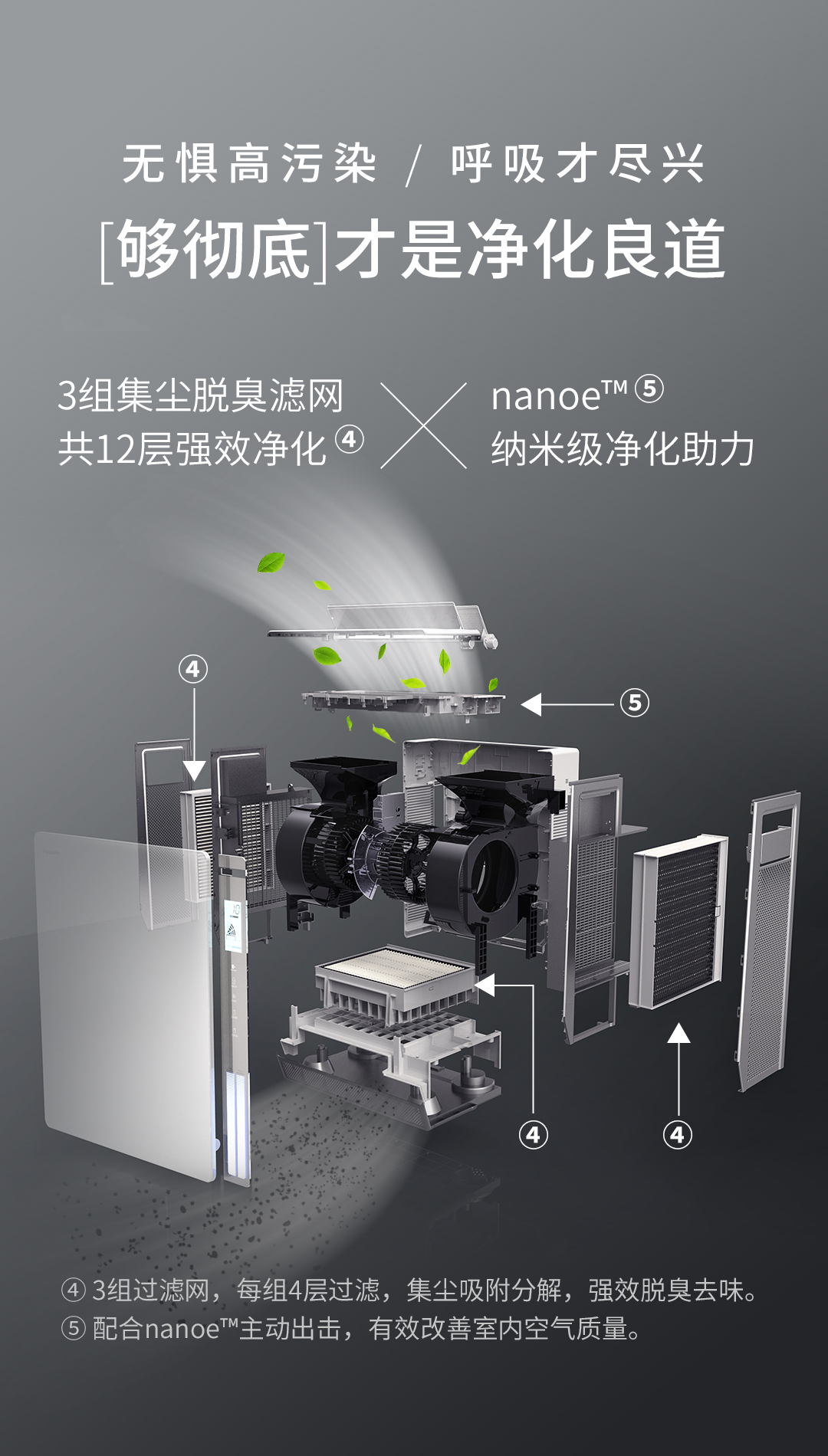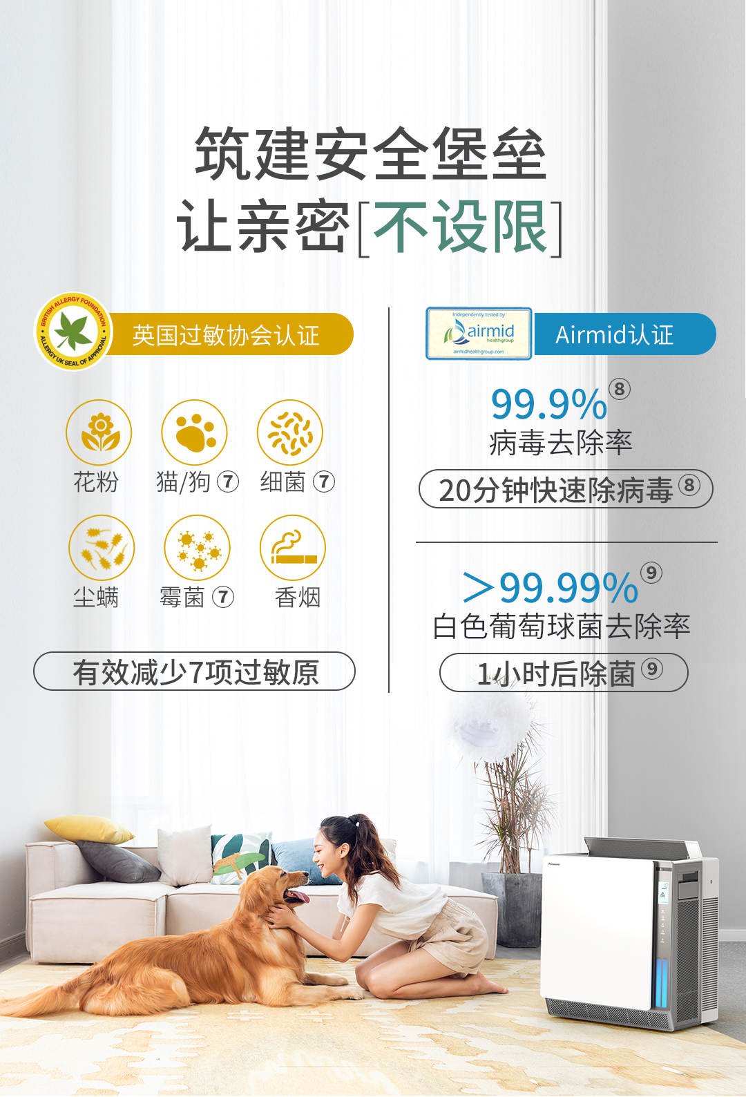 松下 (Panasonic)除甲醛空气净化器家用 除细菌 除过敏原雾霾二手烟苯 纳米水离子PM2.5数显F-136C7PX