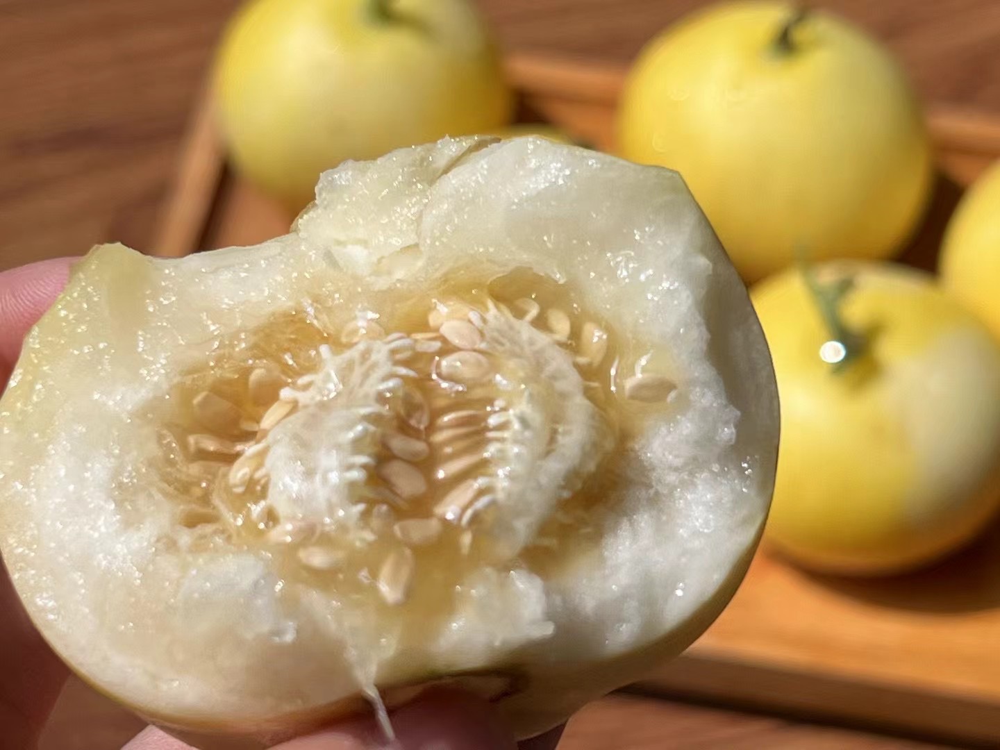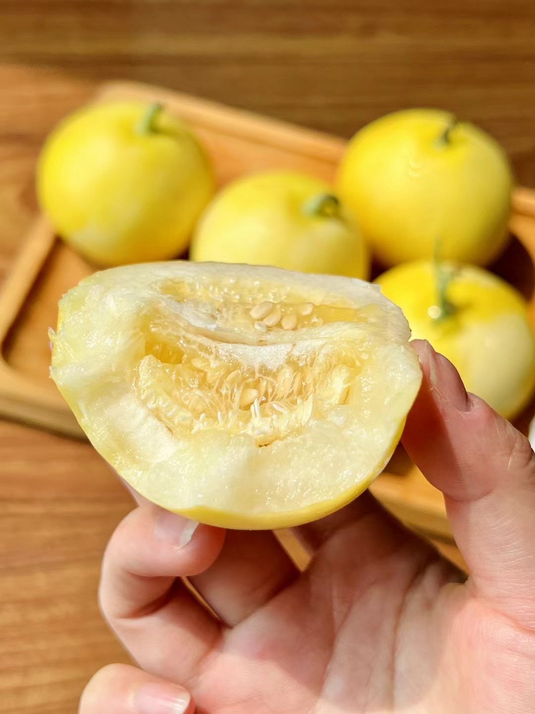 【产品优势】1.临沂现摘现发,甜度和口感超级棒,黄色的外表,蜜甜多汁,甜度高,号称小蜜罐