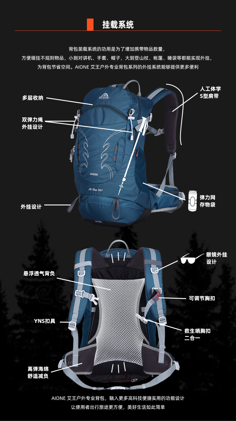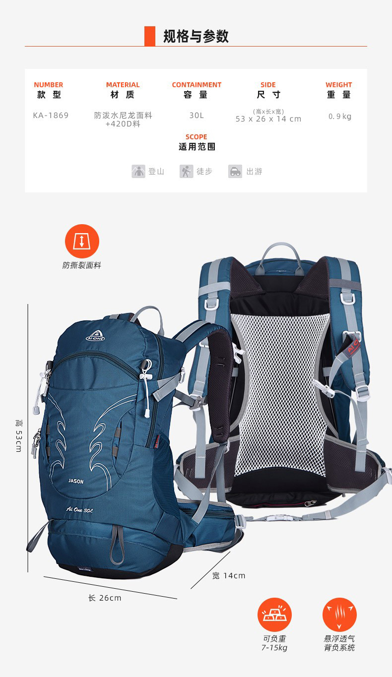 【新用户专属】艾王户外徒步登山包悬浮背包男女30L露营徒步旅行双肩背包KA-1869(送防雨罩)