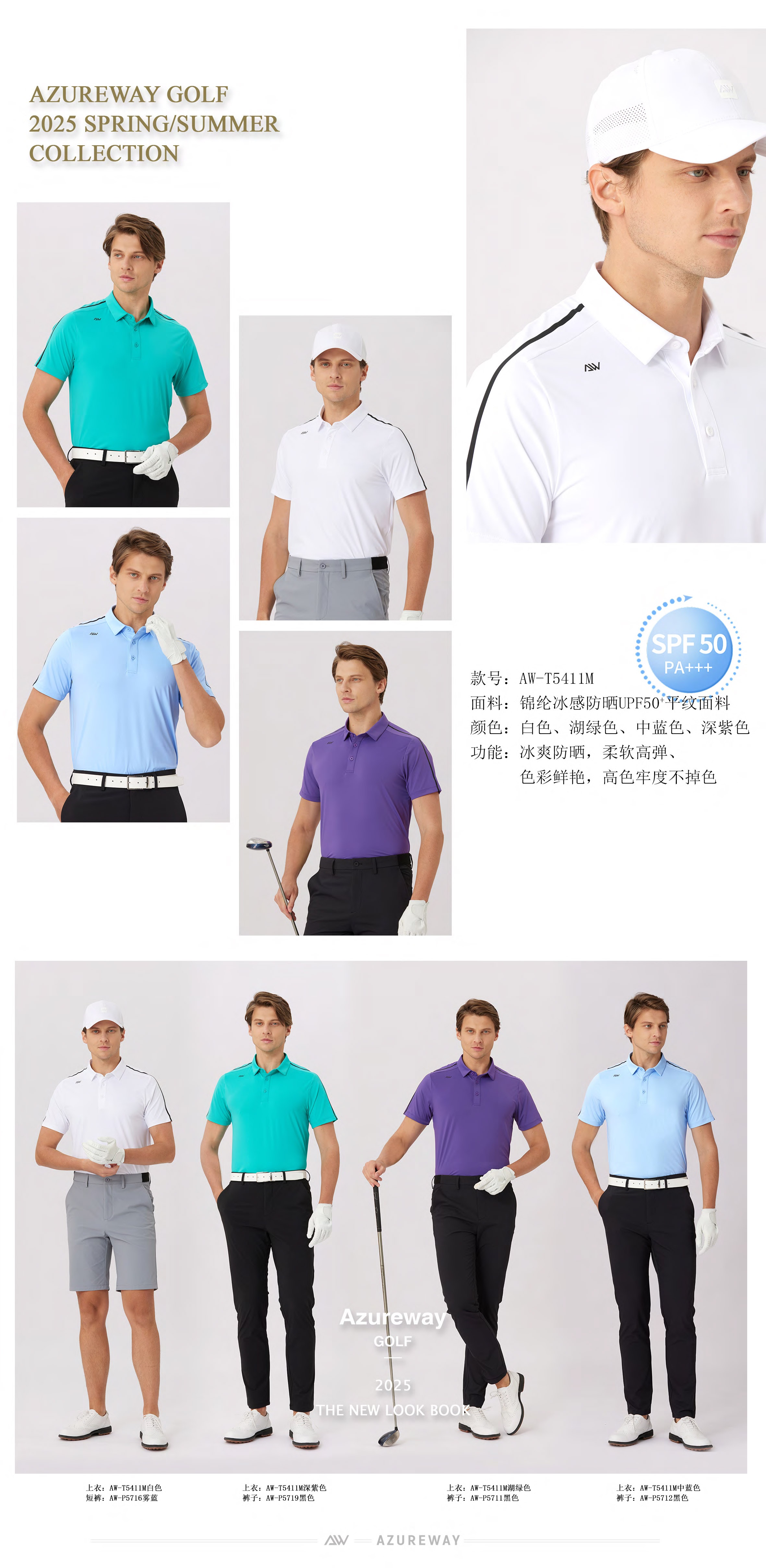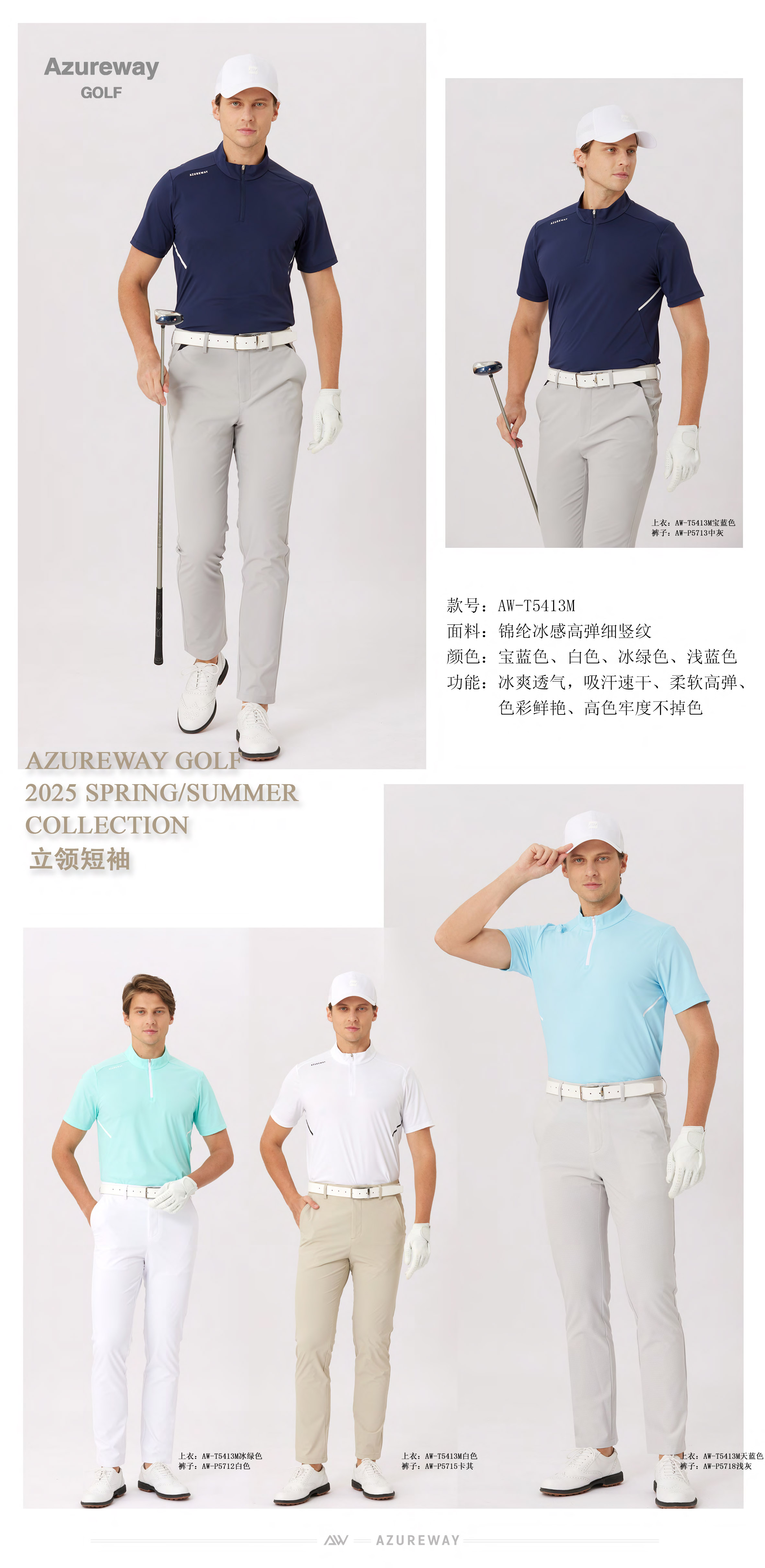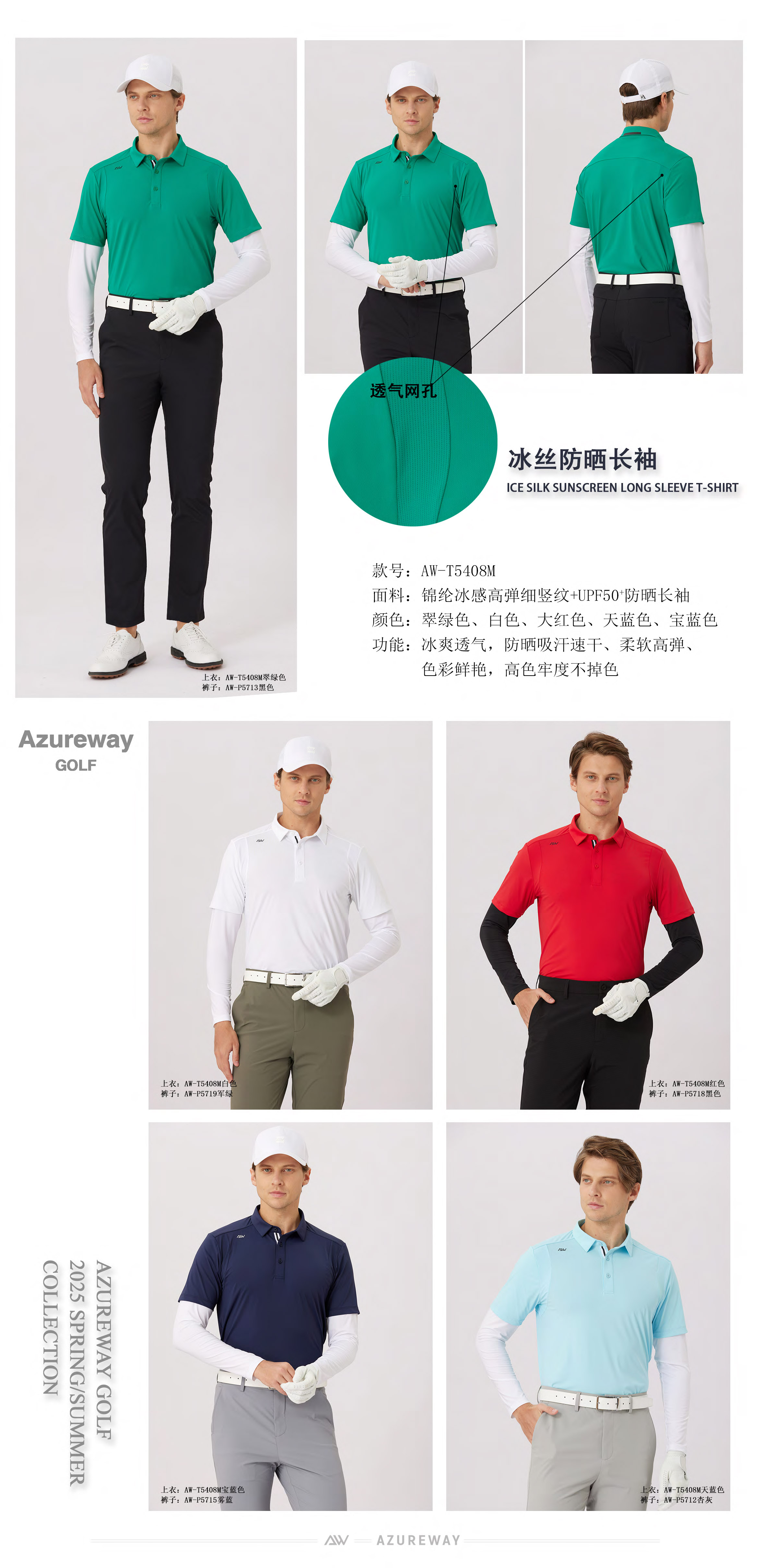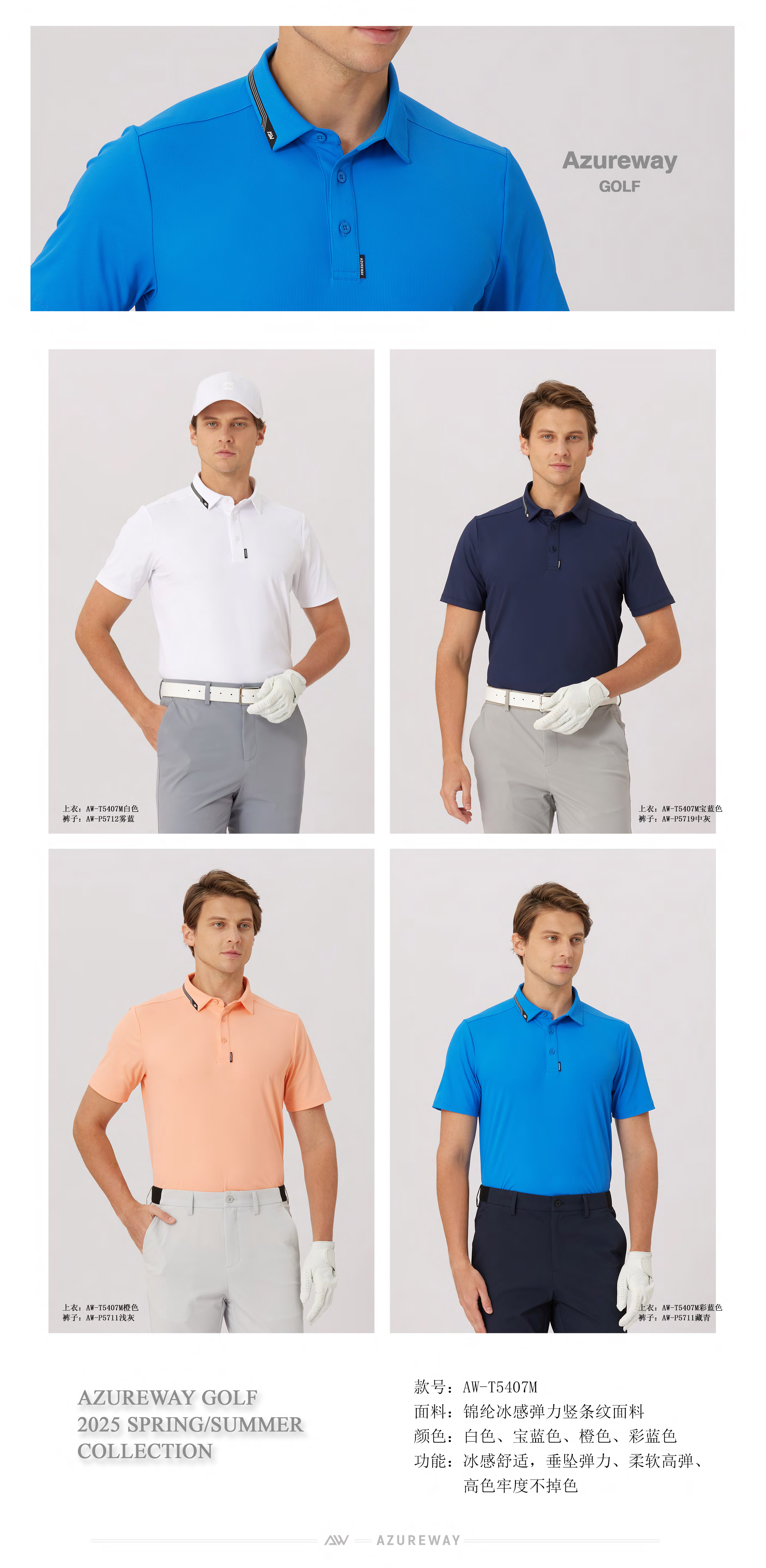 Azureway乐为25款高尔夫短袖T恤冰感防晒弹力速干polo衫golf服装男上衣参与买三件发四件活动
