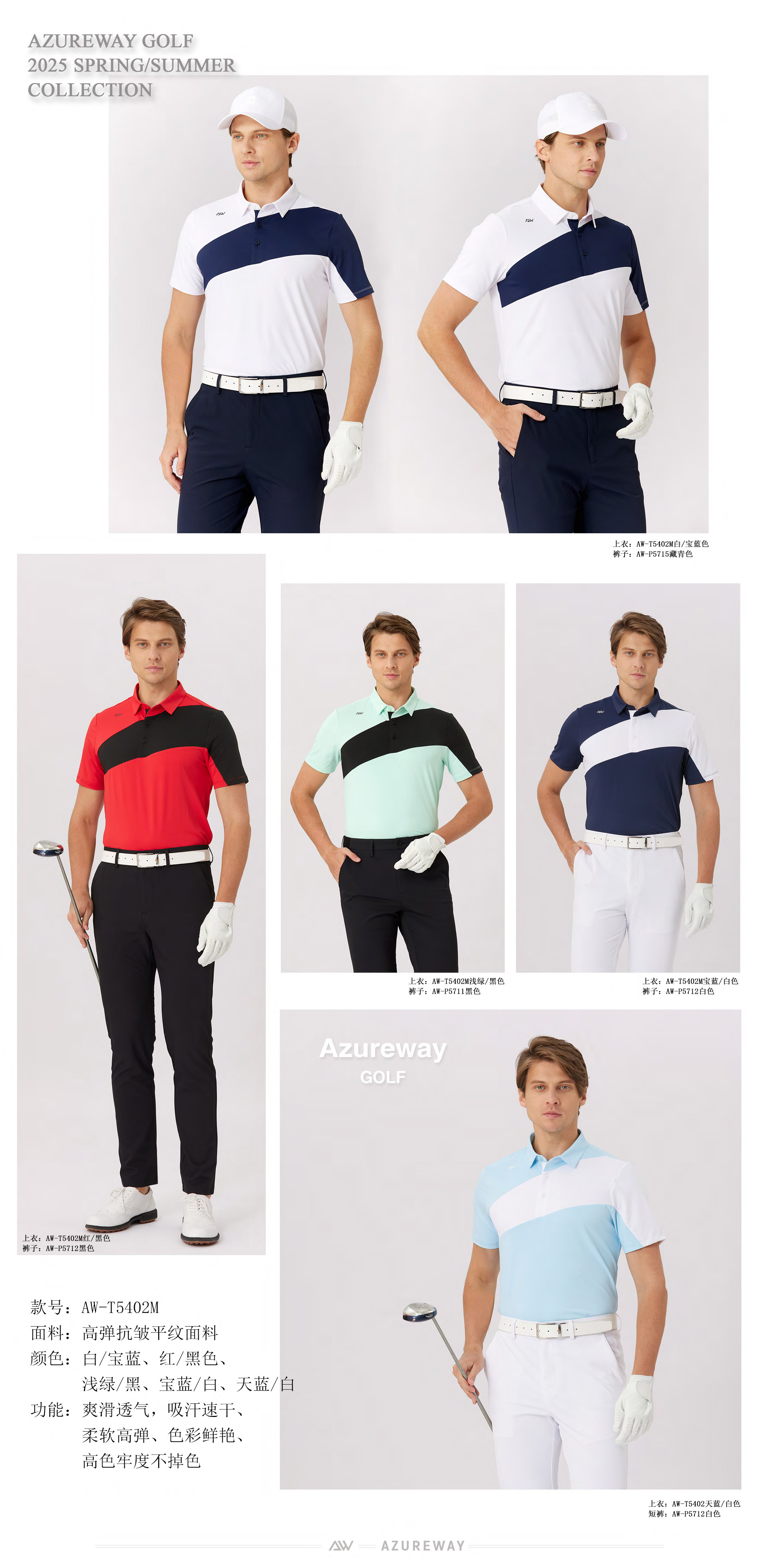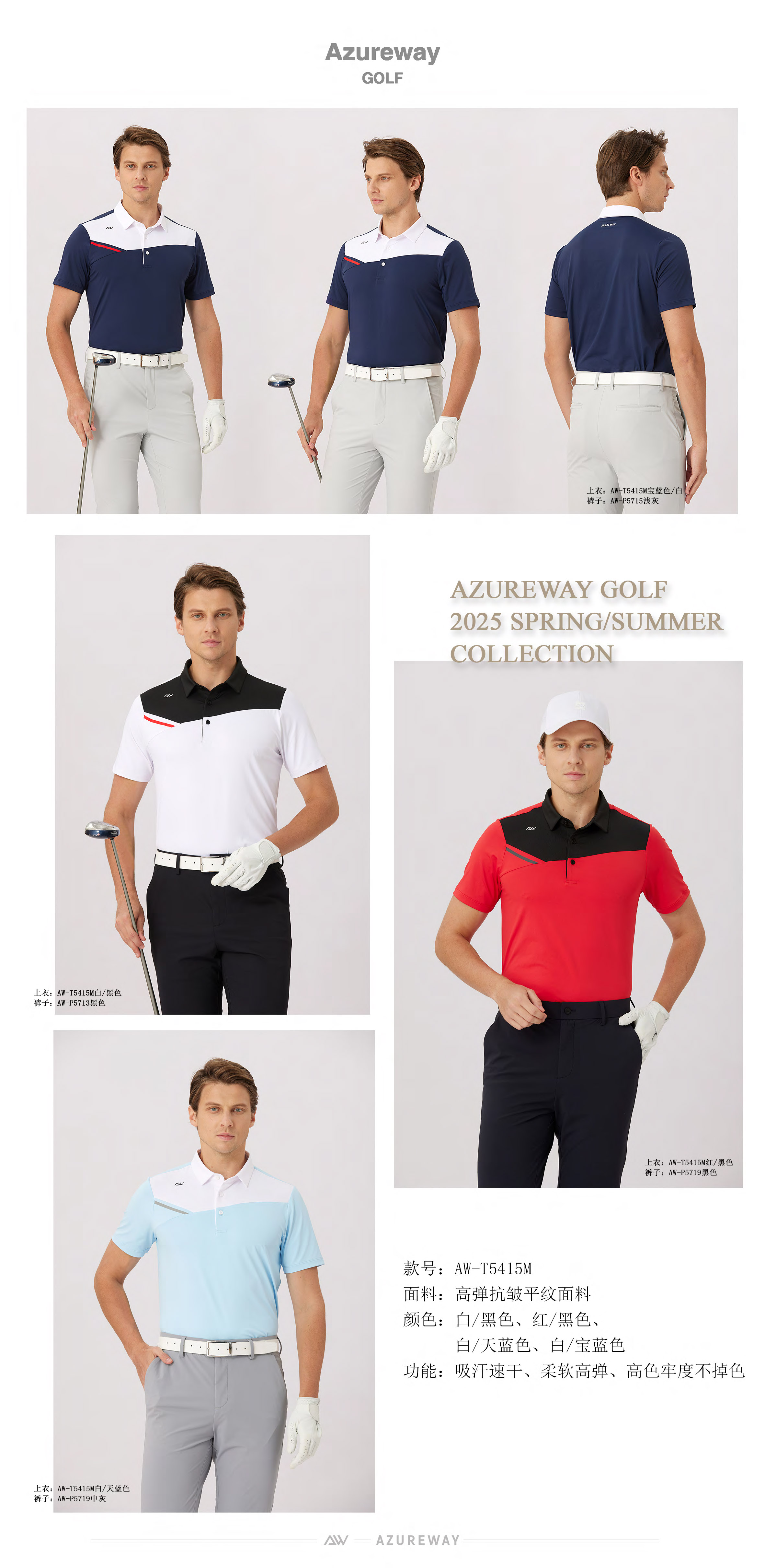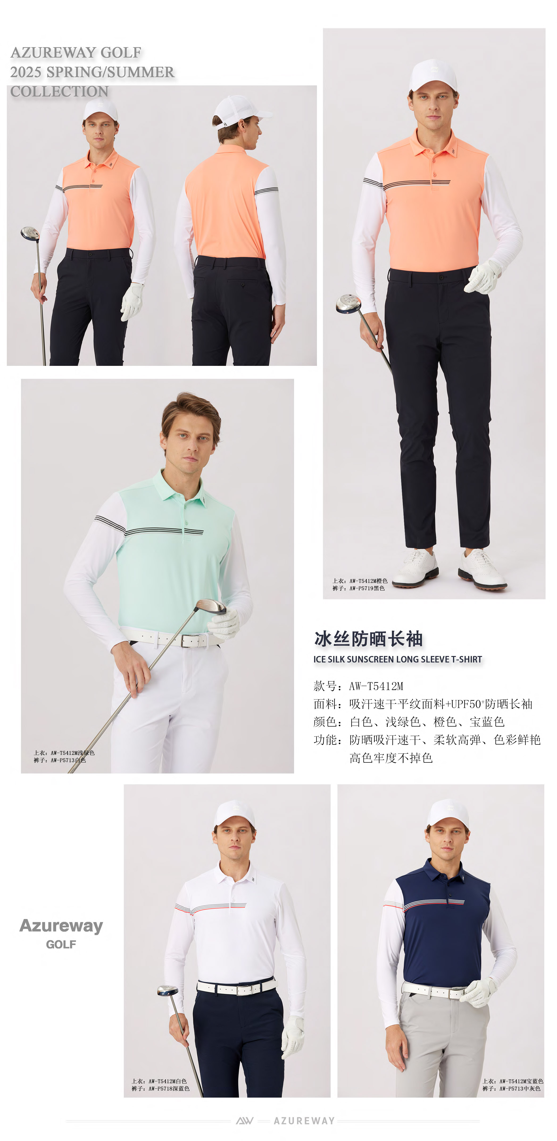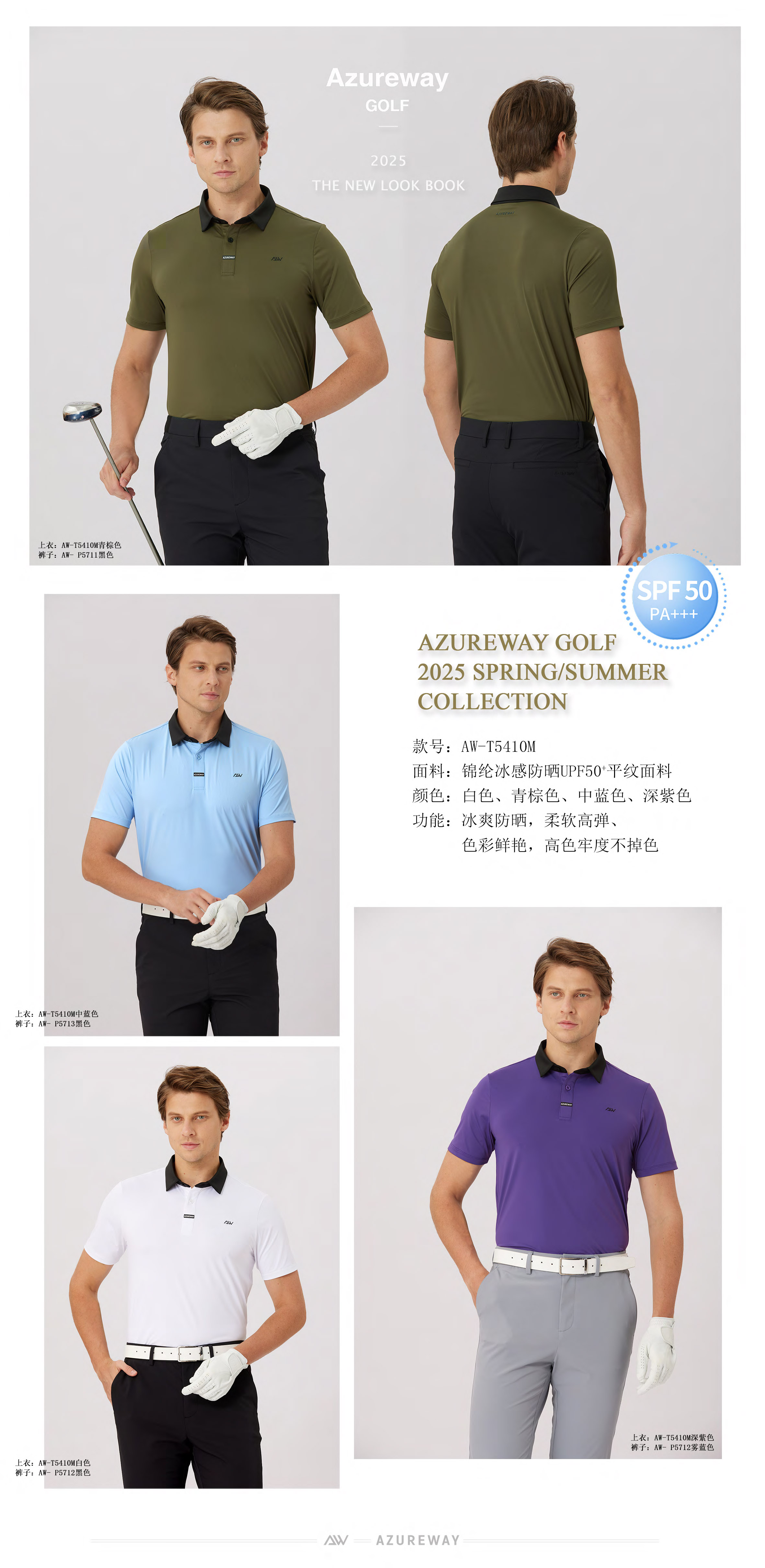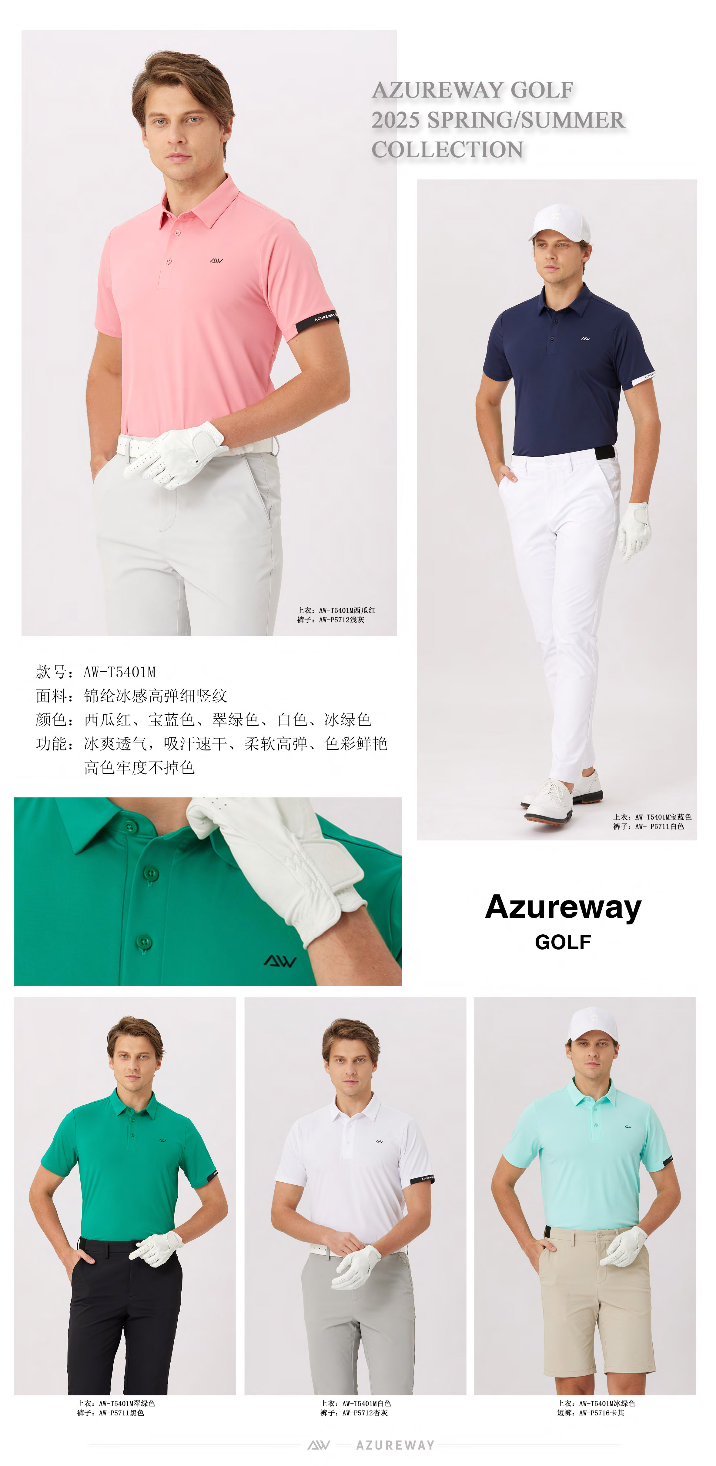 Azureway乐为25款高尔夫短袖T恤冰感防晒弹力速干polo衫golf服装男上衣参与买三件发四件活动