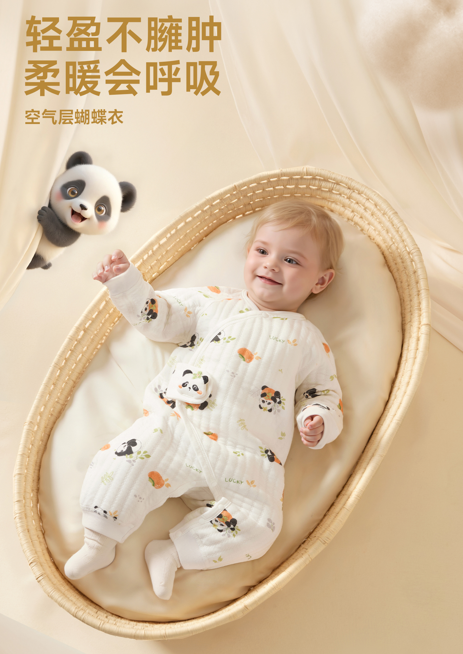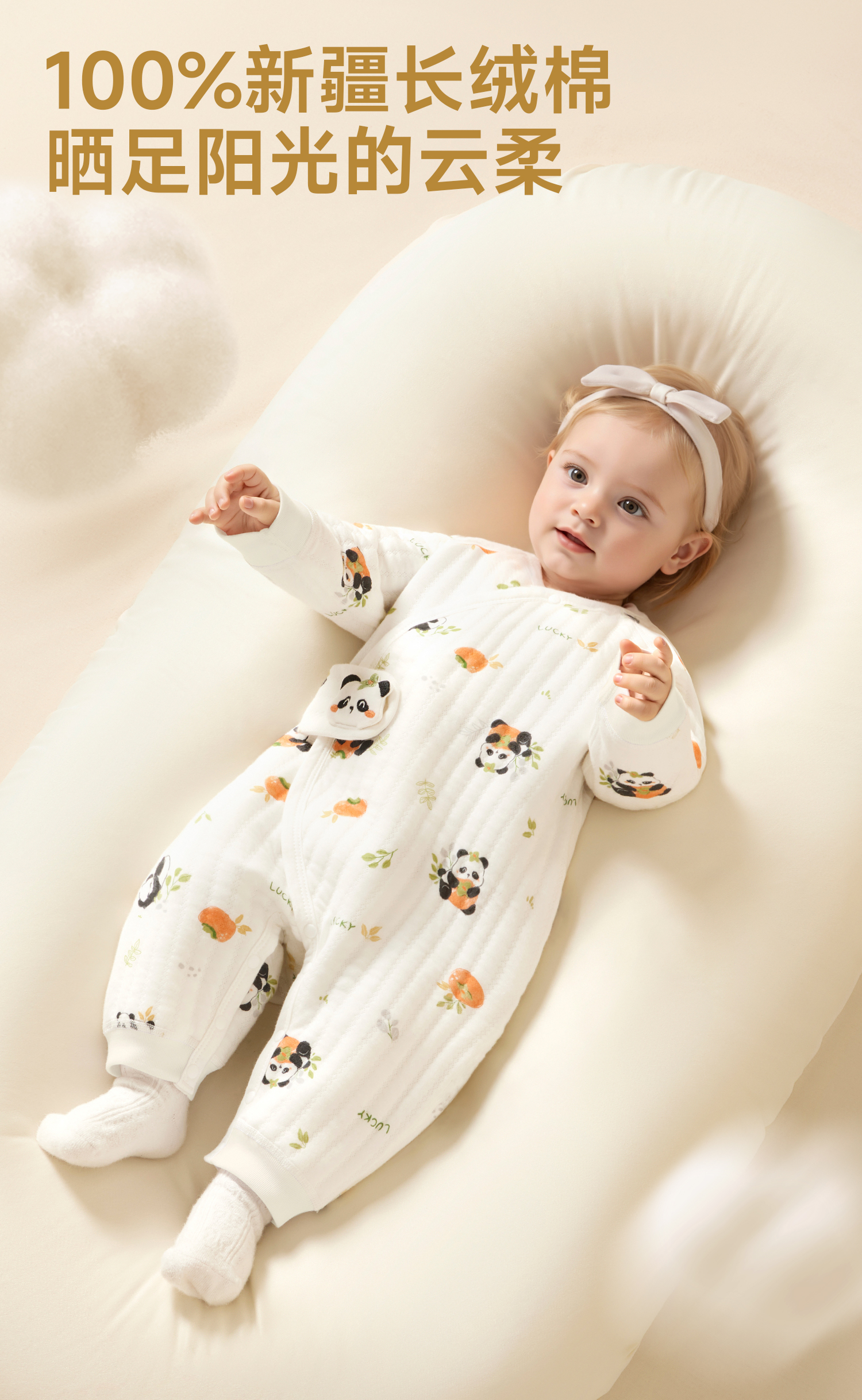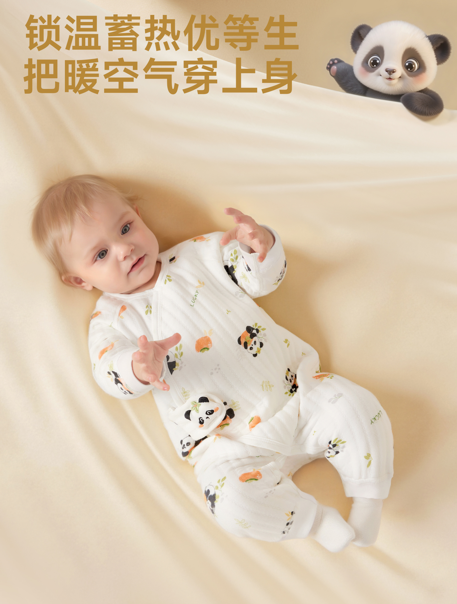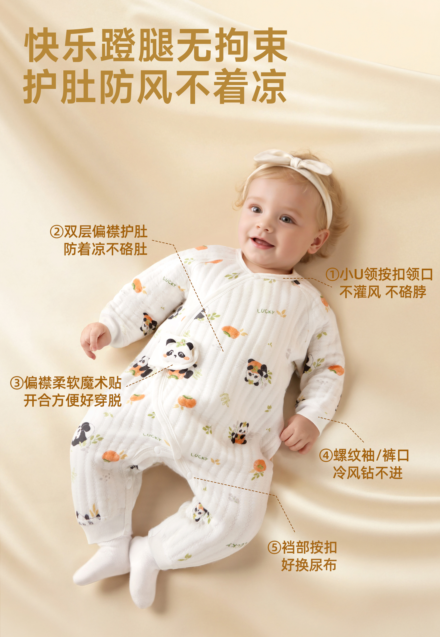新生婴儿衣服早秋季初冬装幼小月龄外出59夹棉睡衣满月宝宝连体衣