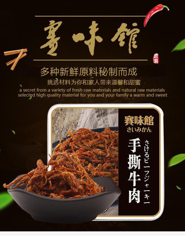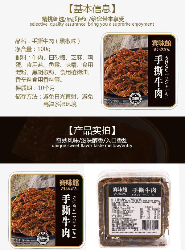 赛味馆手撕牛肉/猪肉100g 五香味/原味/黑椒味 熟肉干制品 办公室小零食150263/150264/150265