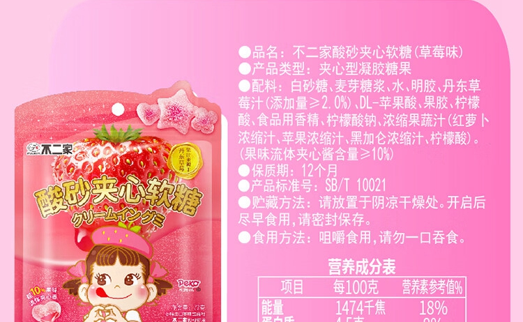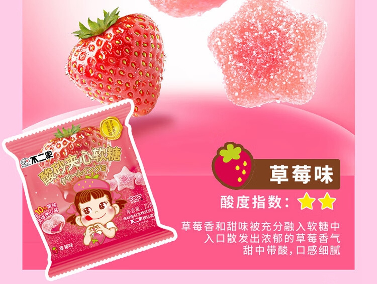 不二家酸沙软糖草莓味72g/063402 外裹酸粉内含果酱