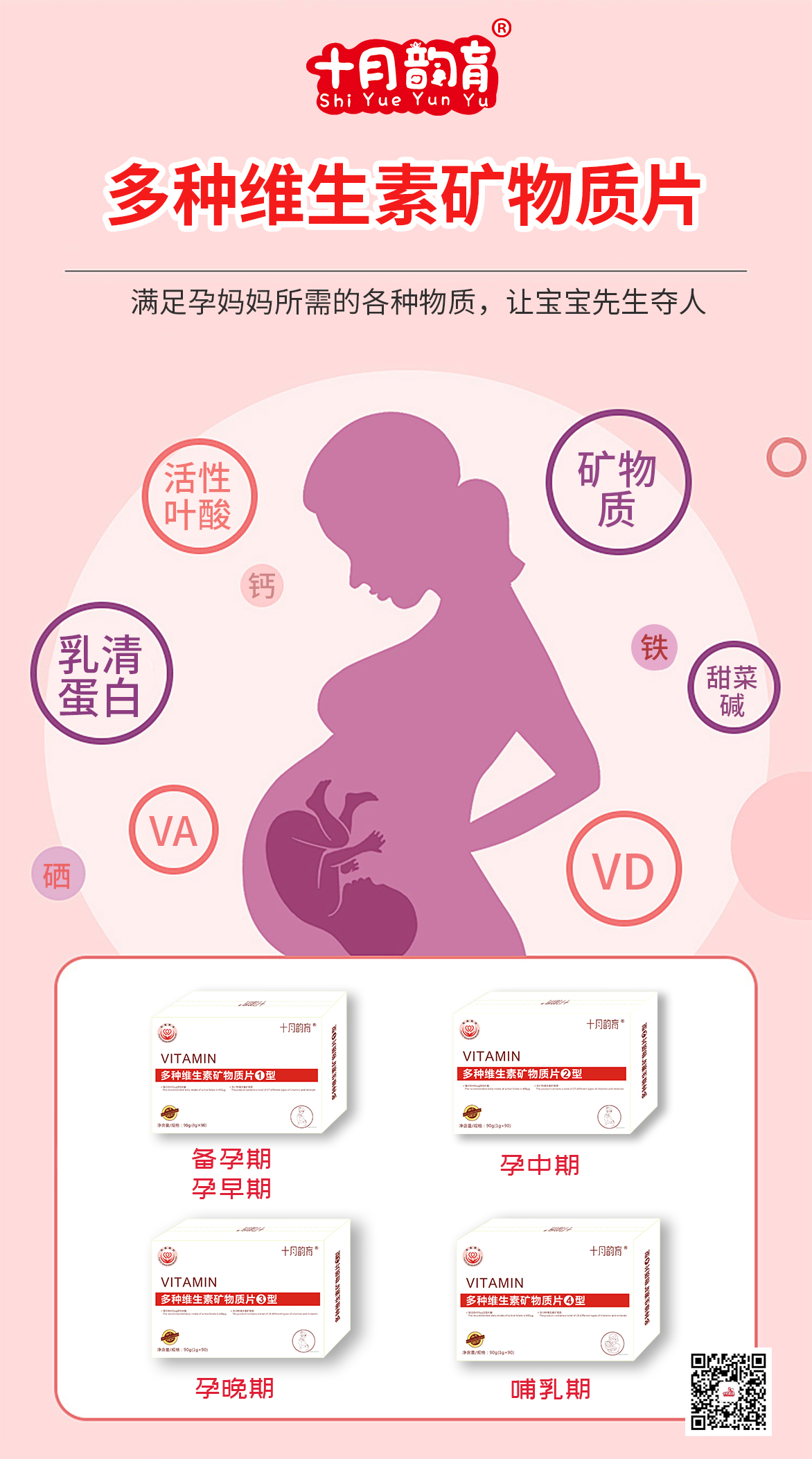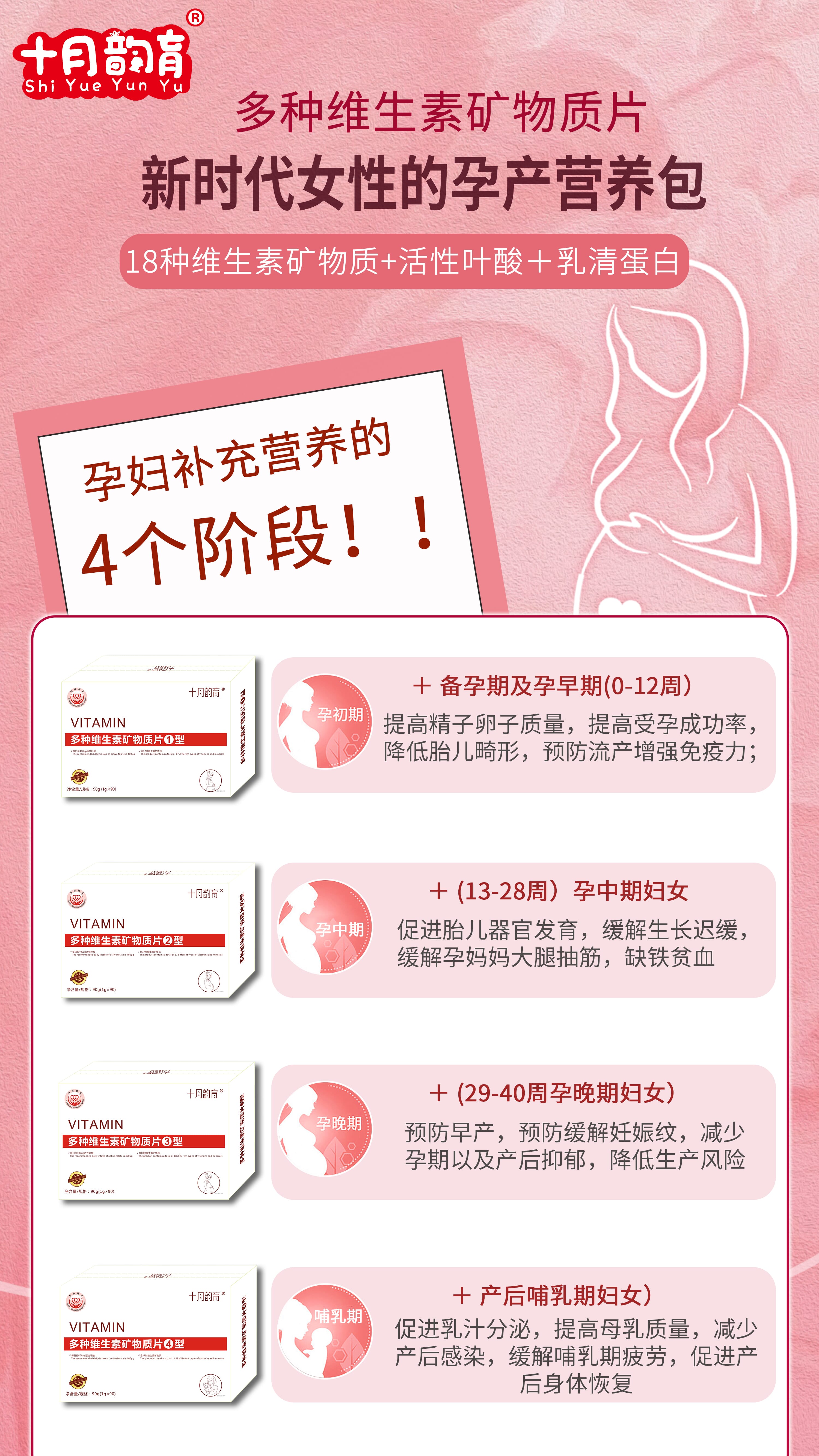 孕妇活性叶酸多维片/十月韵育多种维生素矿物质片1234型