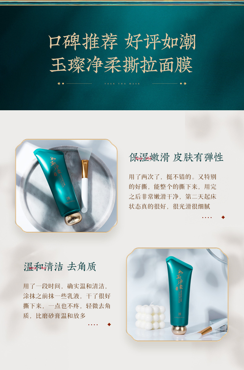 温婷玉璨净柔撕拉面膜 补水保湿滋润清洁控油去黑头粉刺泥膜配刷七夕情人节