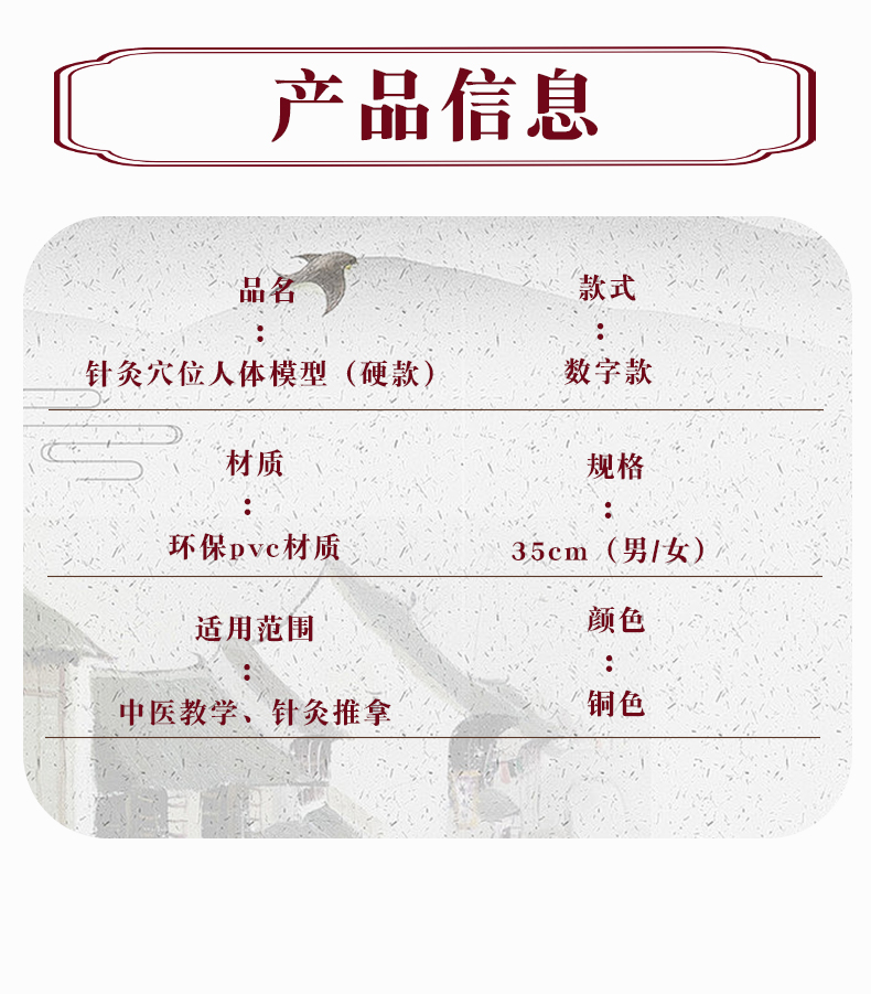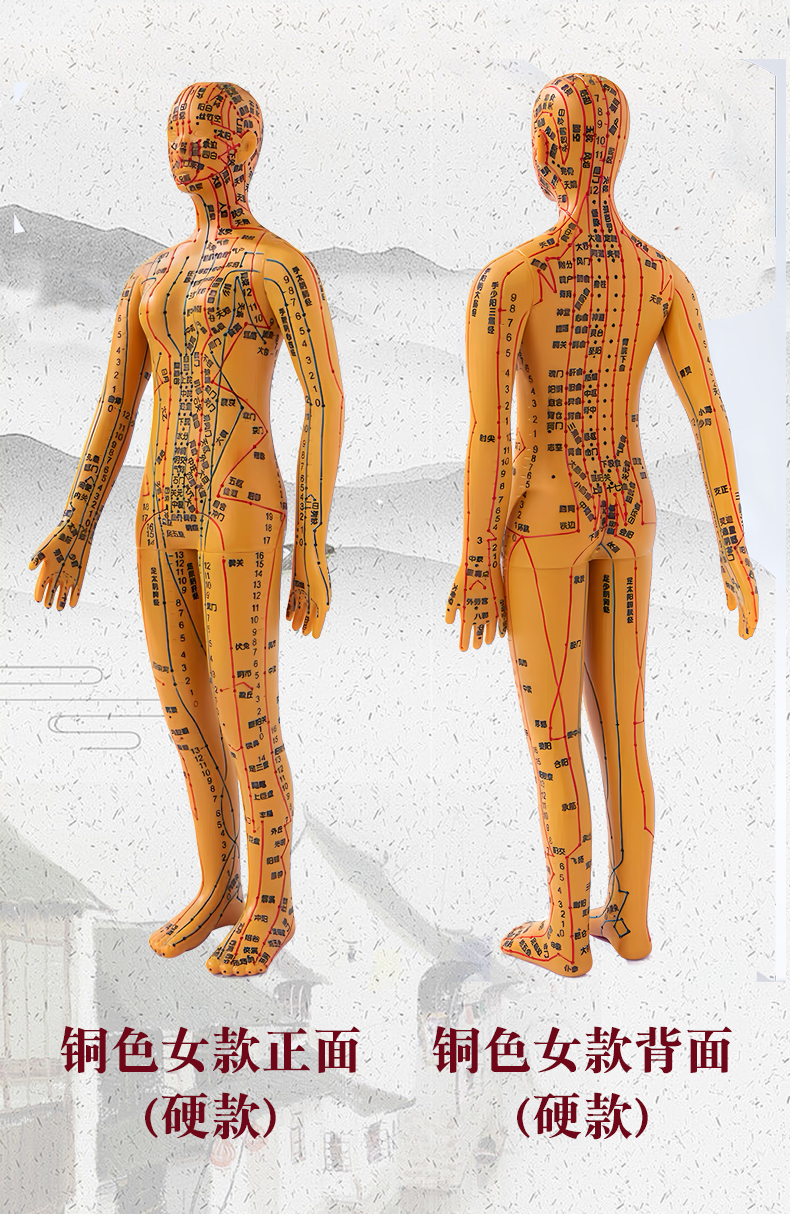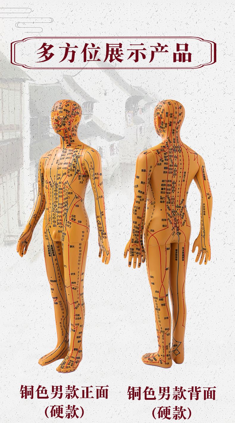 铜色针灸穴位人体模型 男女版(硬款,高约35cm)