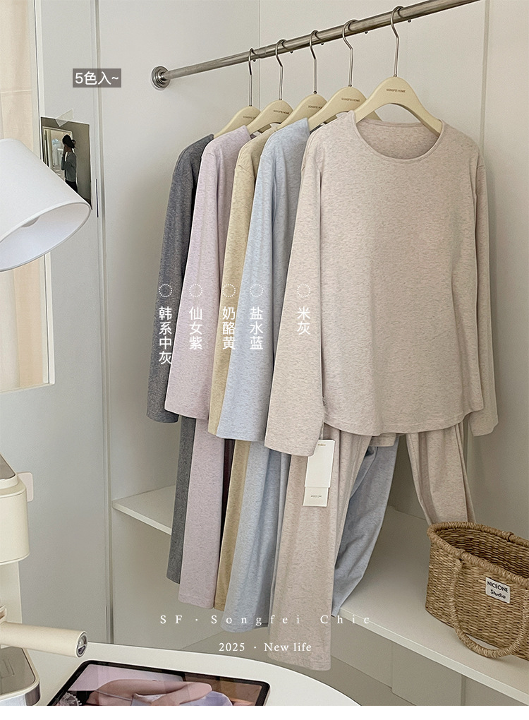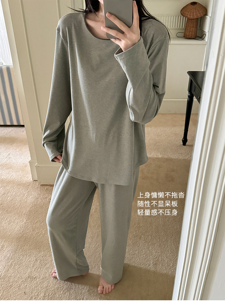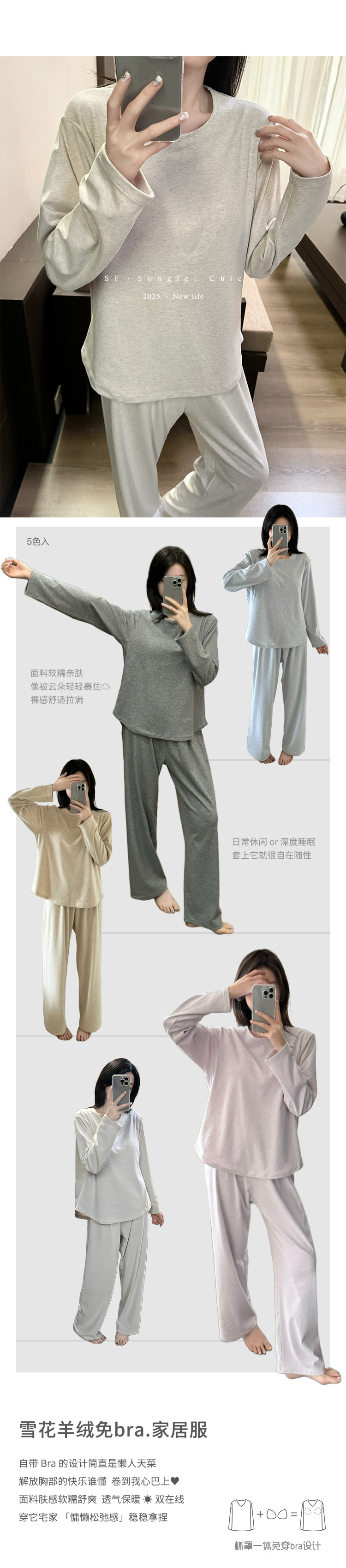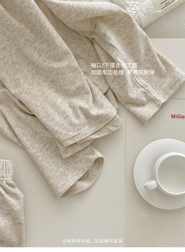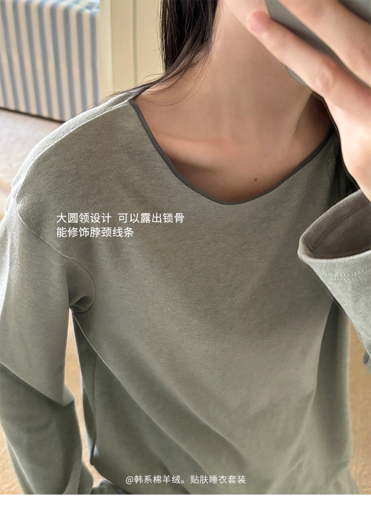 秋冬【韩系绵羊绒睡衣套装】春秋圆领套头长袖套装 宽松舒适弹力家居服可外穿两件套