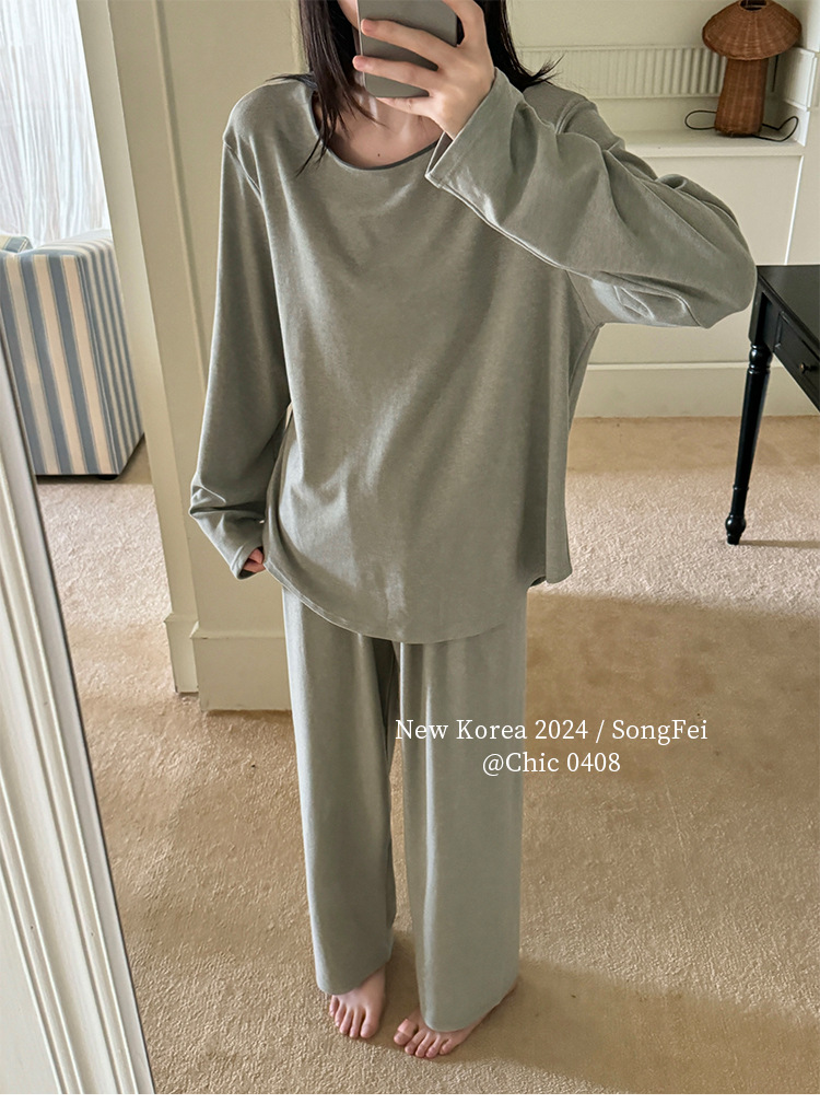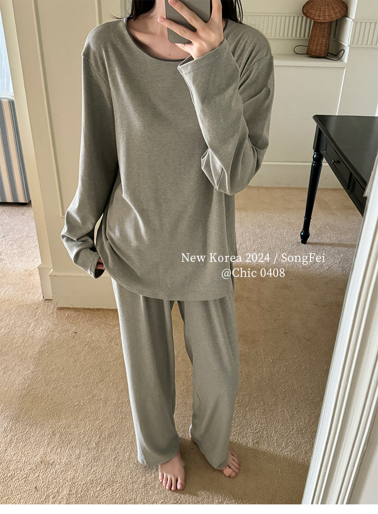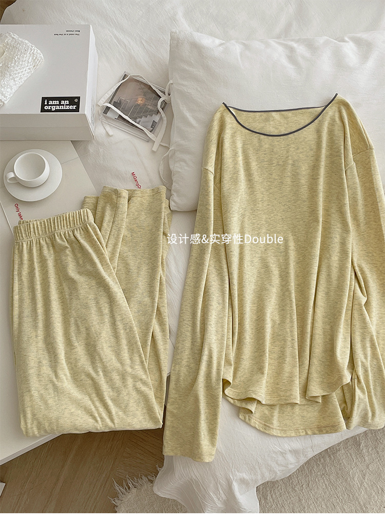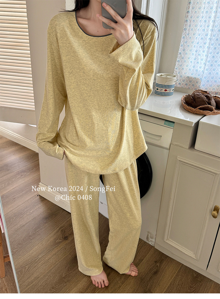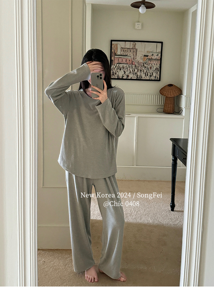 秋冬【韩系绵羊绒睡衣套装】春秋圆领套头长袖套装 宽松舒适弹力家居服可外穿两件套