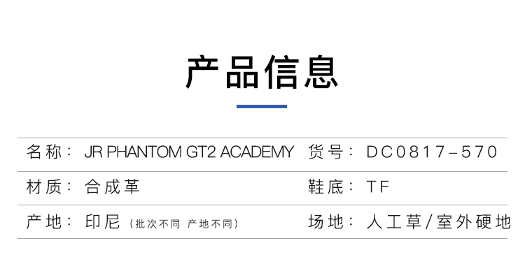 NIKE/耐克 Phantom GT2 Academy 青少年中端TF碎钉足球鞋DC0817570