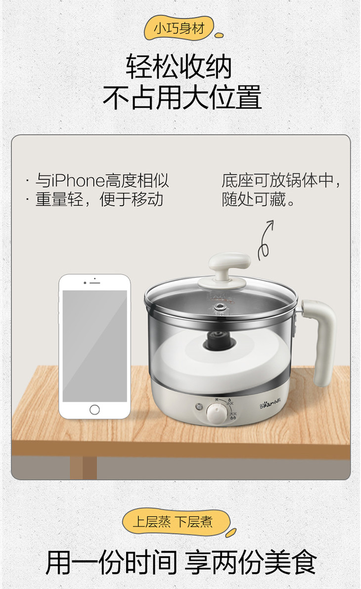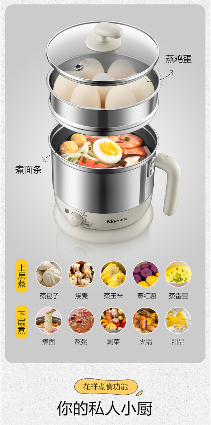 小熊(Bear)电热锅多功能电煮锅 蒸煮双层电热杯 煮面锅DRG-C123