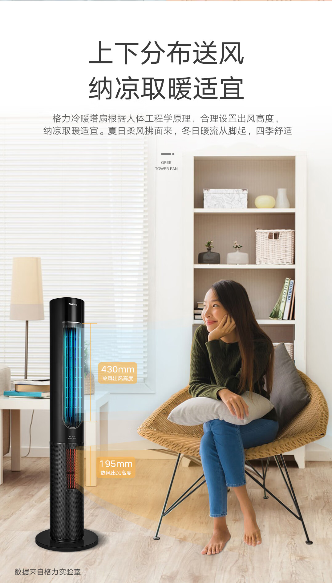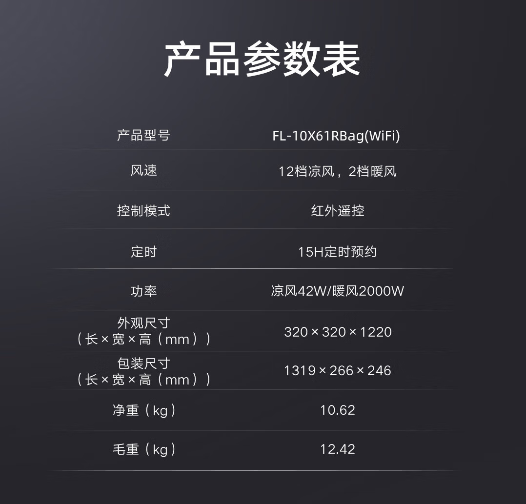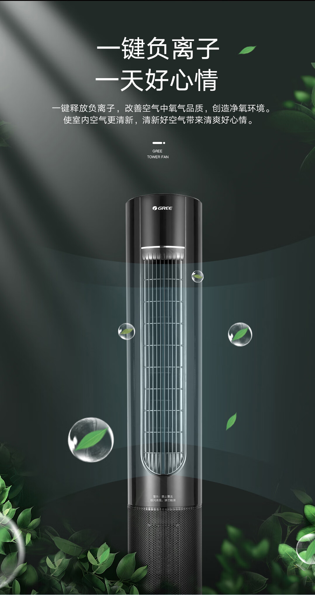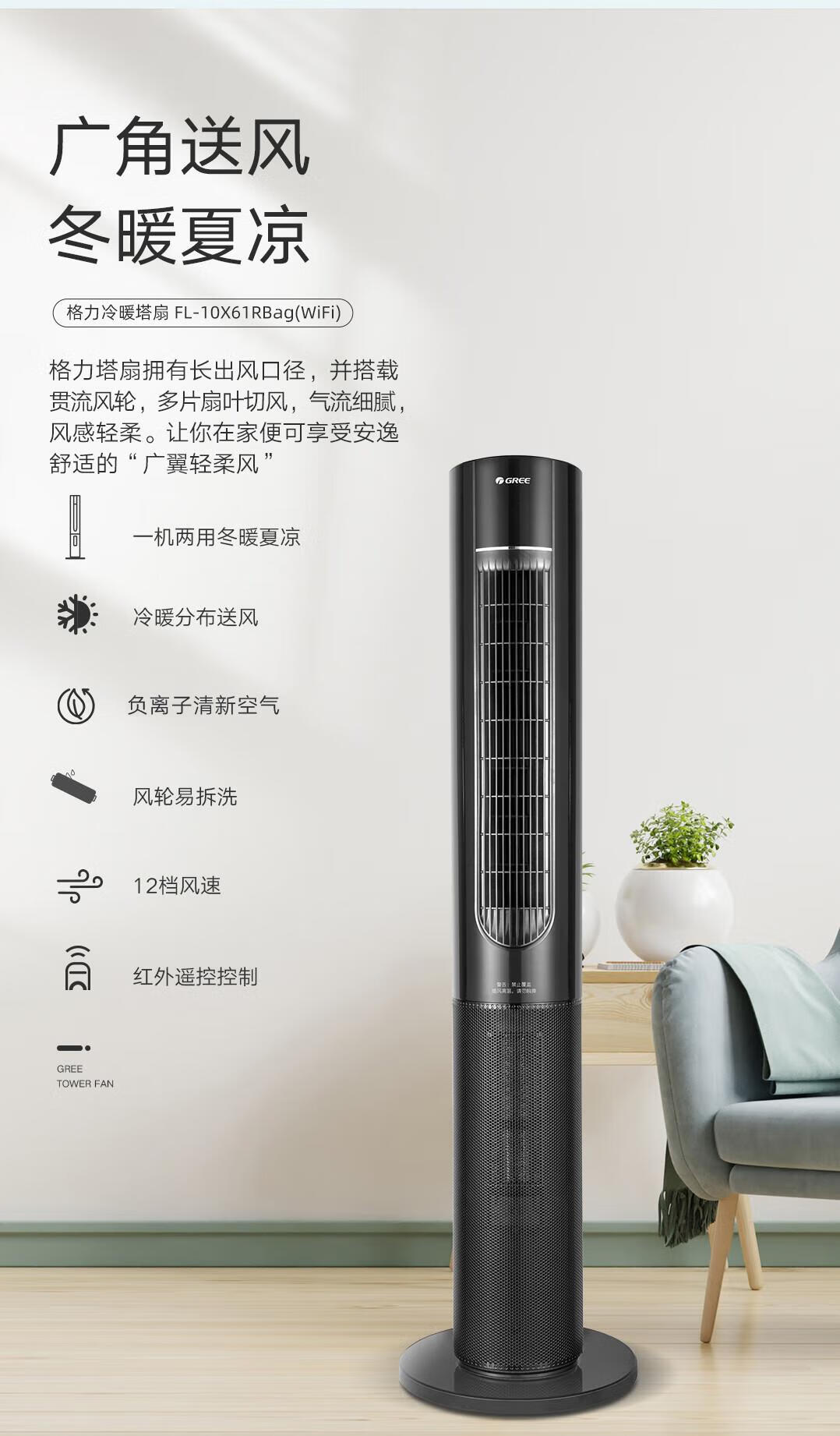 格力(GREE)家用卧室办公室无叶塔扇冷暖两用落地扇负离子智能节能遥控 FL-10X61RBag(WiFi)