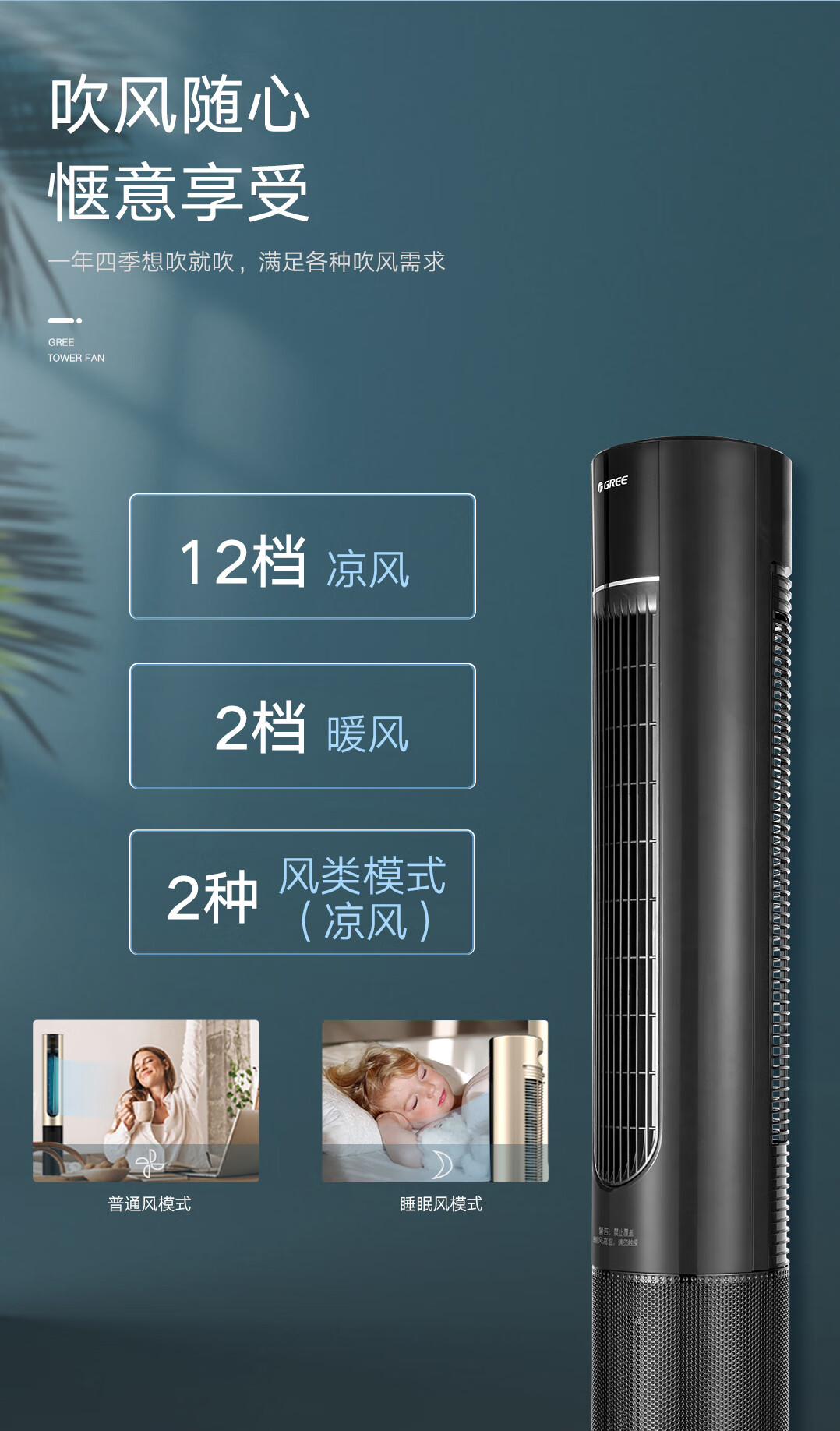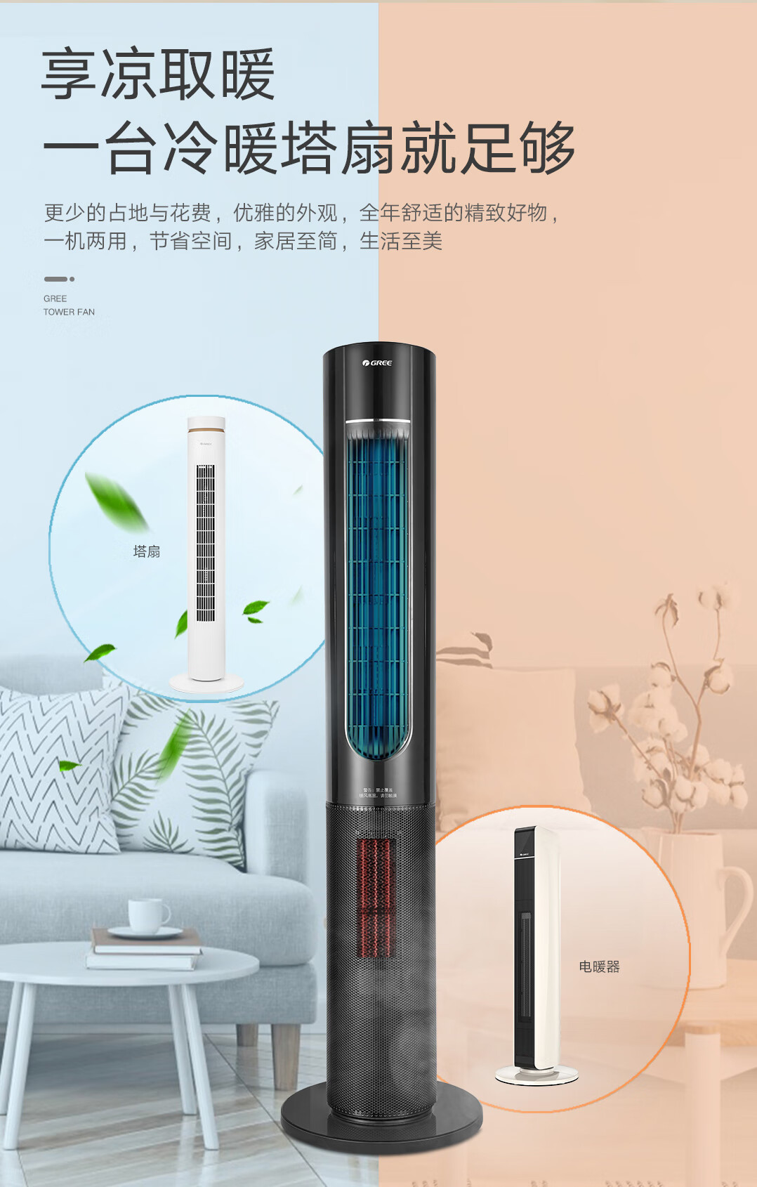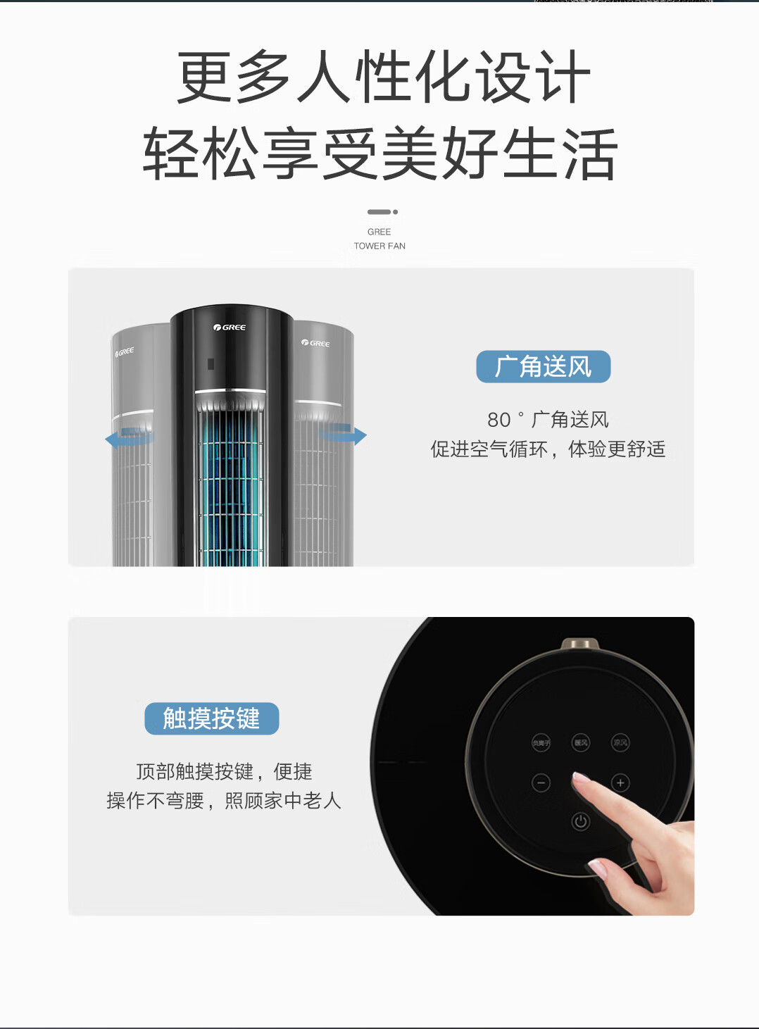格力(GREE)家用卧室办公室无叶塔扇冷暖两用落地扇负离子智能节能遥控 FL-10X61RBag(WiFi)