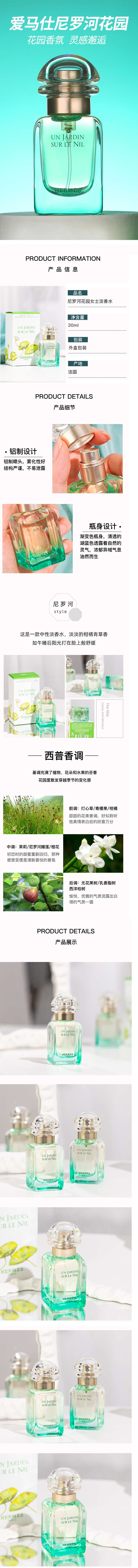g节日限定!【爱马仕尼罗河花园香水礼盒包装 !】Hermes爱马仕尼罗河花园香水30ml礼盒装+赠送 足金手机贴+专柜礼袋 | 花果香 ~男女都可用