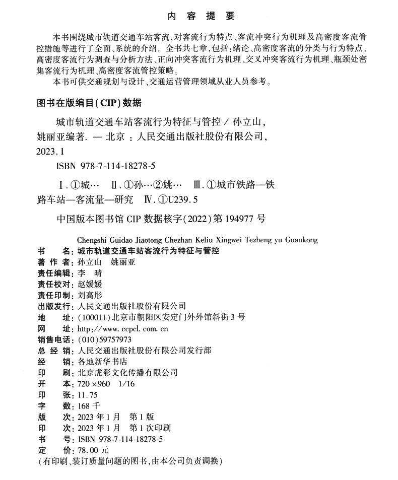 书名:城市轨道交通车站客流行为特征与管控