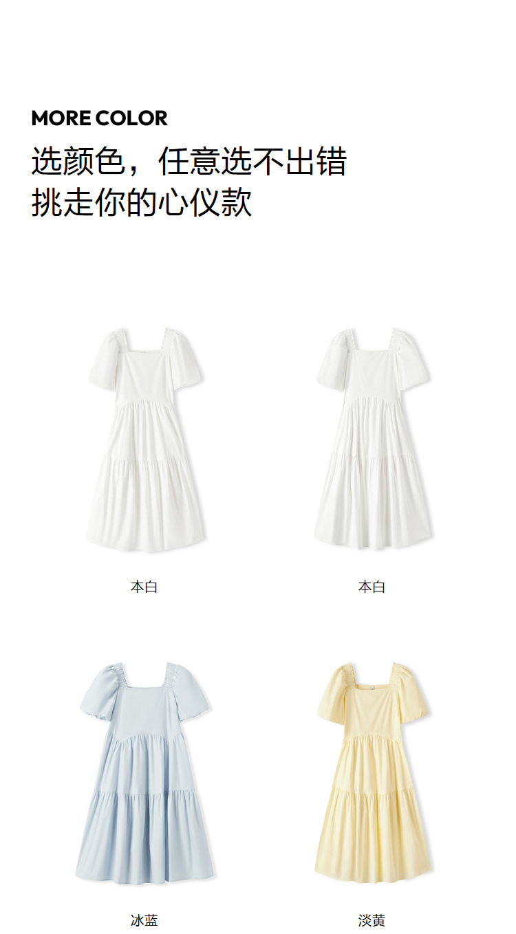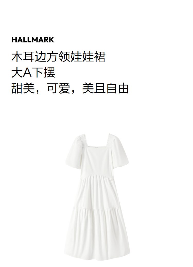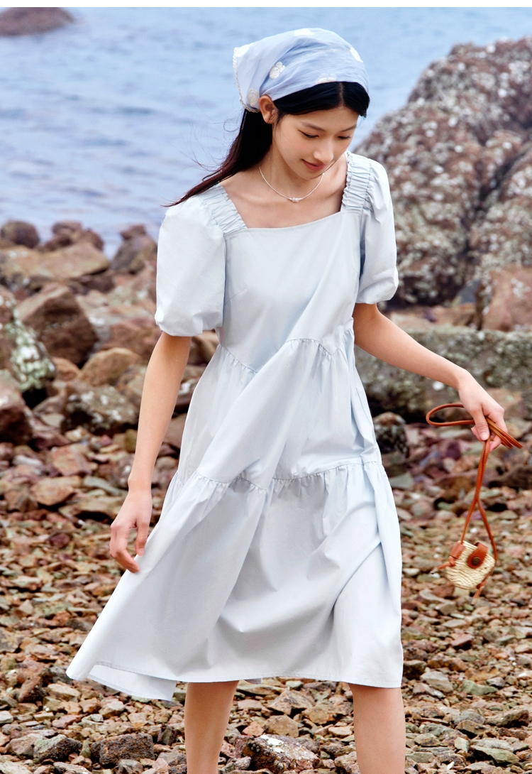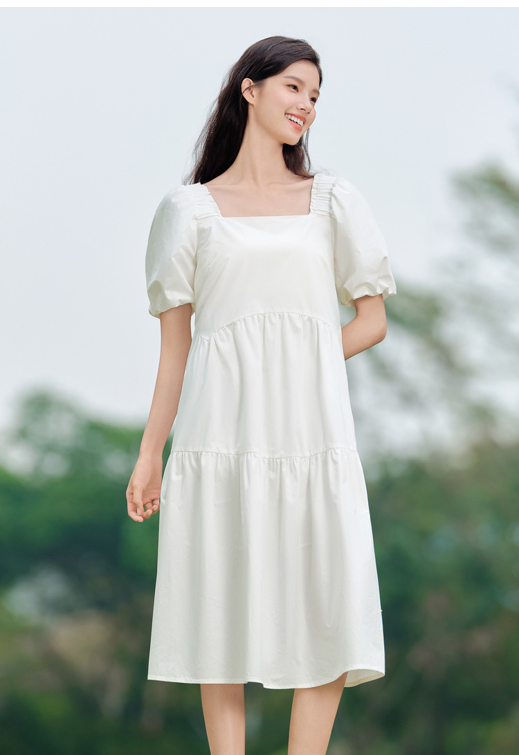 森马连衣裙女温柔系木耳边方领夏季新款泡泡袖娃娃裙甜美可爱