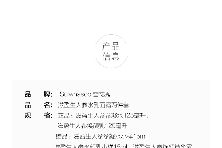 Y lpy韩国Sulwhasoo 雪花秀 滋盈人参水乳护肤2件套装