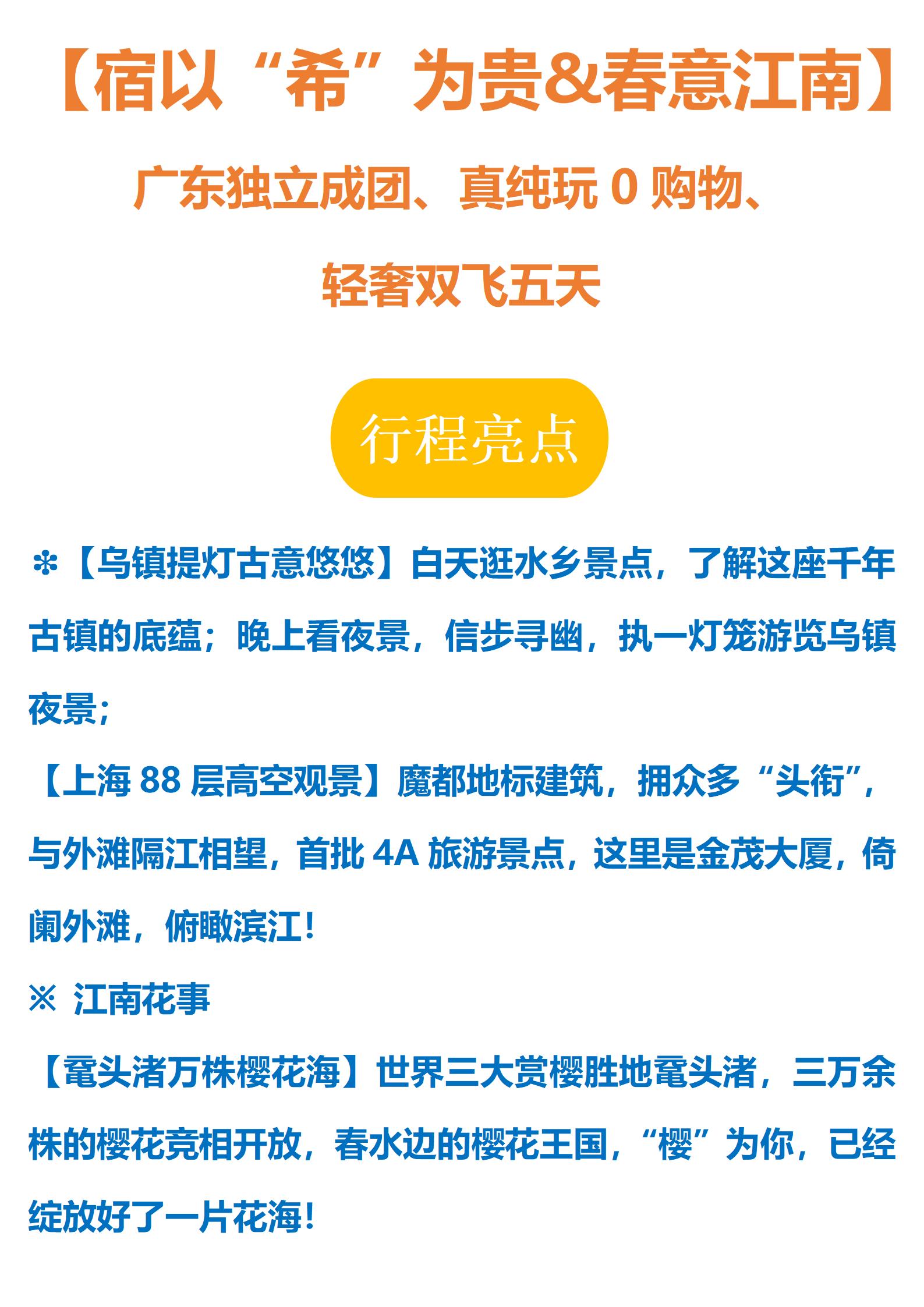 【宿以“希”为贵&春意江南】 广东独立成团、真纯玩0购物、 轻奢双飞五天