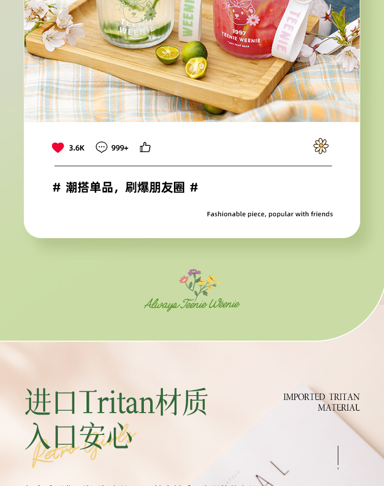 TeenieWeenie梦幻假日咖啡杯子高颜值新款便携塑料tritan随行夏季水杯