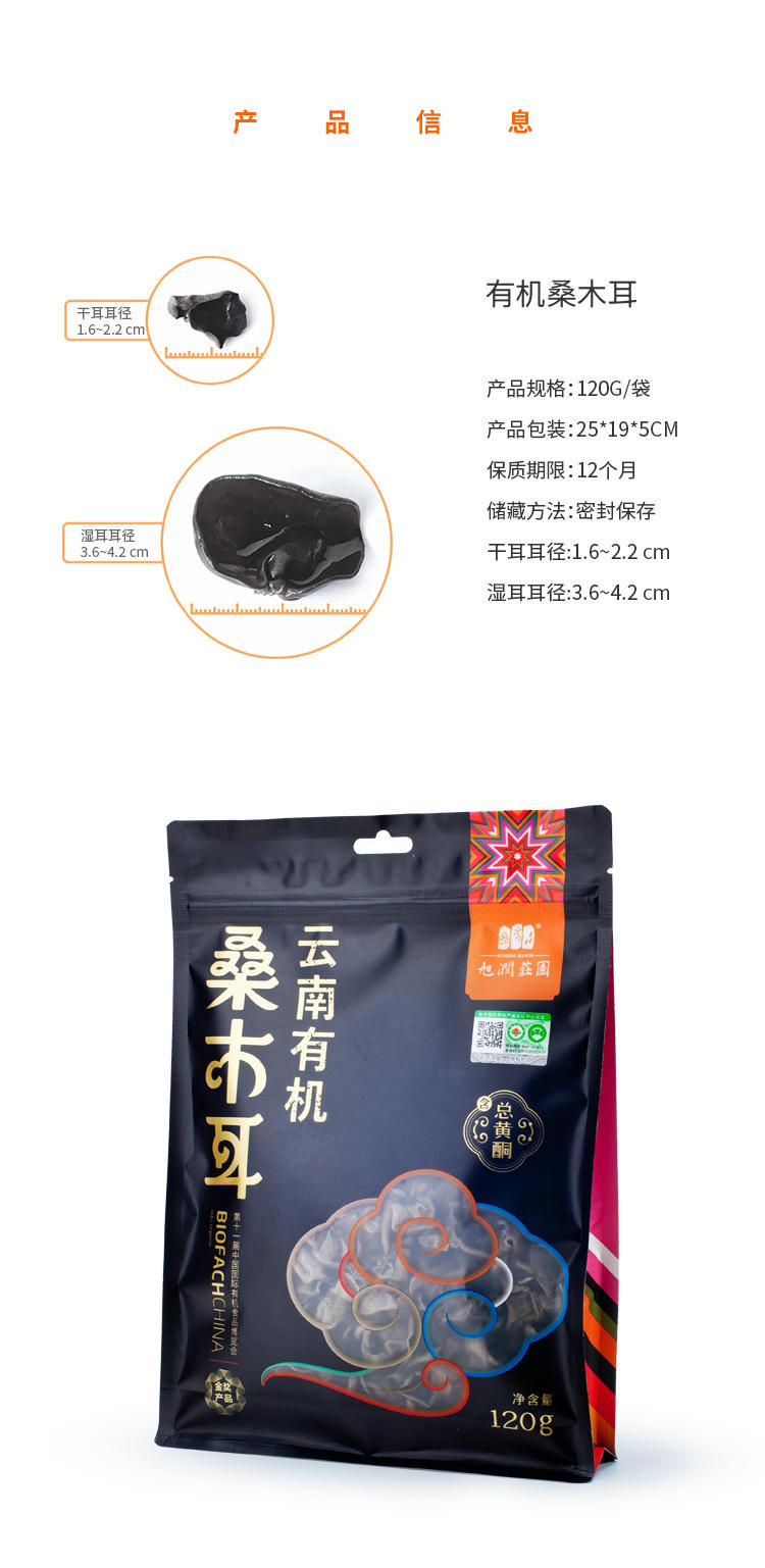 旭润庄园 云南有机桑木耳 120g/袋