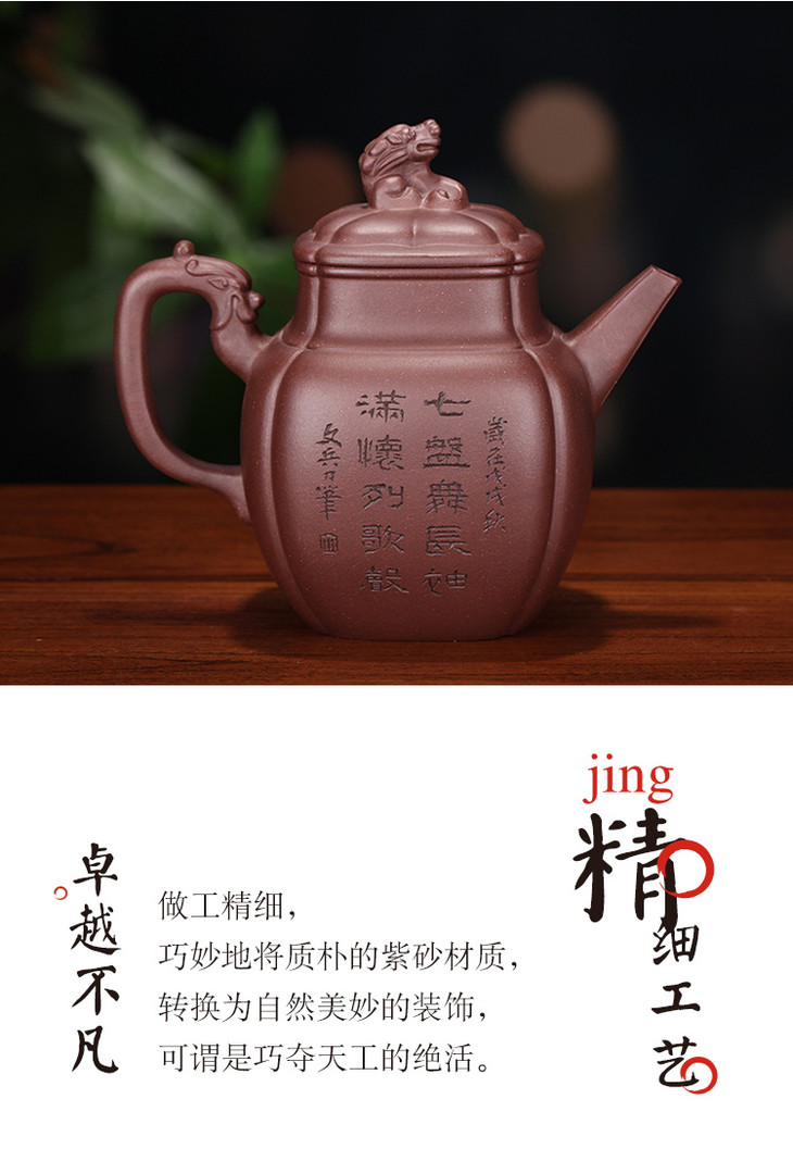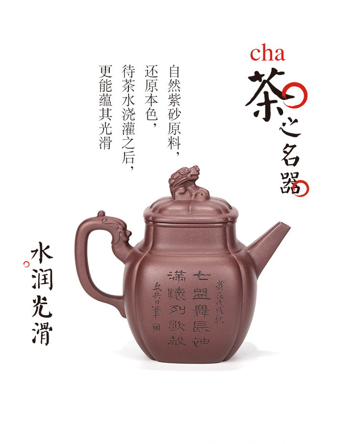【六方石瓢】 原矿紫泥 200cc 双名师作品 朱永强 陶刻 程文兵