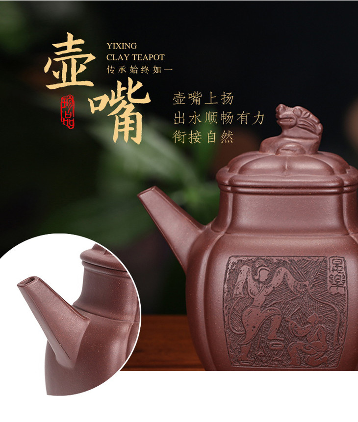 【小宫灯】 作者:朱永强(制壶)程文兵(陶刻) 泥料:紫泥 容量:260cc