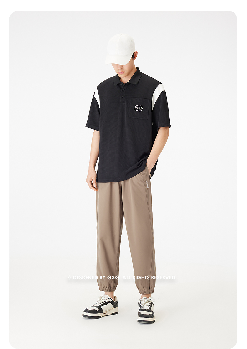 GXG圆领T恤套装撞色家居服男运动休闲睡衣睡裤春夏热卖