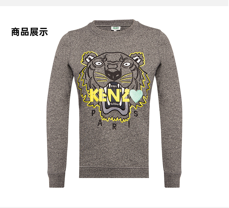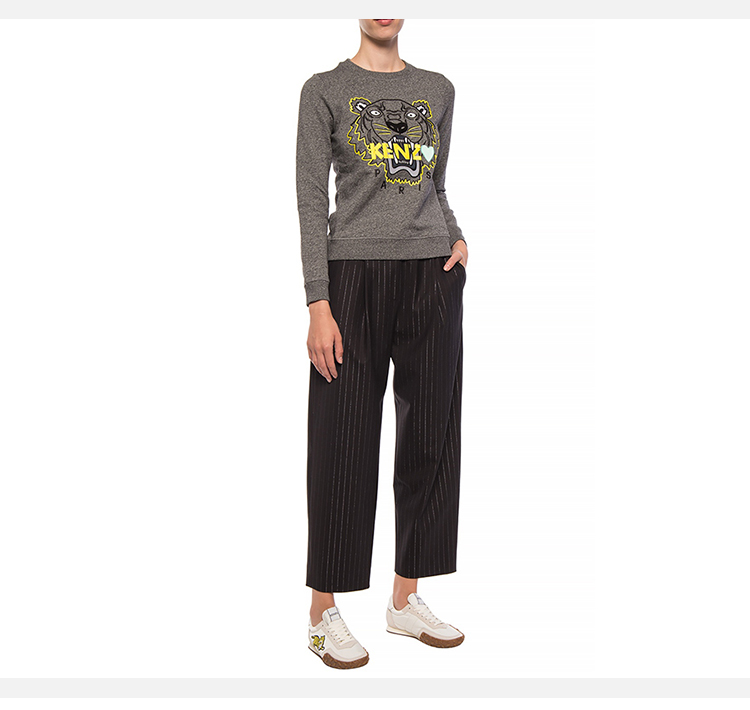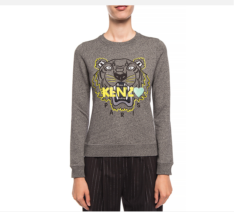 KENZO 高田贤三 女士棉质多色虎头标志圆领长袖卫衣 灰色 F962 SW715 4X4 98