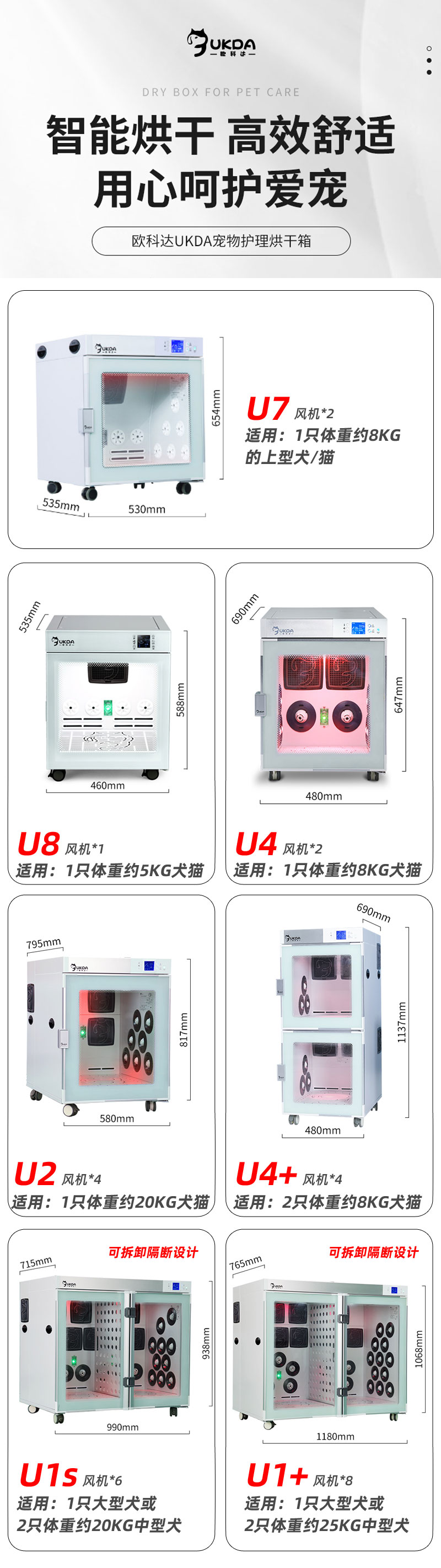 欧科达宠物烘干箱 U7/U8/U2/U4/U4+/U1S/U1+UKDA全自动智能烘干箱