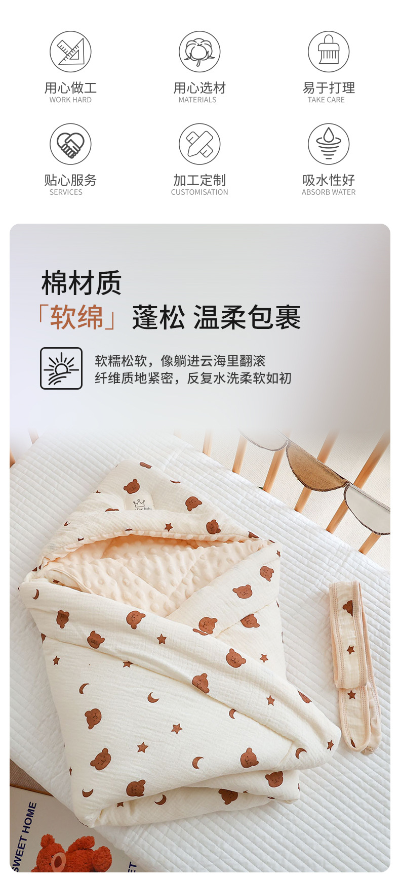 婴幼儿包被加厚棉质卡通印花柔软小宝宝包单秋冬透气舒适婴儿抱被