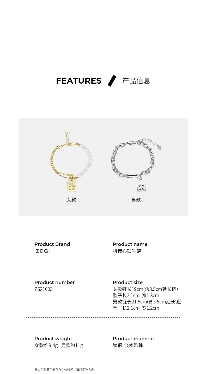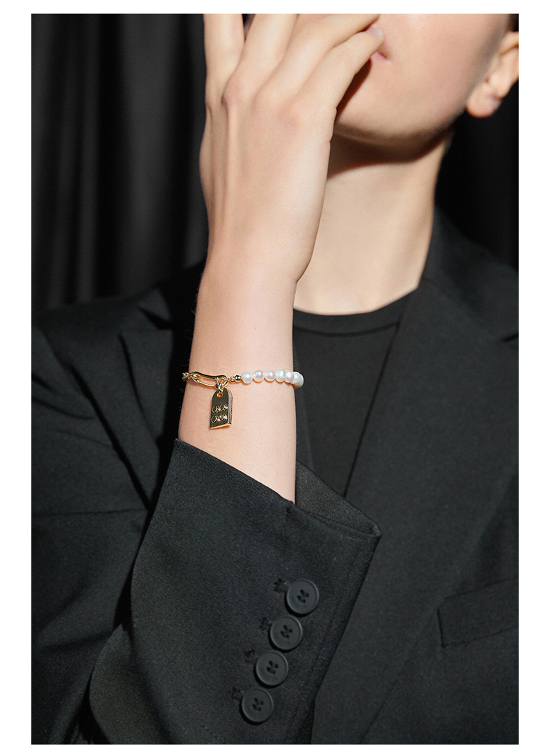 ZEGL设计师别针淡水珍珠串珠手链女情侣款小众设计感手饰品礼物