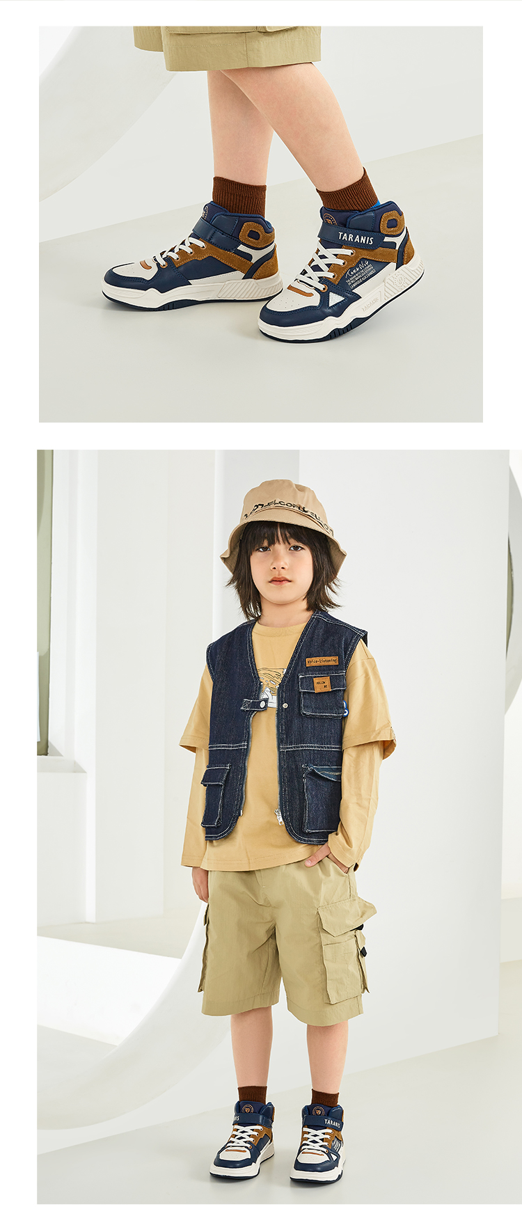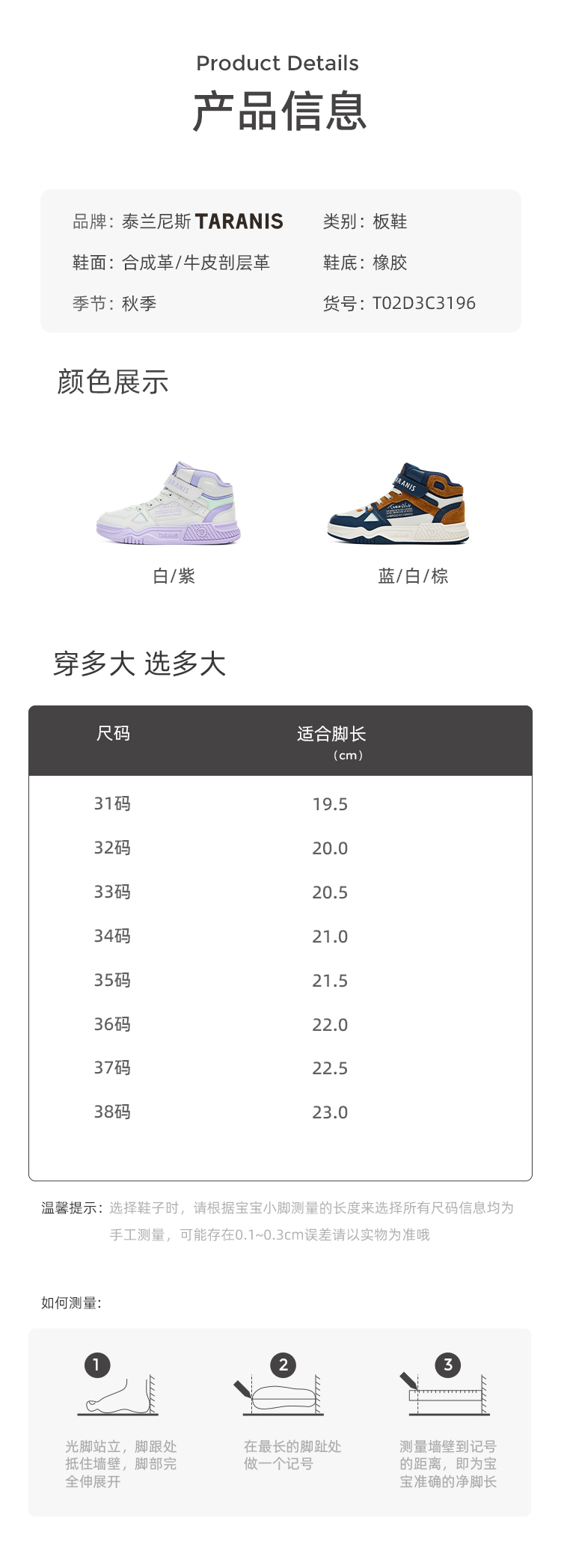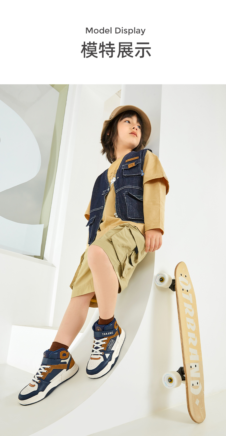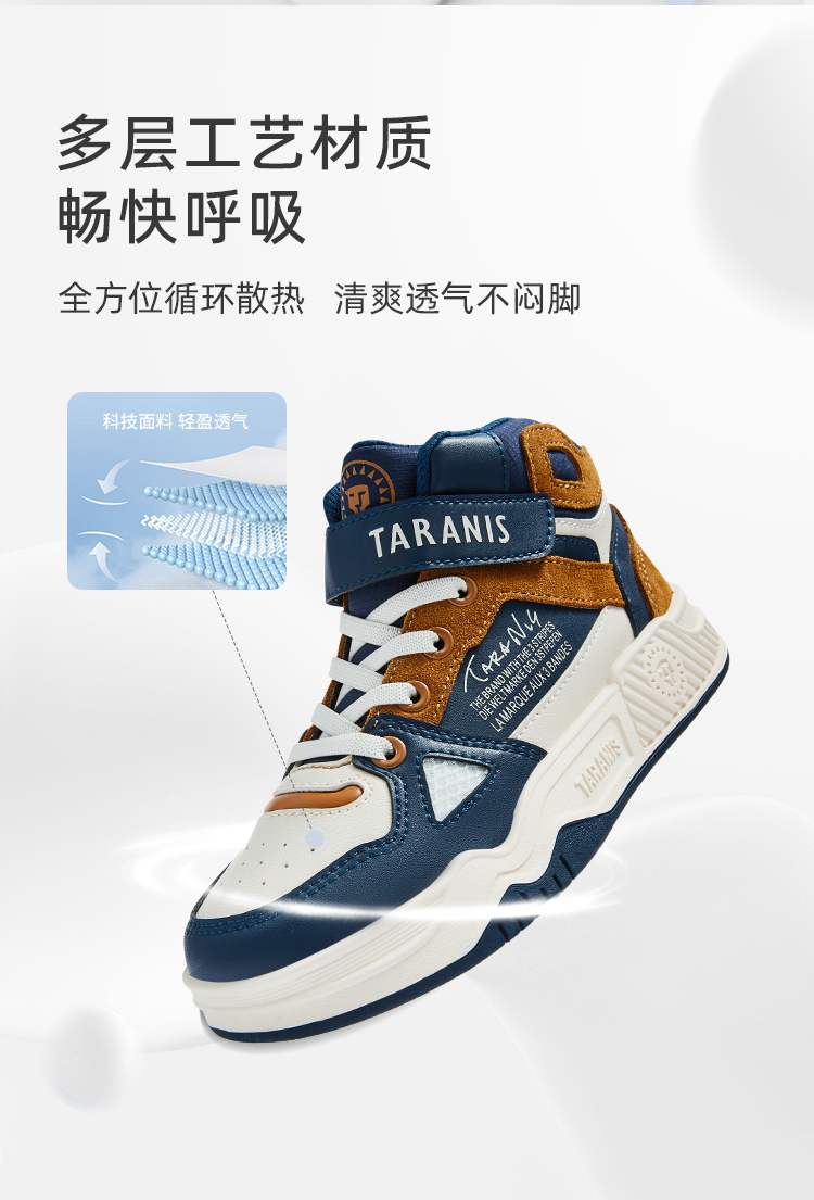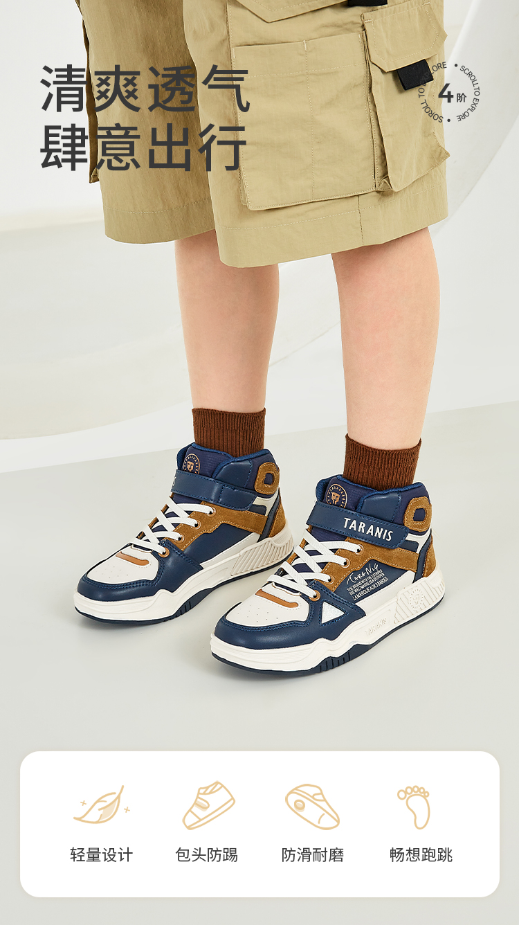 泰兰尼斯秋季中大童冲孔透气中帮运动板鞋T02D3C3196