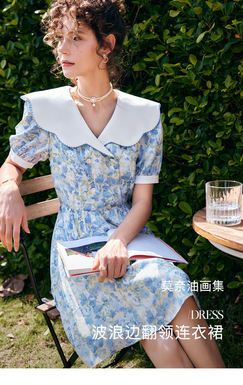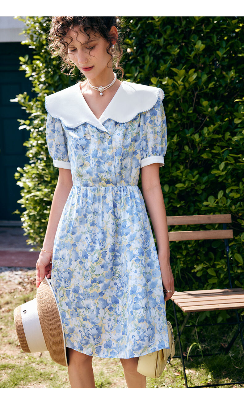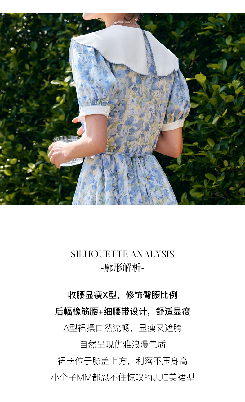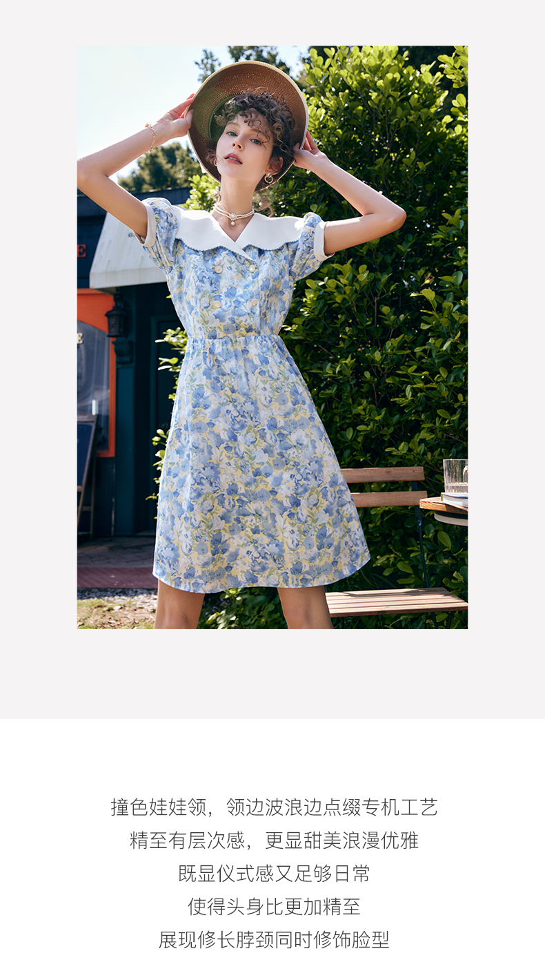 OLrain法式高级穿搭碎花连衣裙女夏季2022新款收腰显瘦娃娃领裙子