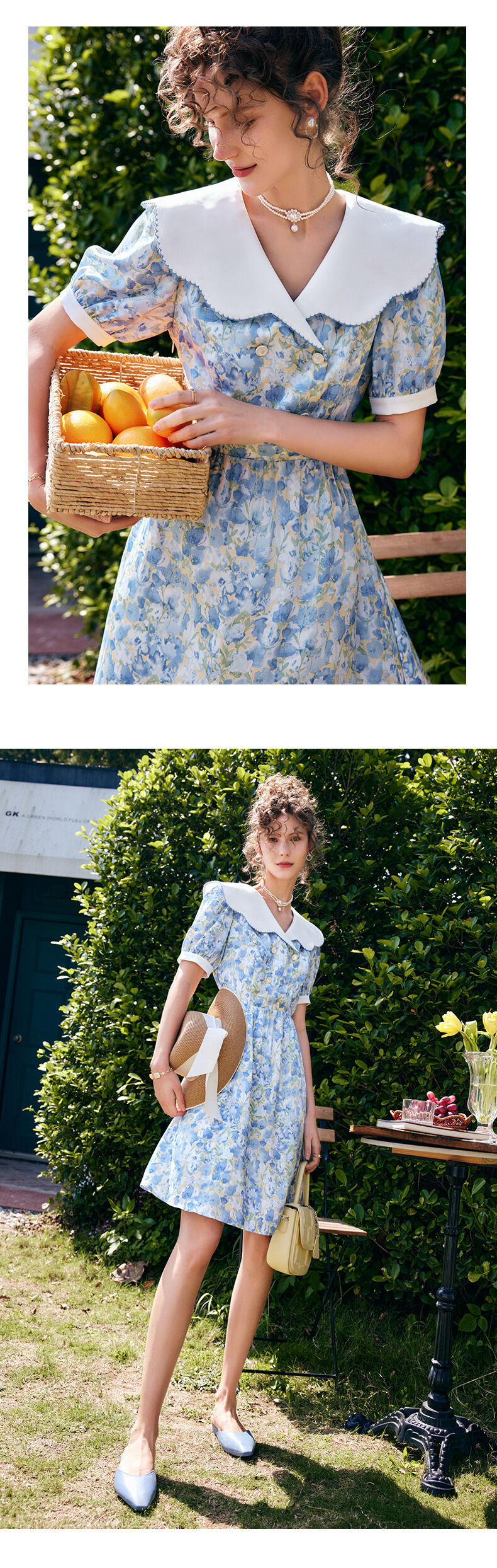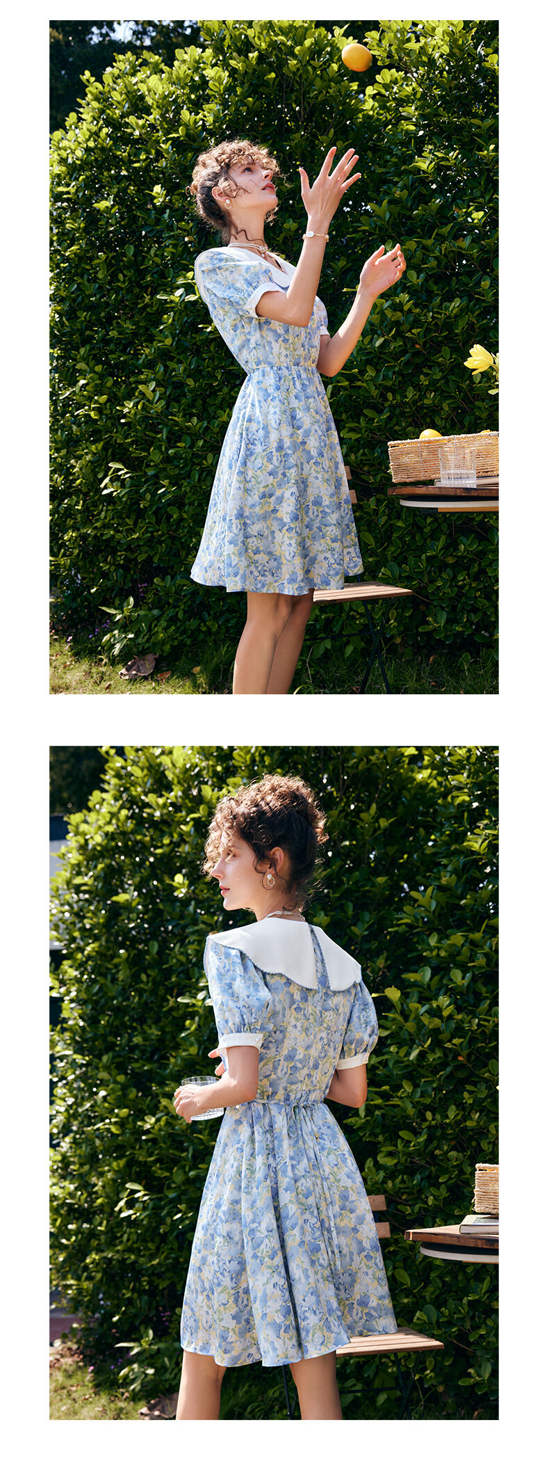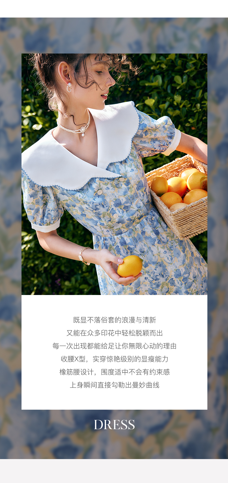 OLrain法式高级穿搭碎花连衣裙女夏季2022新款收腰显瘦娃娃领裙子