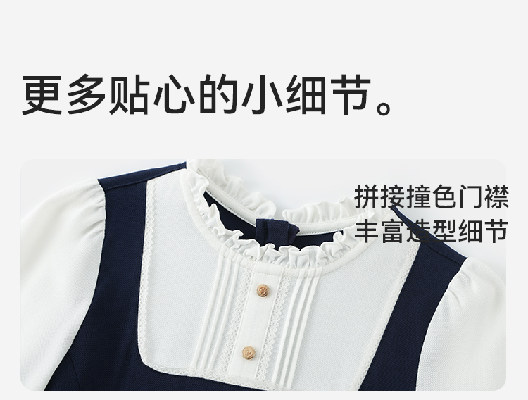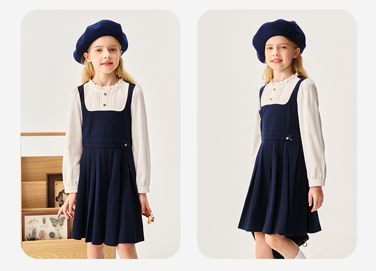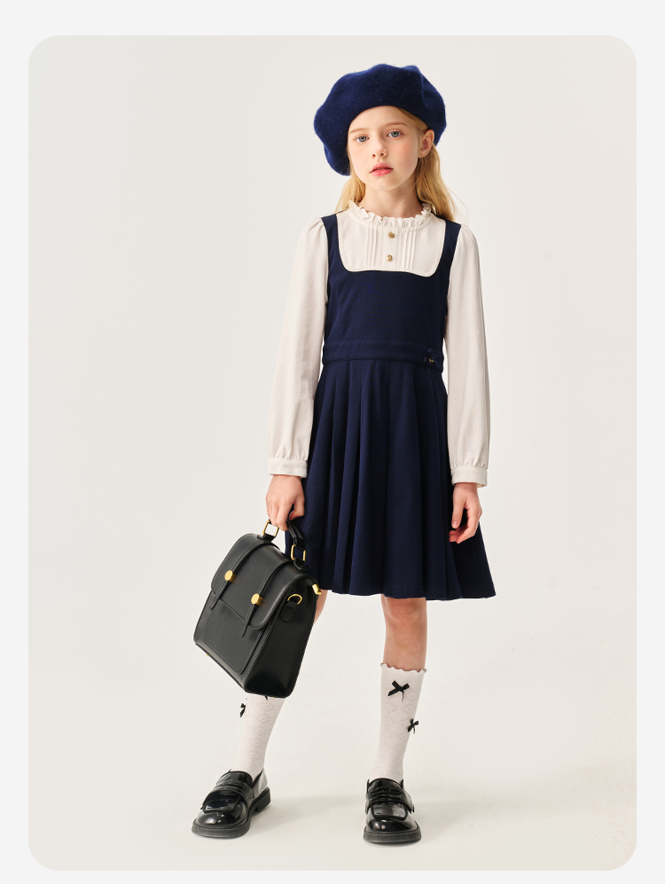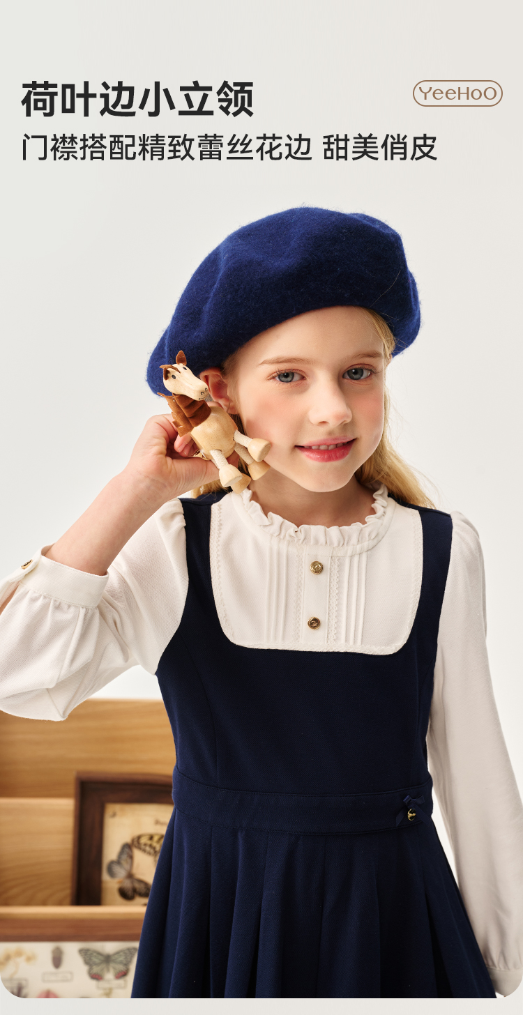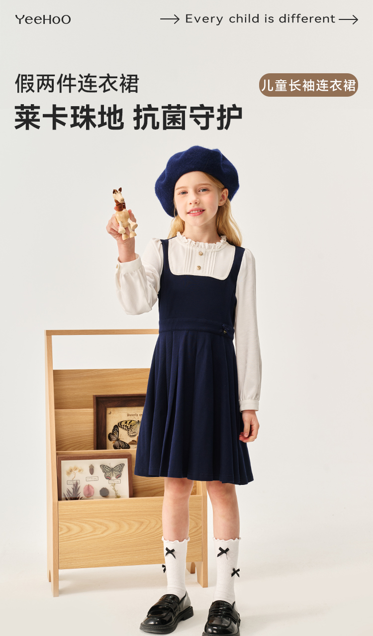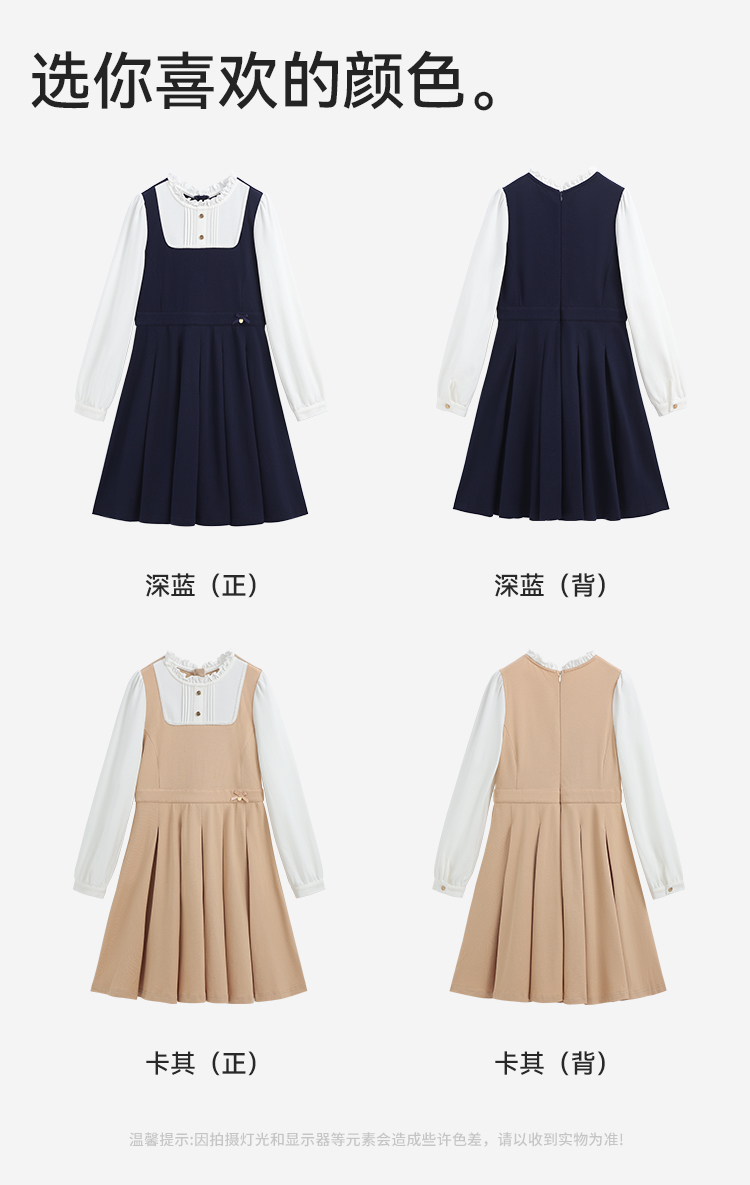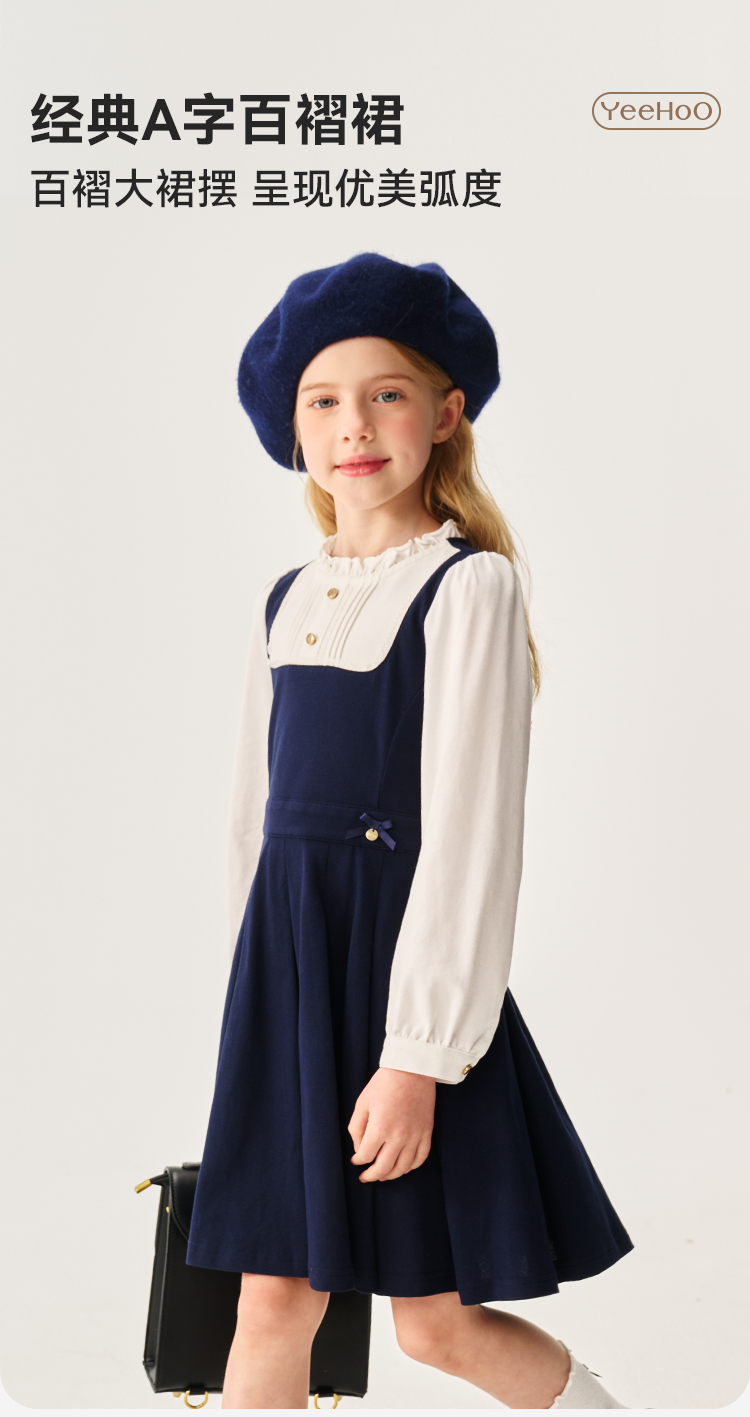 【英氏】【140-170】女童春秋款时尚学院风连衣裙