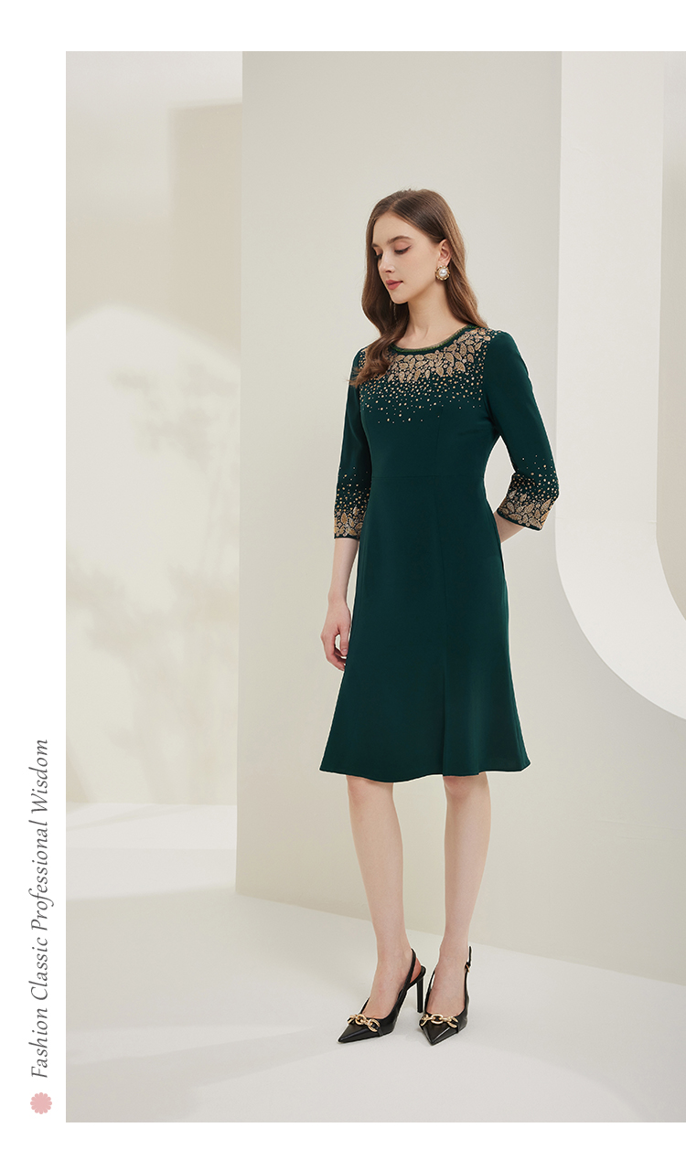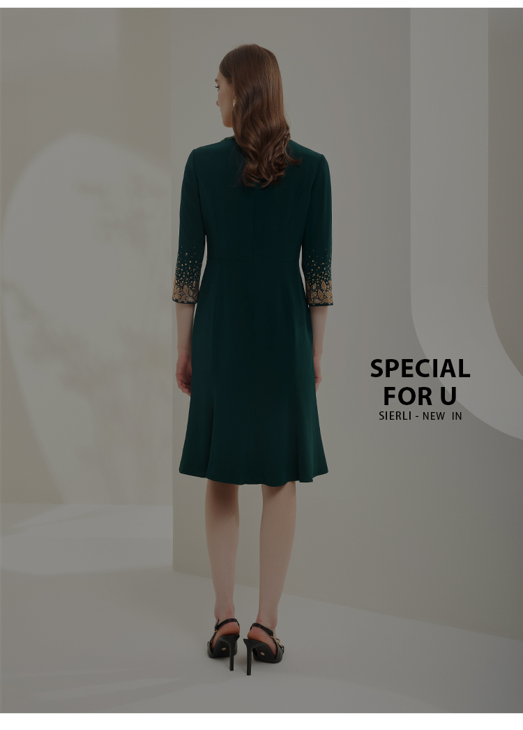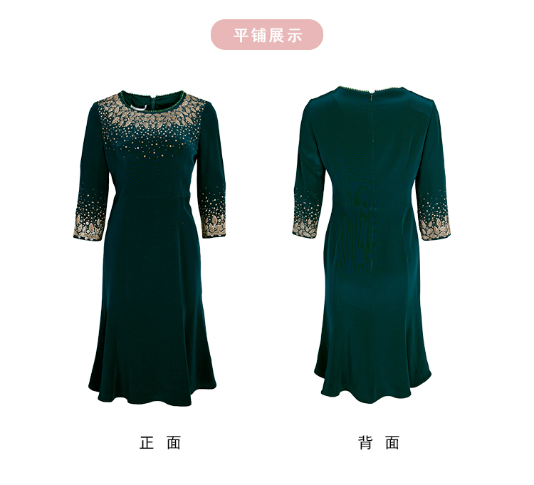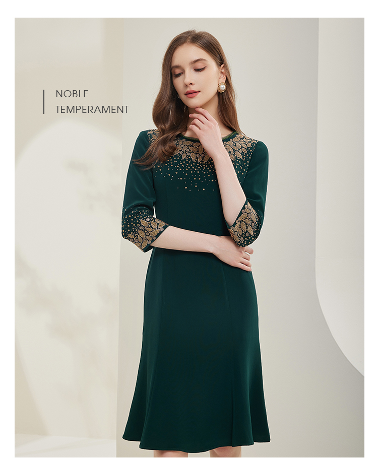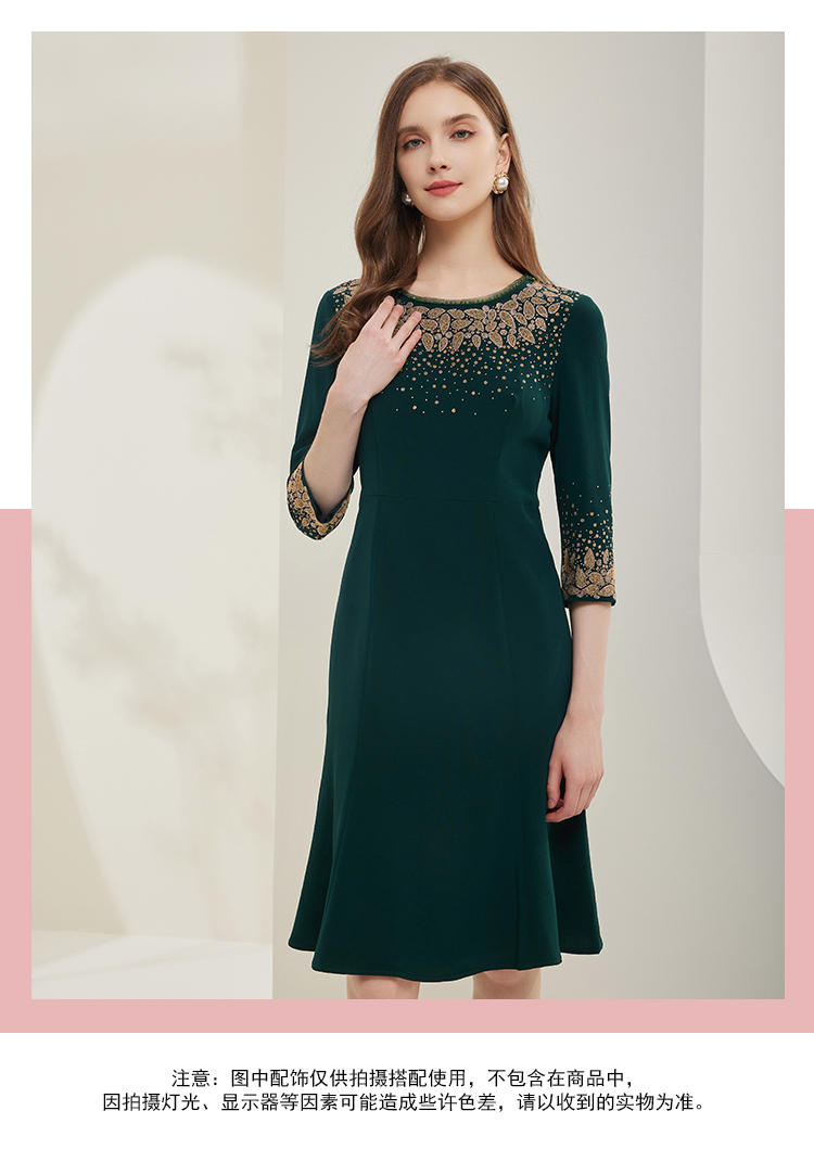 NC80Z斯尔丽商场同款秋圆领奢华收腰鱼尾造型礼服款中袖连衣裙