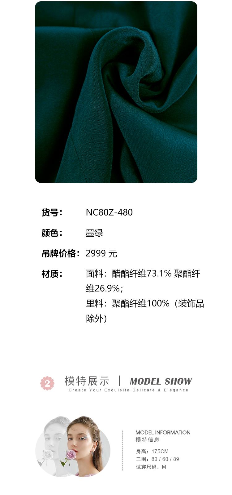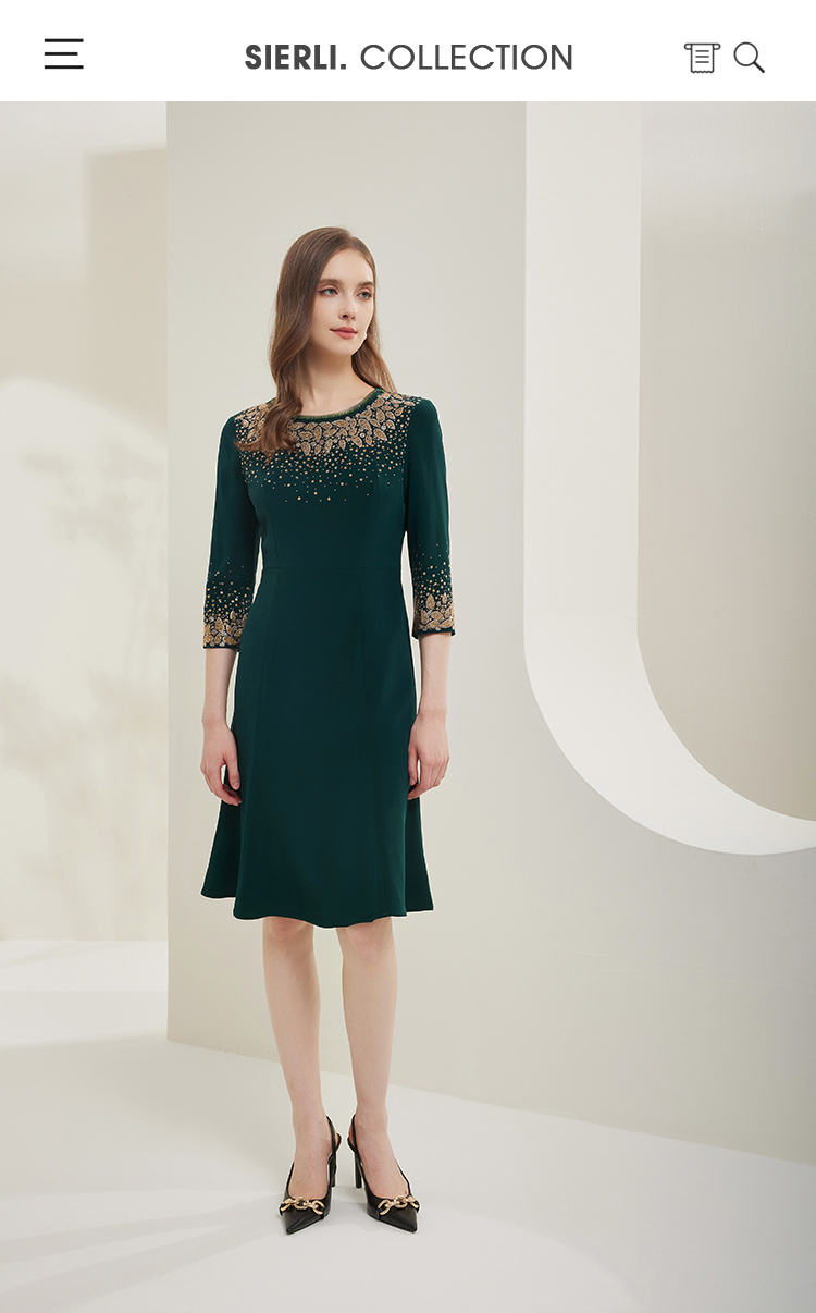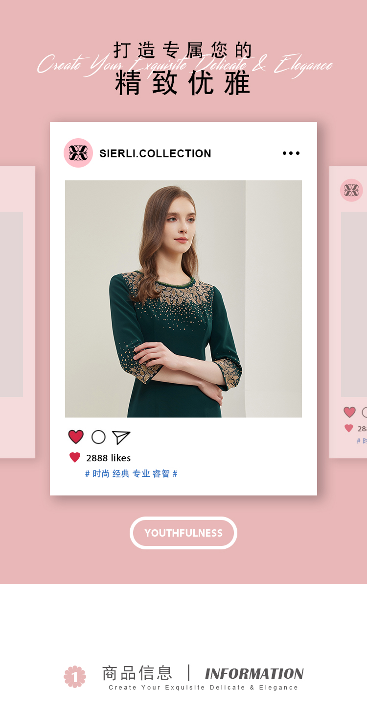 NC80Z斯尔丽商场同款秋圆领奢华收腰鱼尾造型礼服款中袖连衣裙