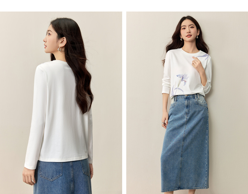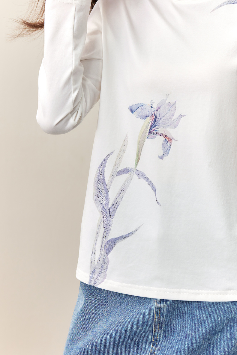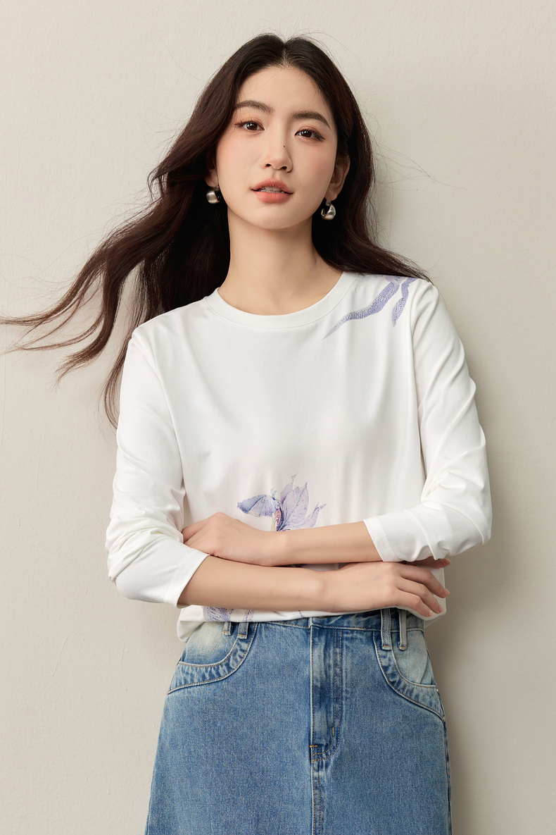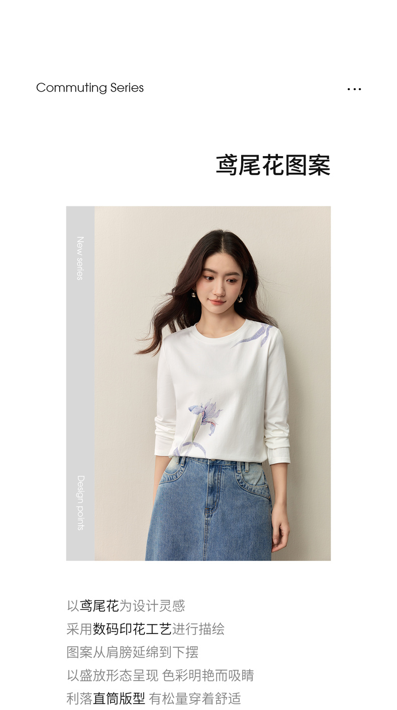 【内购】【鸢尾花】简约通勤圆领艺术数码印花长袖精梳棉T恤-153TG2502