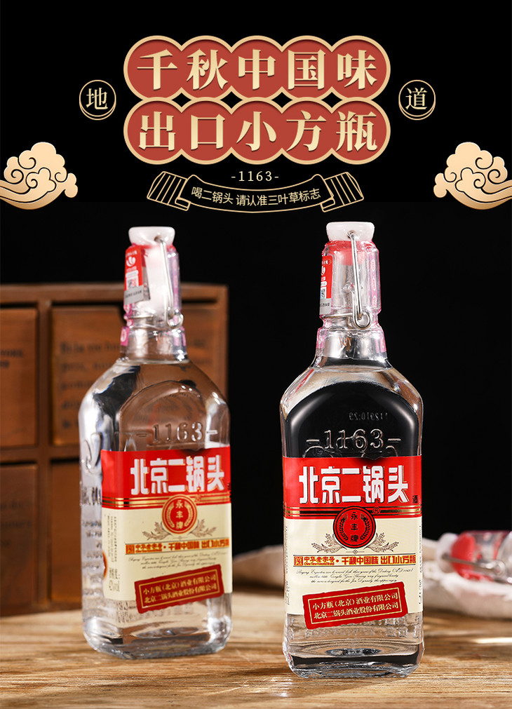 北京二锅头出口型小方瓶42度老熟黑马清香型白酒粮食酒