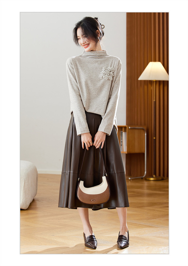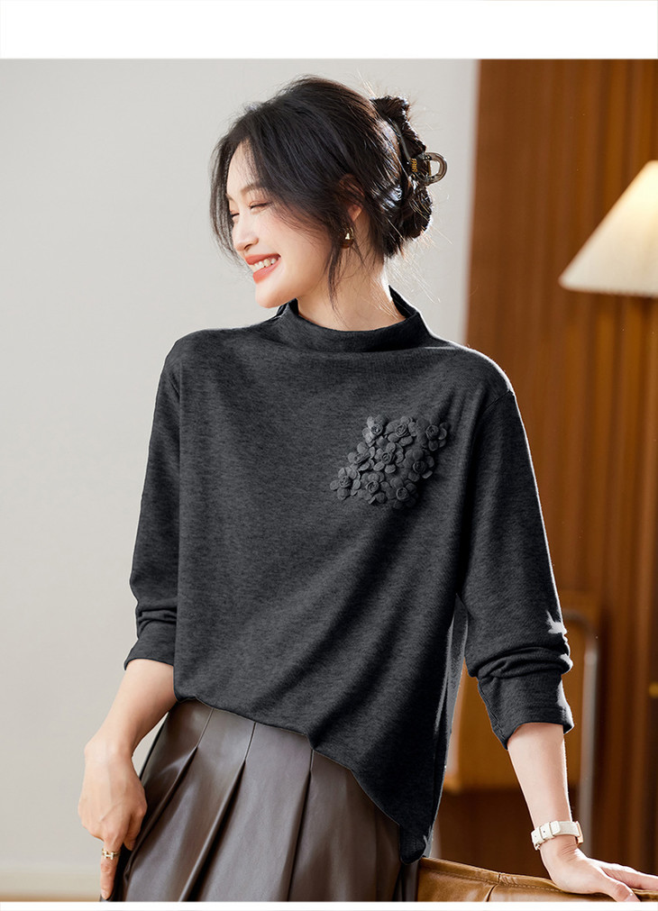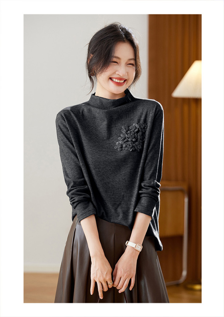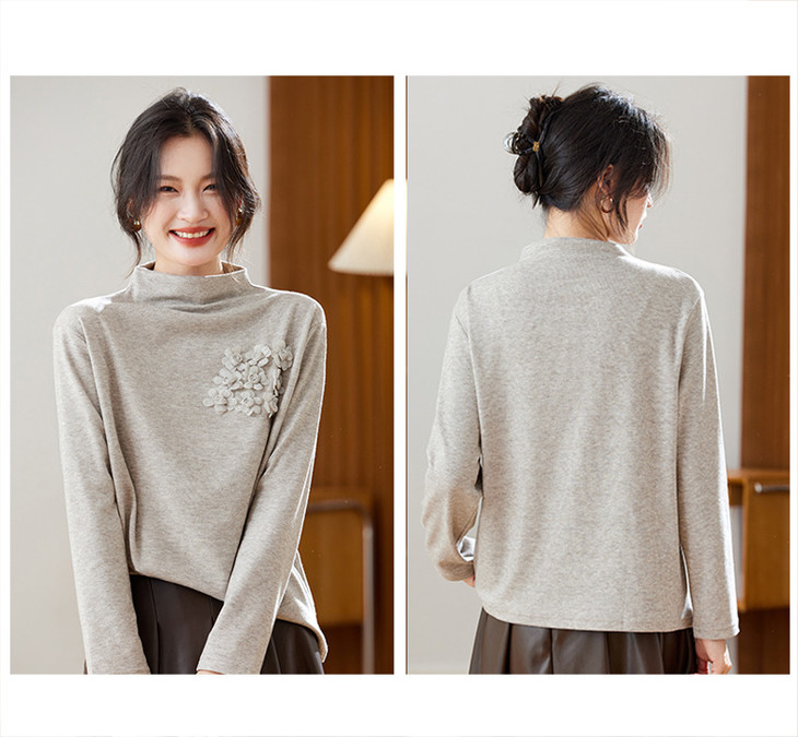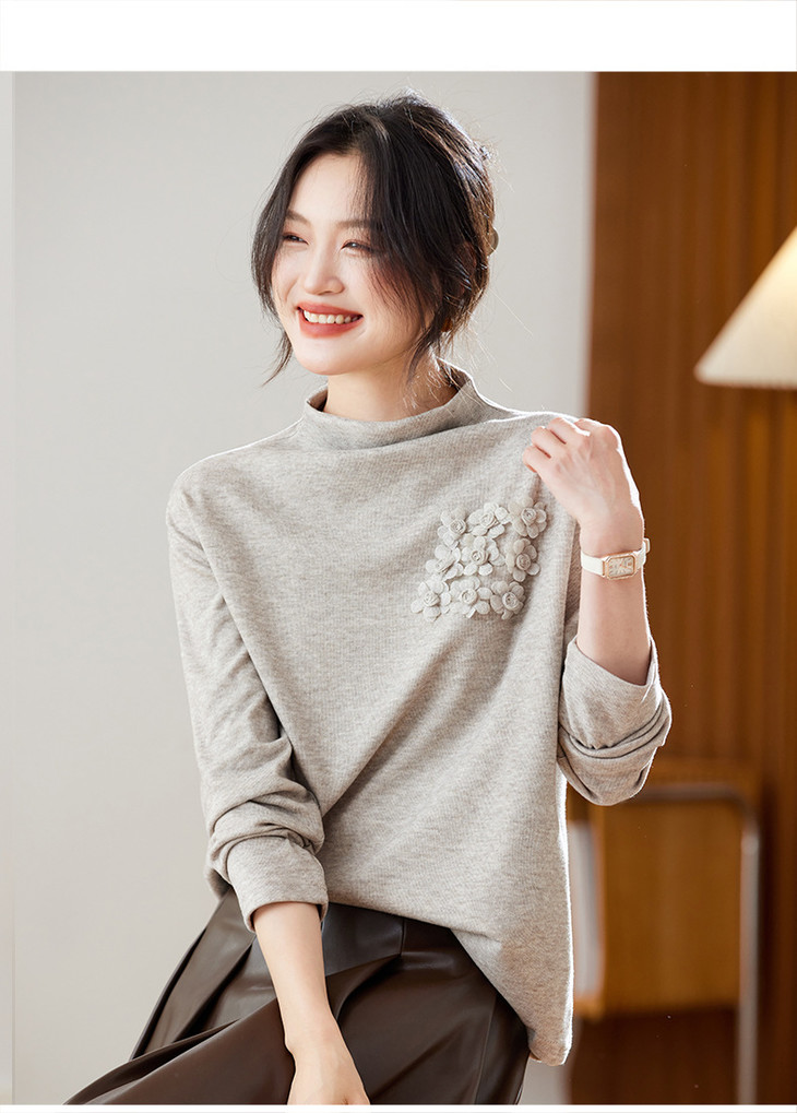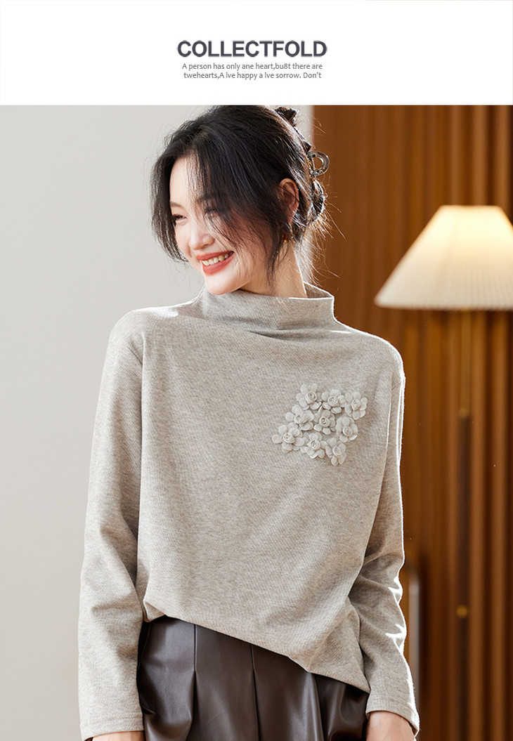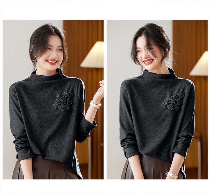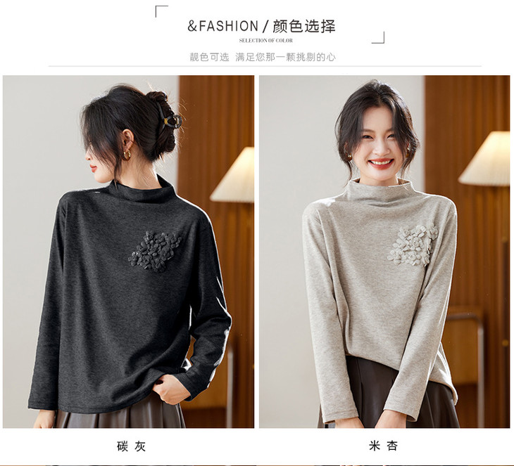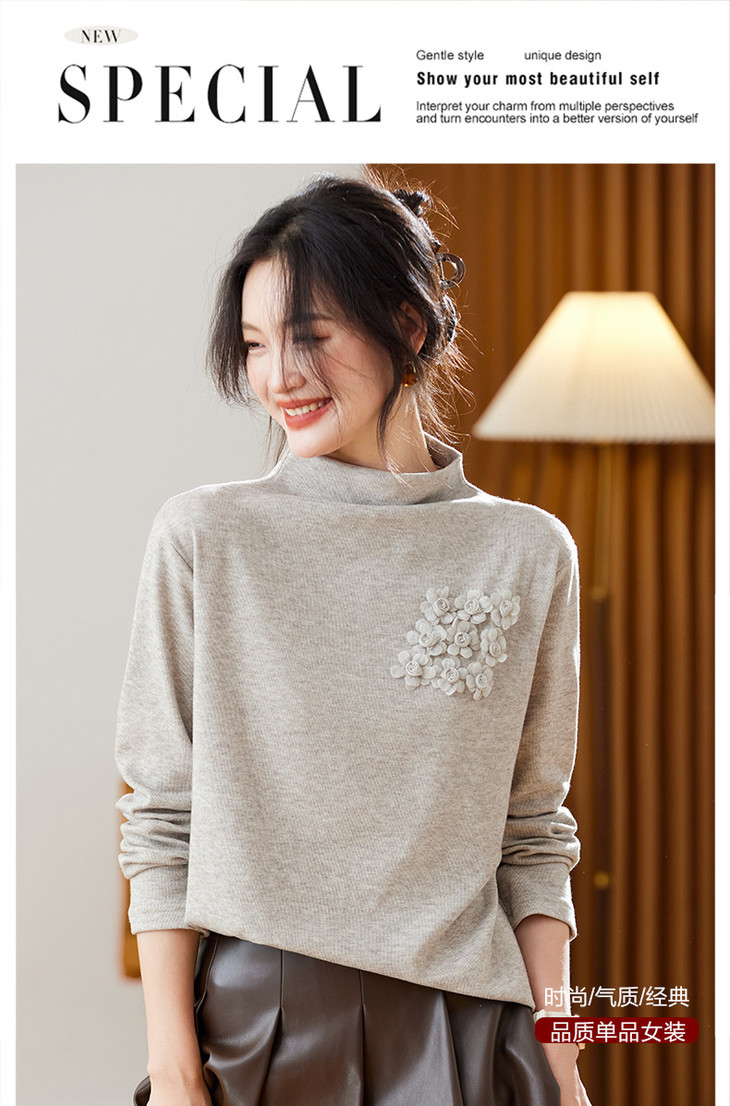 休闲慵懒风半高领扎花毛衣,长袖别致漂亮打底衫上衣CC-SD1074