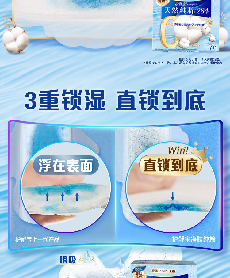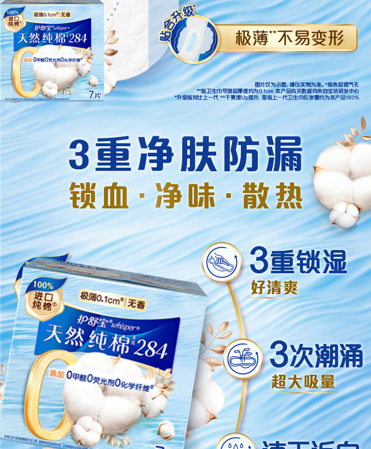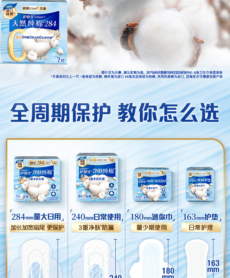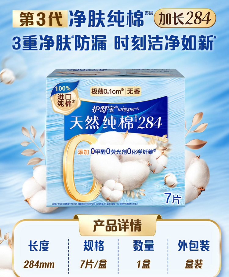 华西20251119-护舒宝纯棉卫生巾纯净无香型量多日284mm7片/一包
